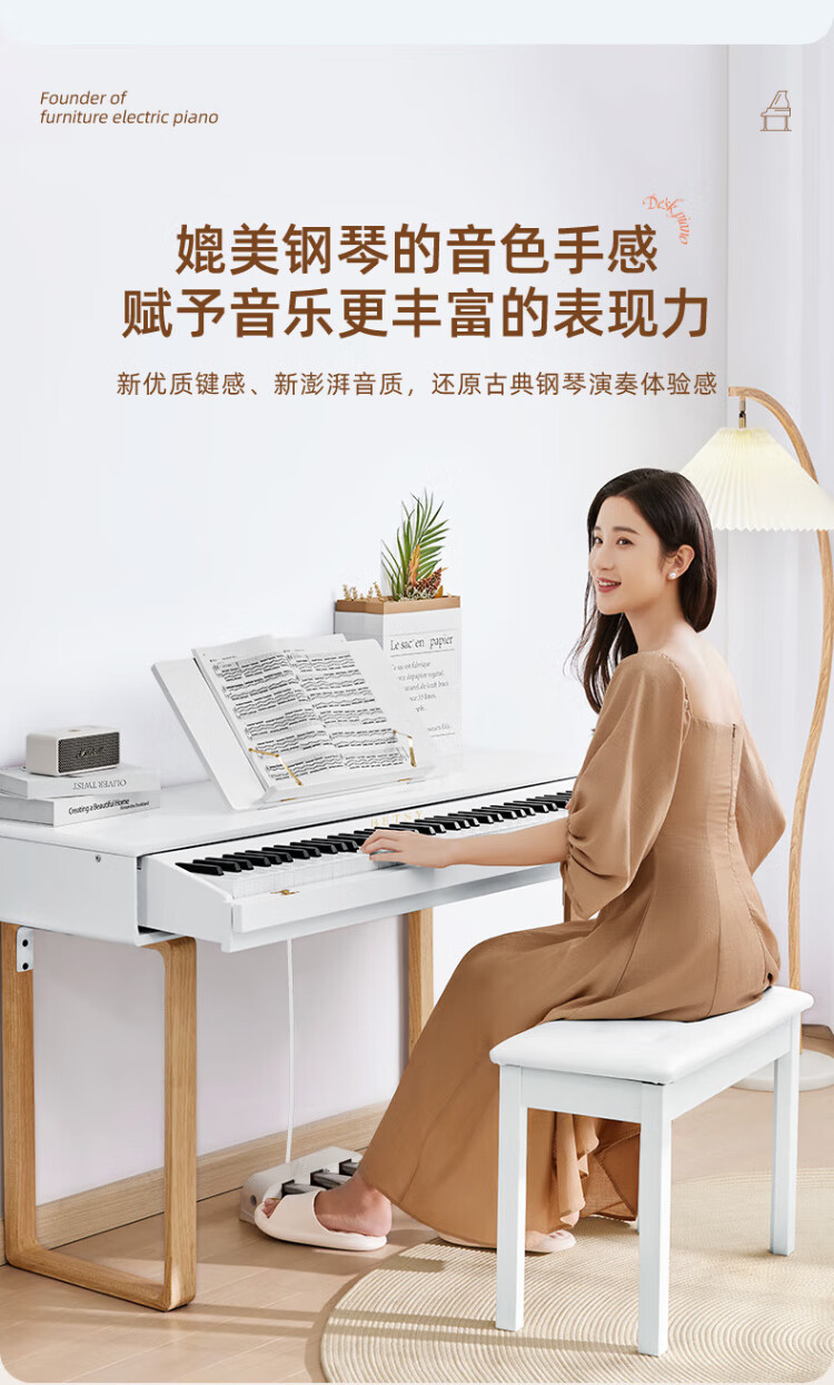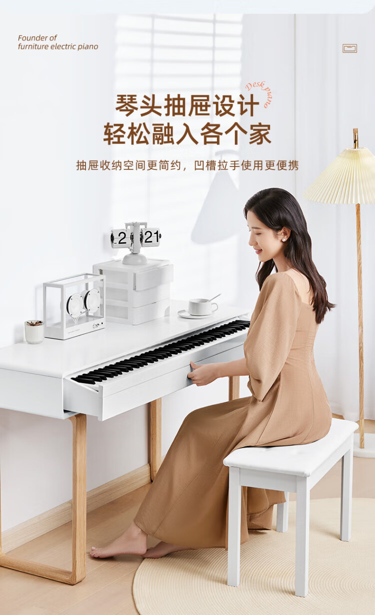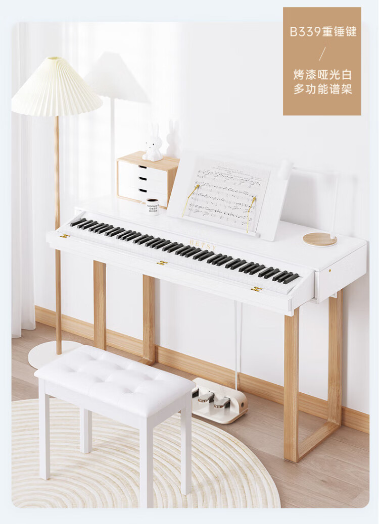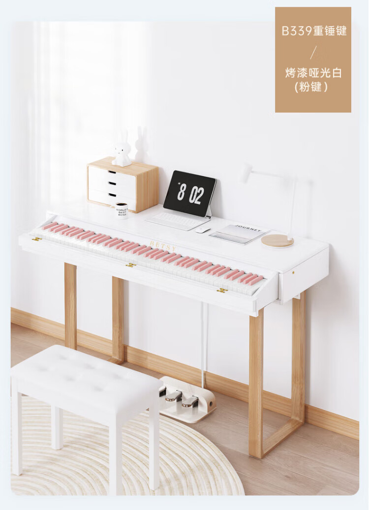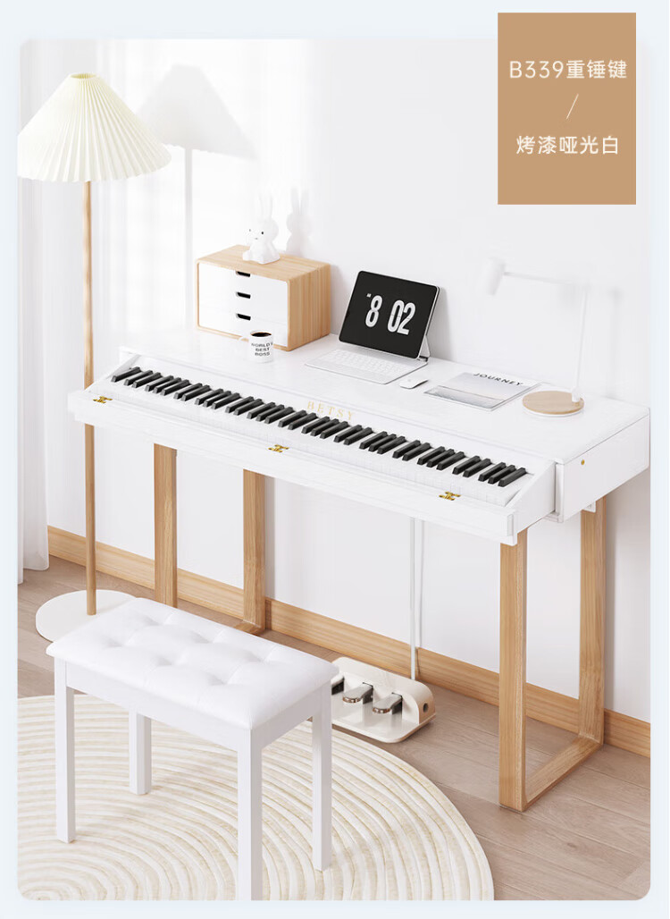 Betsy B339 Desk Electric Piano 88 Keys Heavy Hammer Novice Entry Drawer Electronic Piano Home Piano B339 Heavy Hammer Keys - Matt White + Square Legs