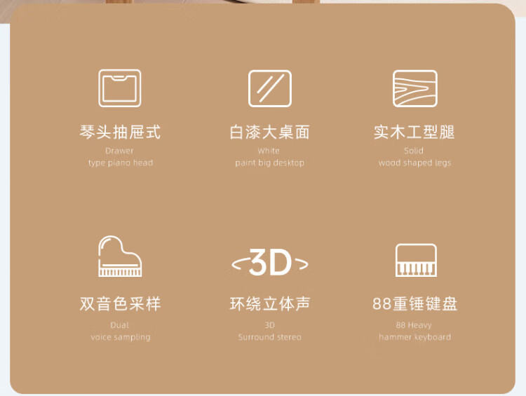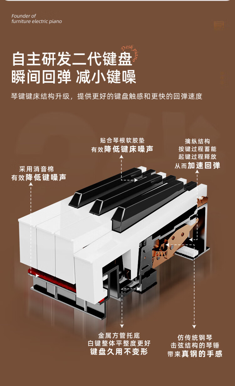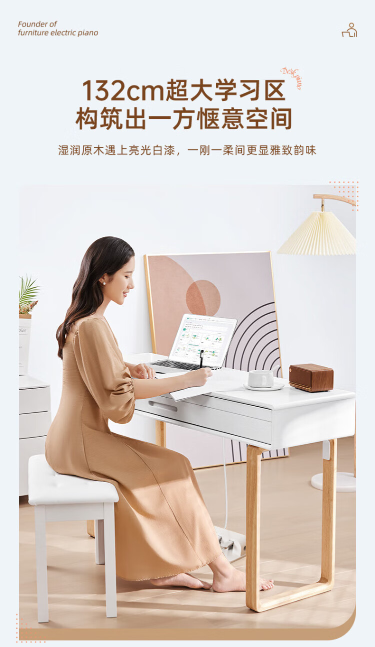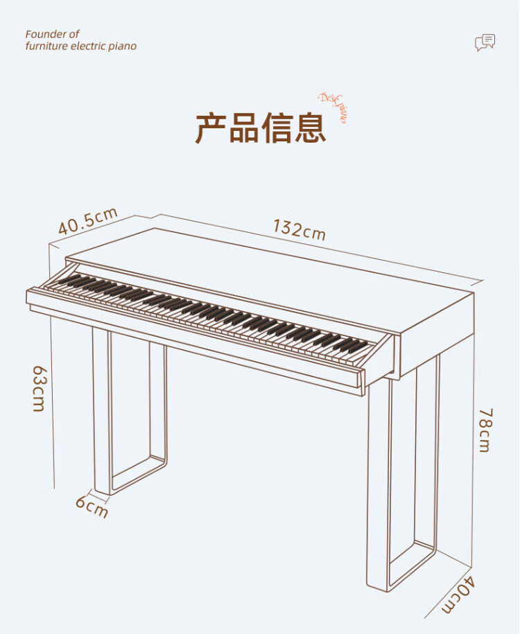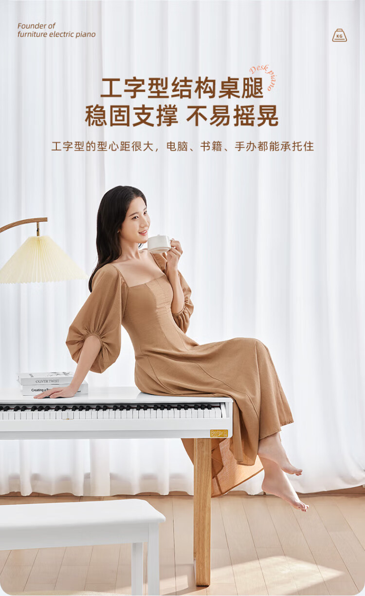 Betsy B339 Desk Electric Piano 88 Keys Heavy Hammer Novice Entry Drawer Electronic Piano Home Piano B339 Heavy Hammer Keys - Matt White + Square Legs