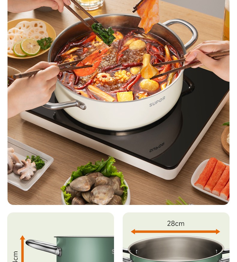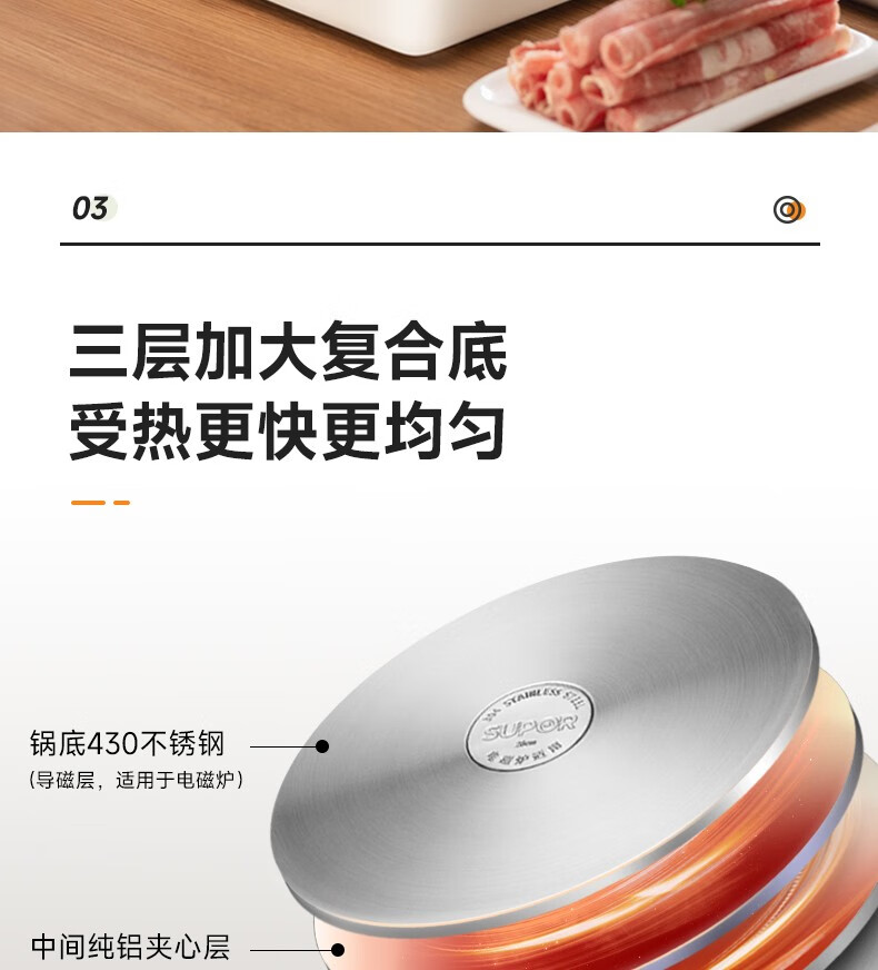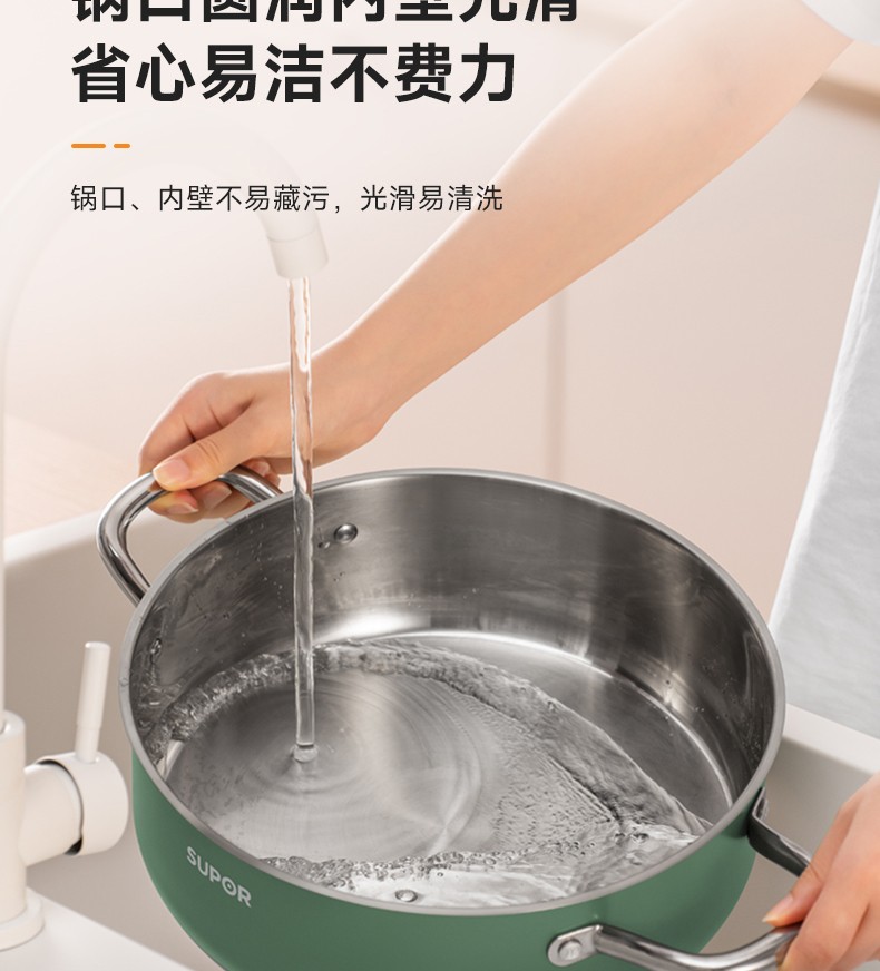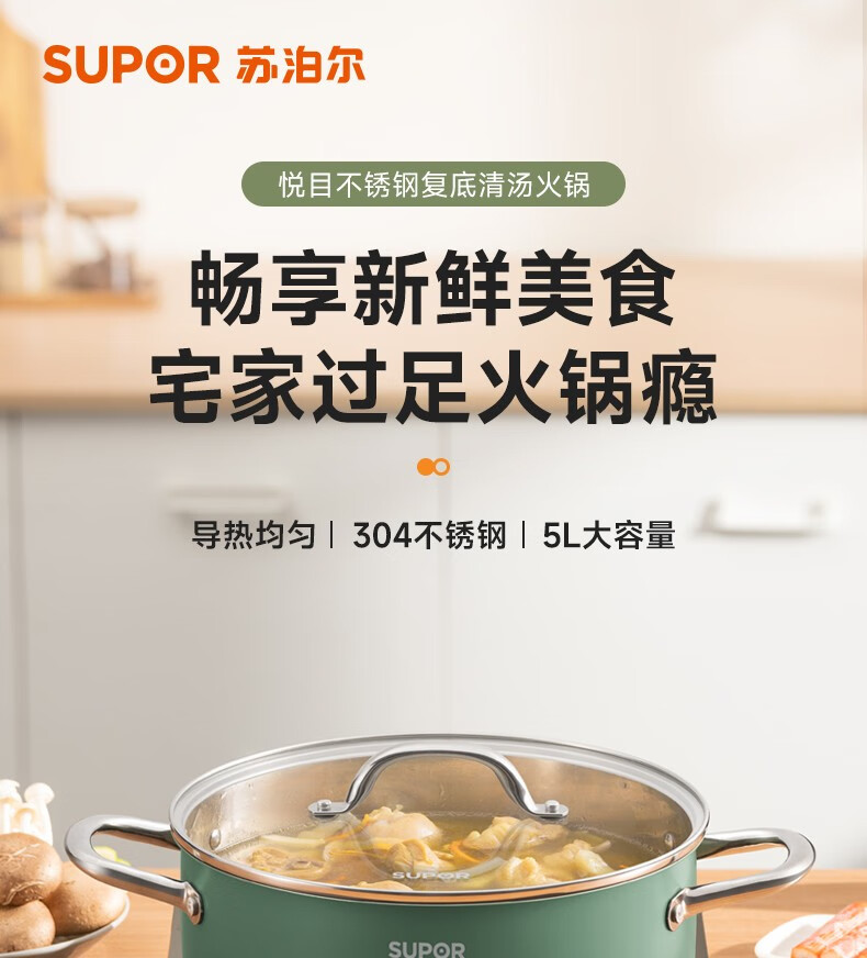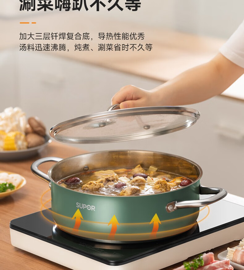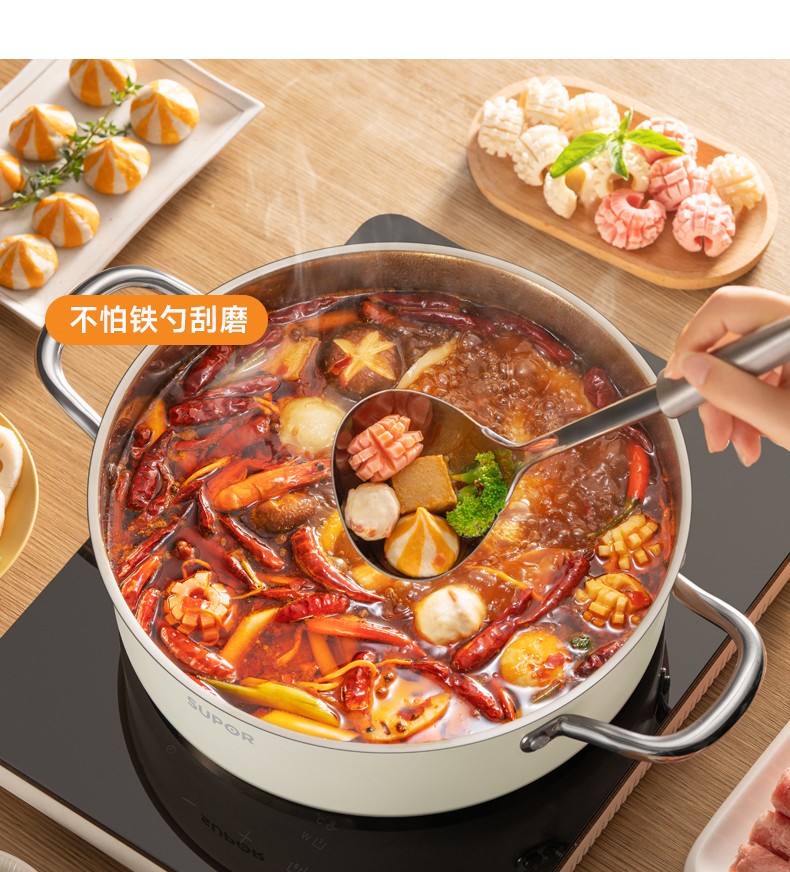SUPOR hot pot stainless steel household thickened clear soup pot induction cooker gas open flame universal pot 28cm-304 stainless steel hot pot tea white 28cm