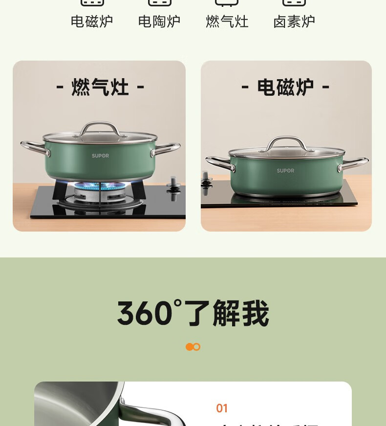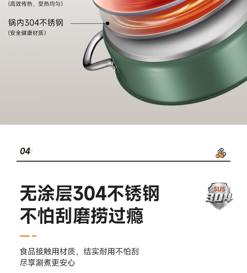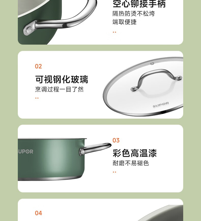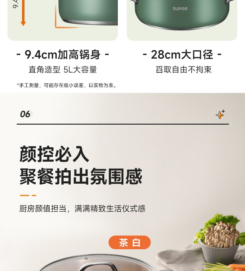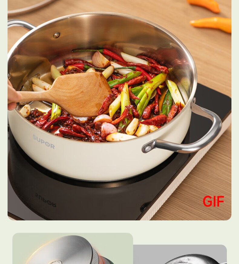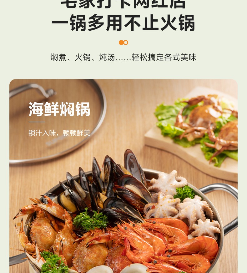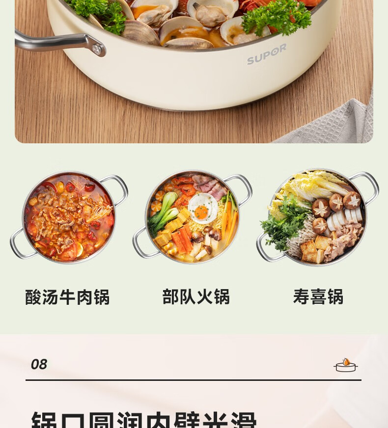SUPOR hot pot stainless steel household thickened clear soup pot induction cooker gas open flame universal pot 28cm-304 stainless steel hot pot tea white 28cm