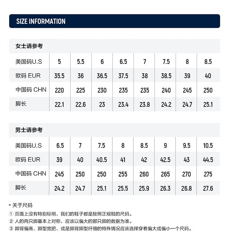 China (cm) 36 - 37 38 - 39 40 - 42 43 - 44 45 - 47
