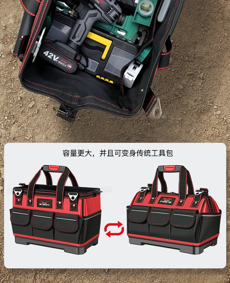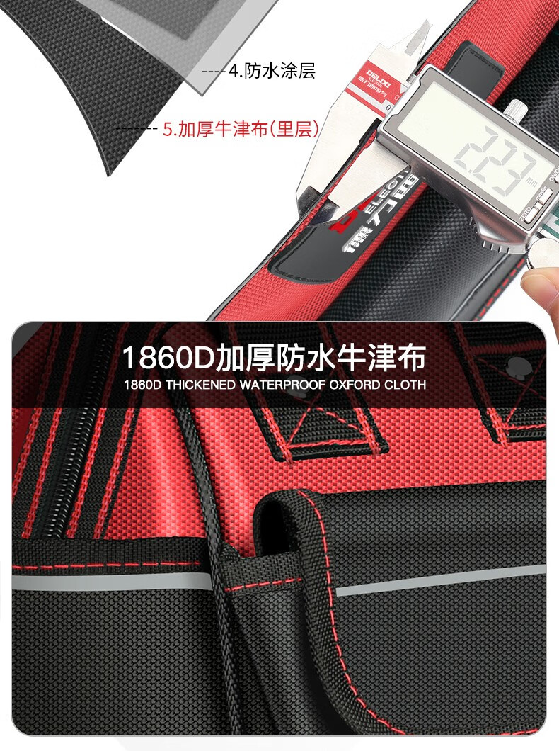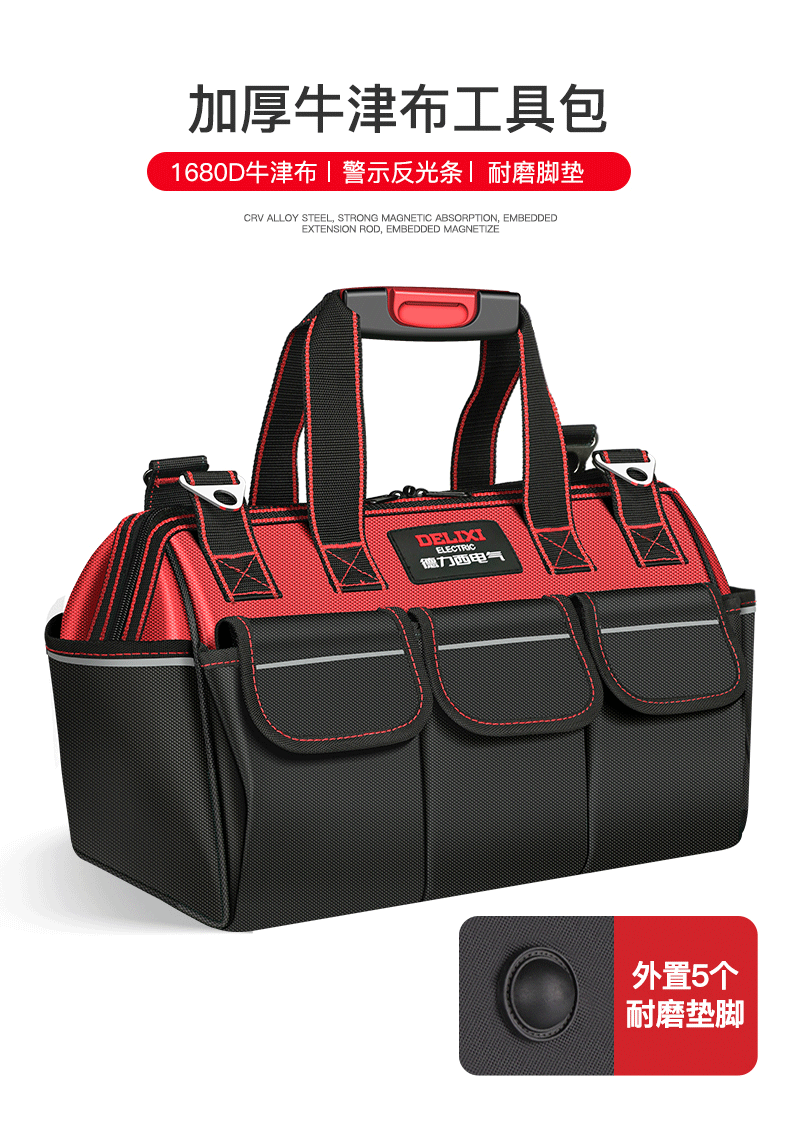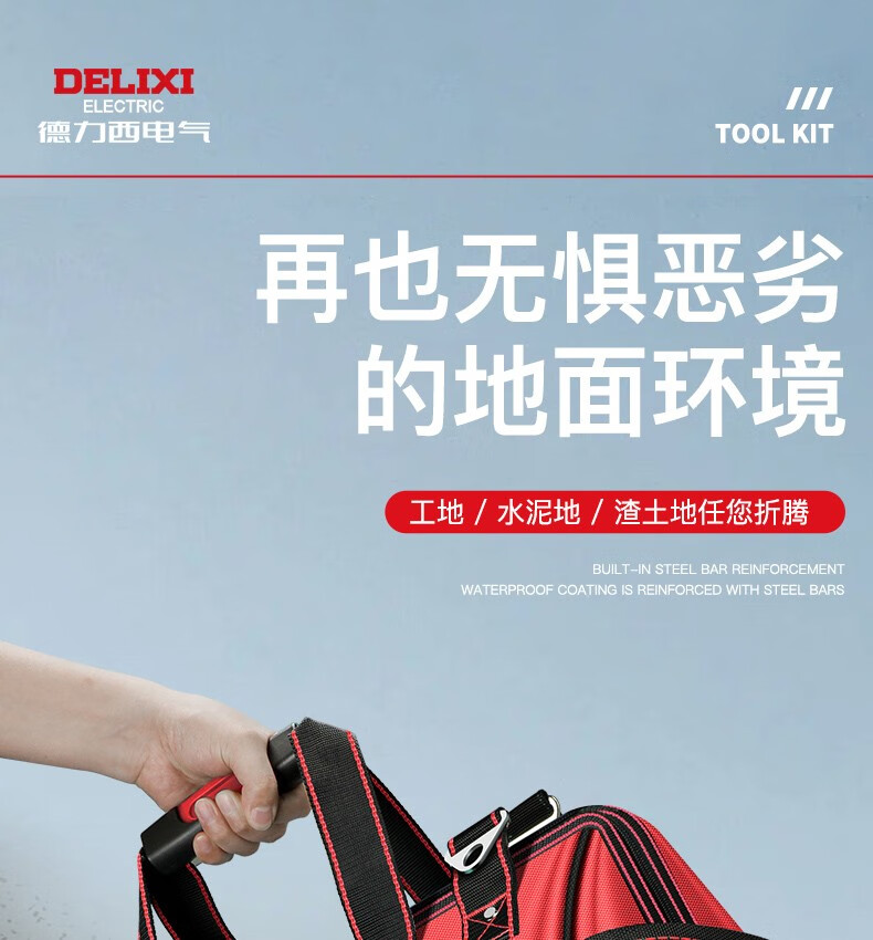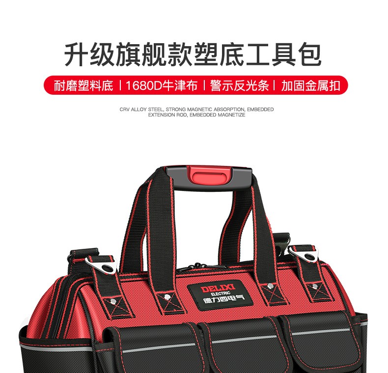 DELIXI ELECTRIC Tool Bag Electrician's Bag Thickened Waterproof Storage Bag Repair and Installation Canvas Bag Large Capacity Handbag 13-inch Classic Oxford Cloth