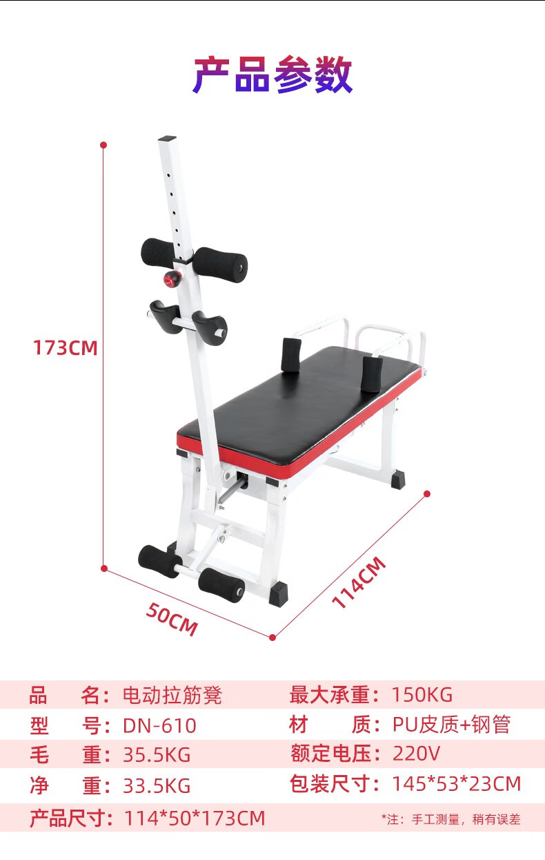 Stretching bench for household electric traction of lumbar vertebra, multi-angle adjustable leg pressing and stretching, Pilates fitness equipment, stretching bed, 610 multifunctional electric leg pressing and traction stretching bench