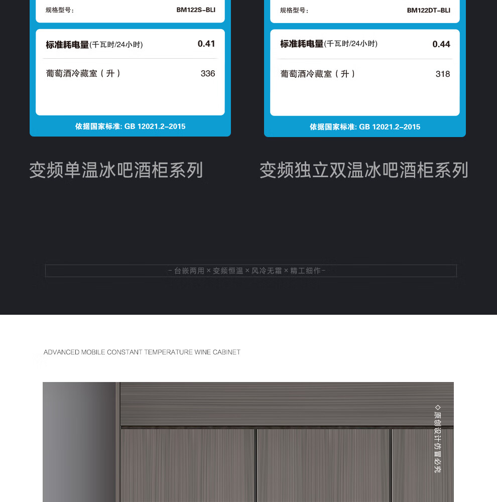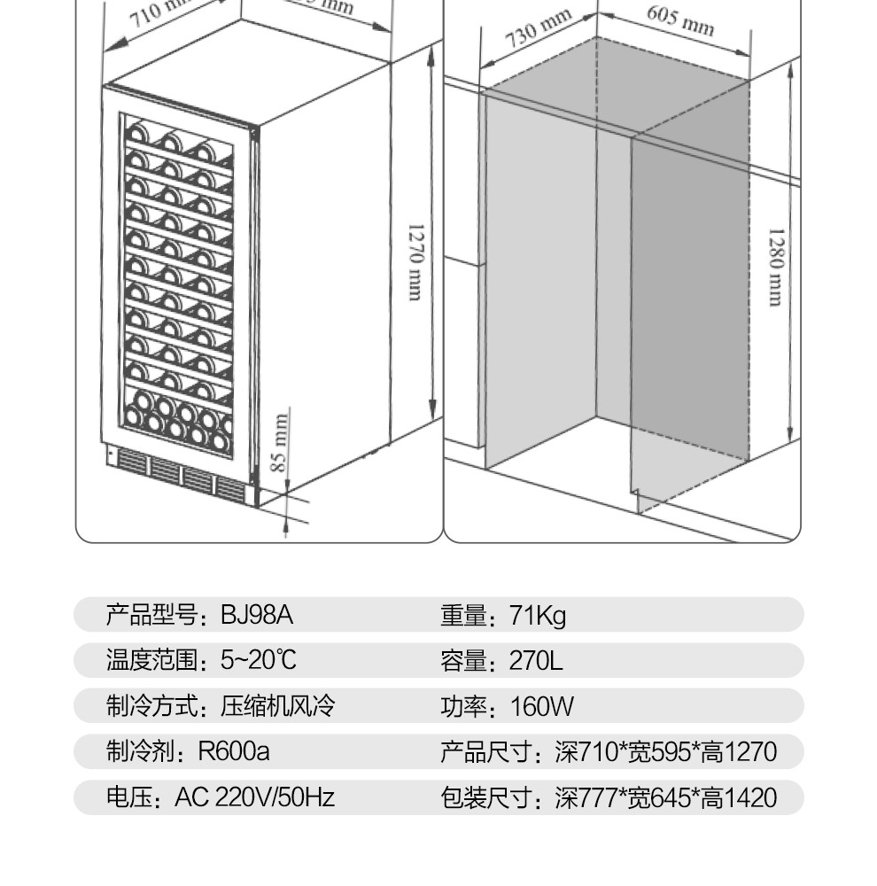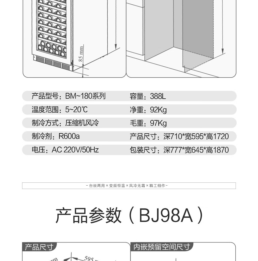 PULADI frequency conversion first-class energy efficiency large-capacity ice bar living room home refrigerator office refrigerator tea cabinet embedded constant temperature wine cabinet fresh commercial display cabinet villa refrigerator first-class energy efficiency frequency conversion 1.79 meters high 318 liters dual temperature