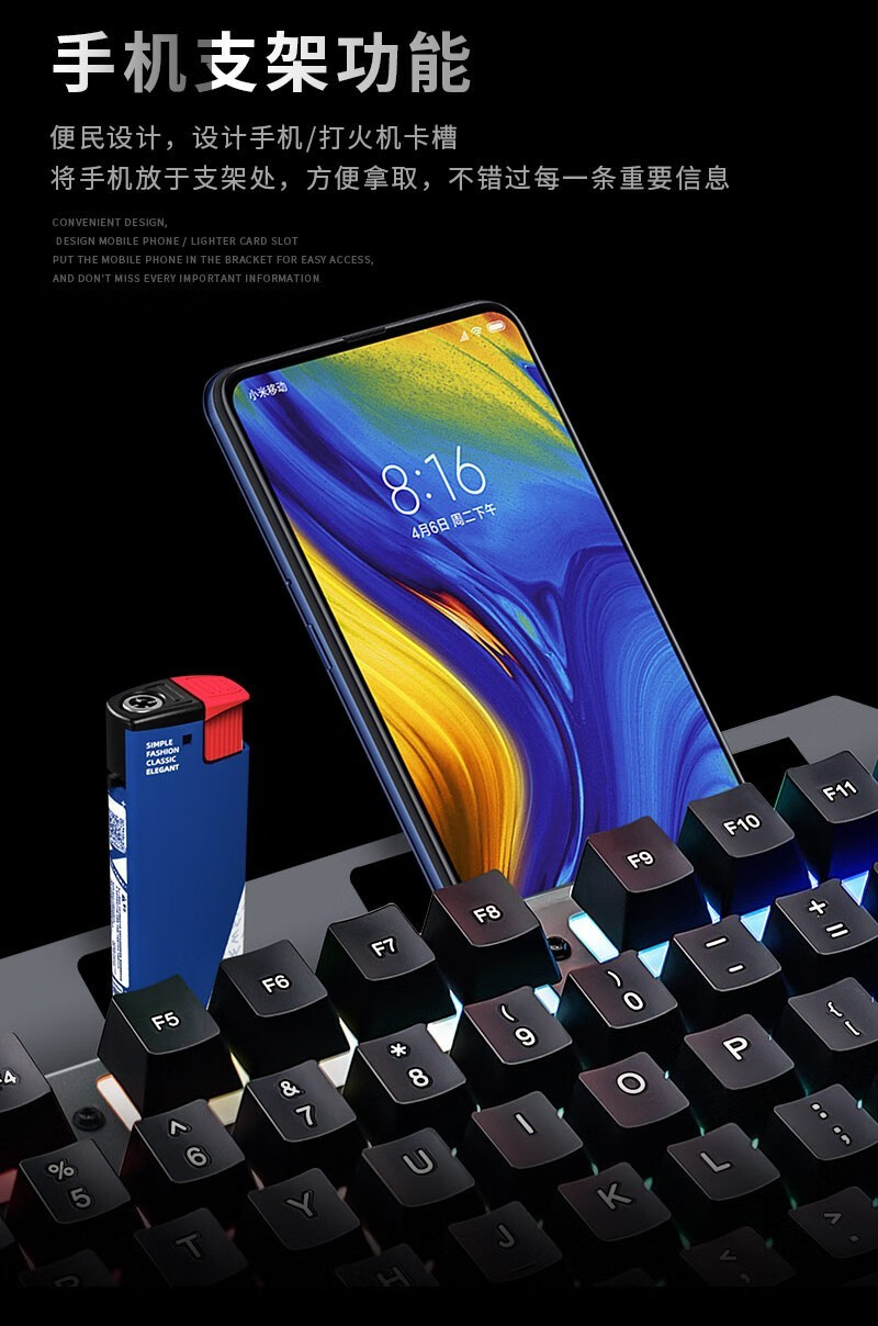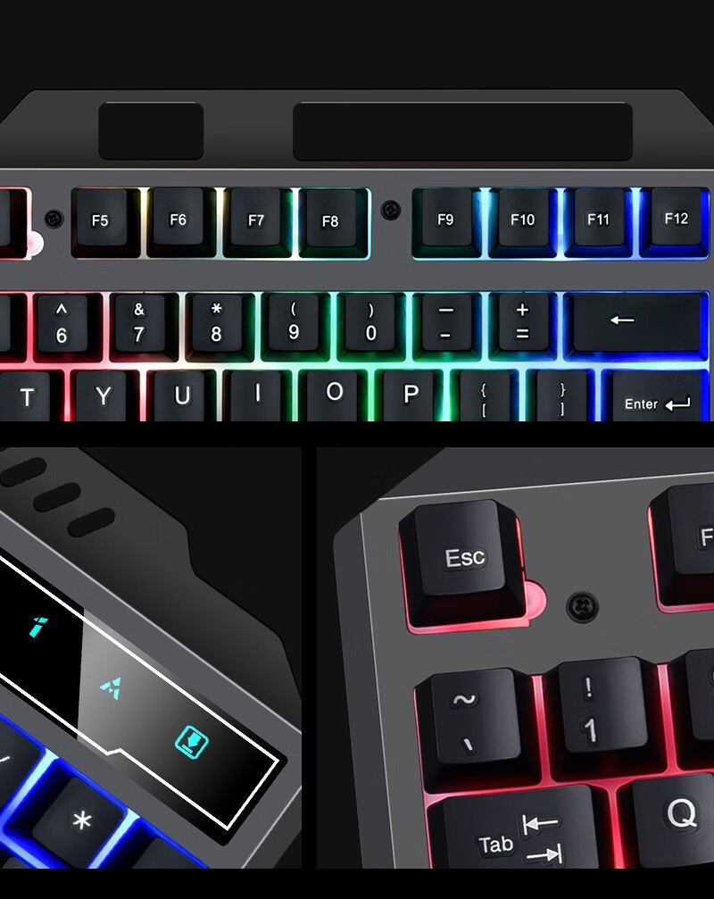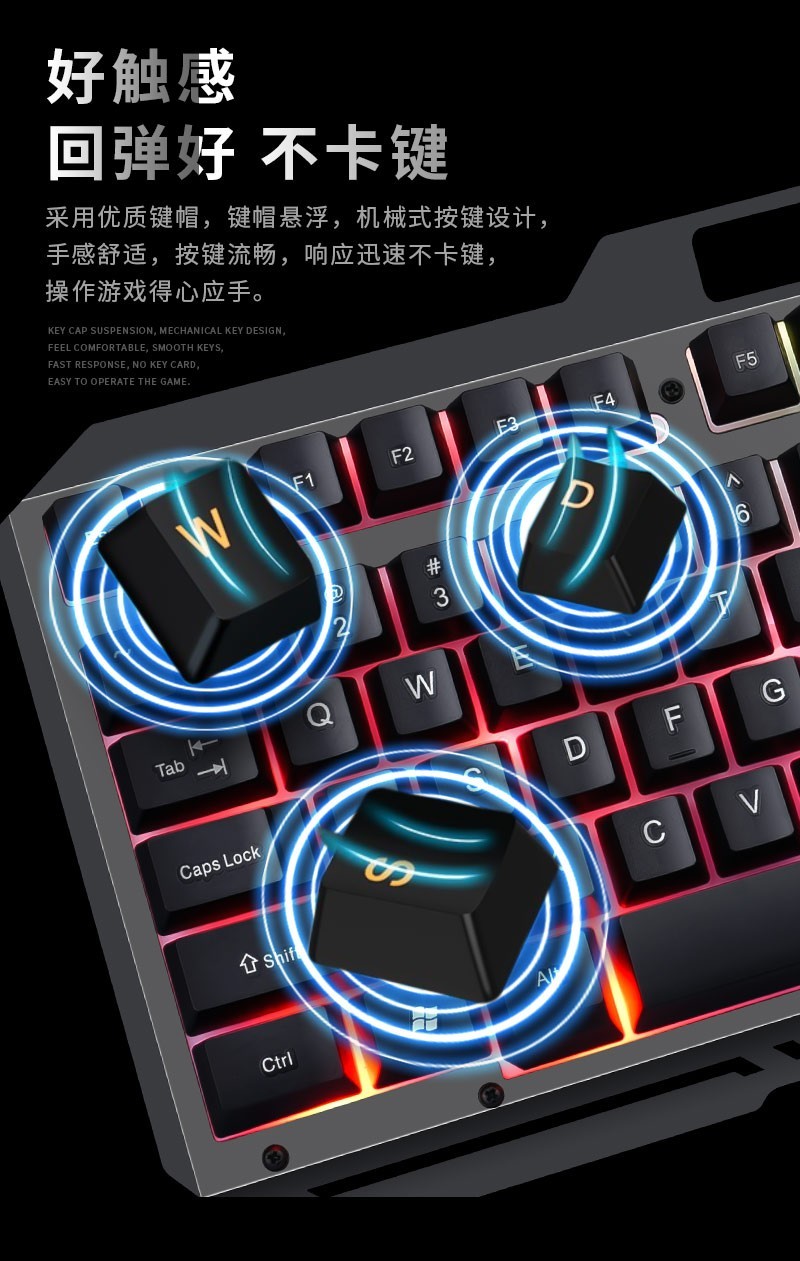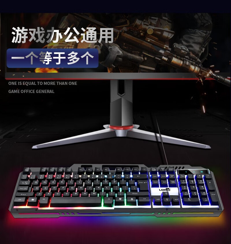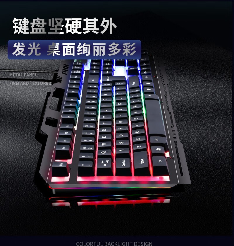 LDK.al RK300 Juego de teclado y mouse para cibercafé, sensación mecánica, panel de metal, teclado retroiluminado luminoso de tamaño completo de 104 teclas, teclado y mouse para computadora portátil, teclado luminoso genial + mouse agrietado + auriculares