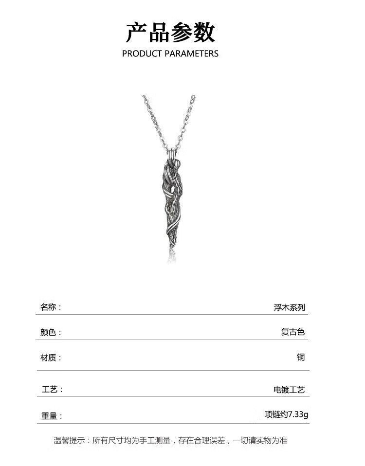 BJYL driftwood necklace men's retro style pendant boys' clavicle chain niche design fashion accessories men's trendy gift