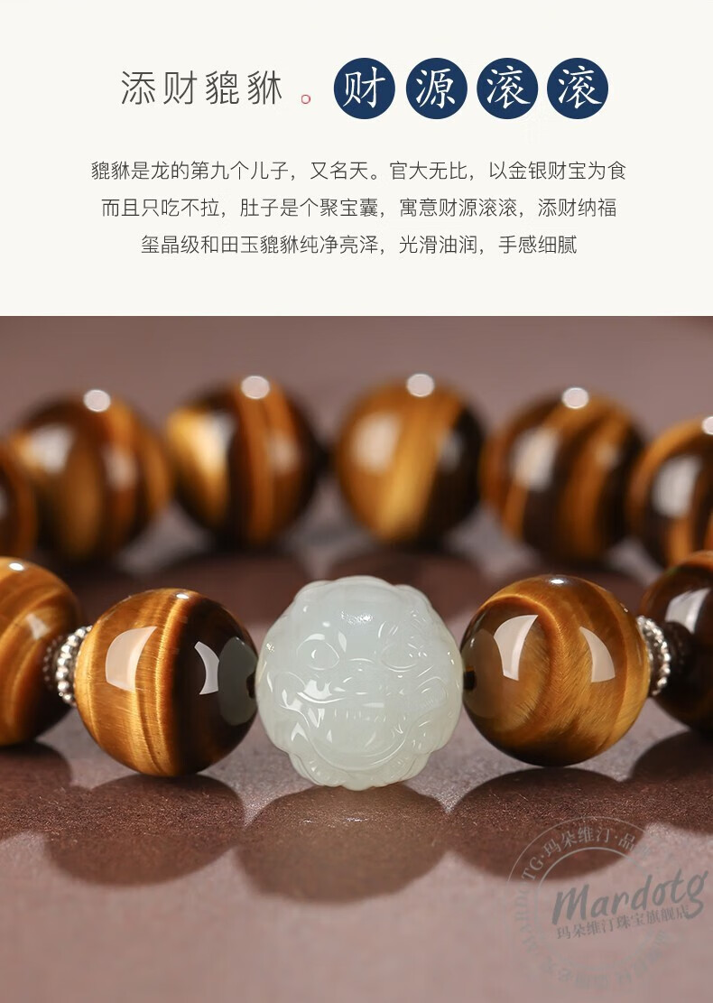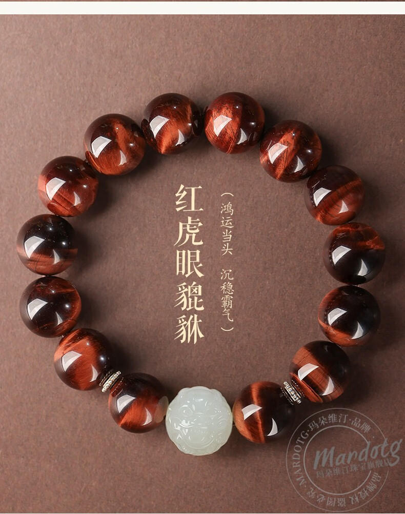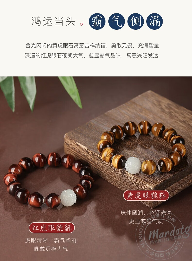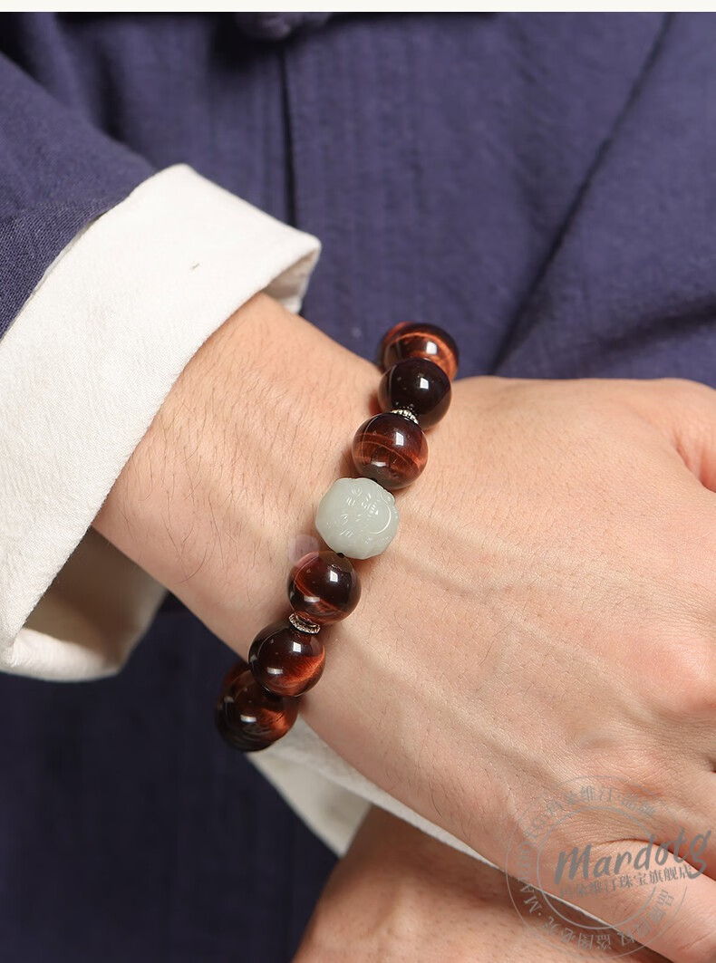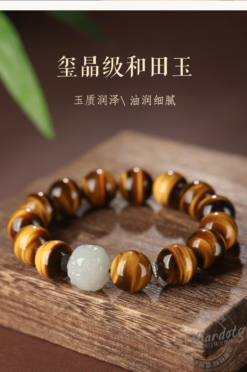 MARDOTG Tiger Eye Stone Bracelet Men's Jade Pixiu Buddha Bead Bracelet Crystal Bracelet Men's Gift 7A Grade Yellow Tiger Eye Bead Diameter 12MM