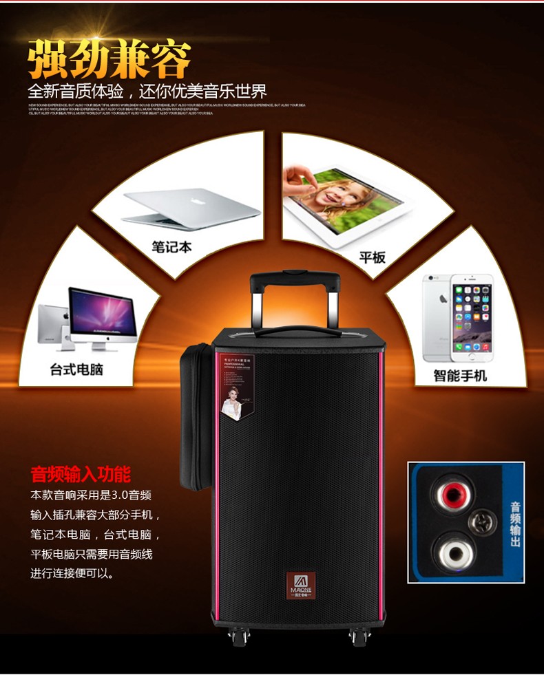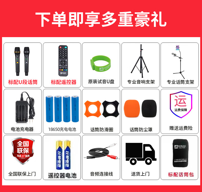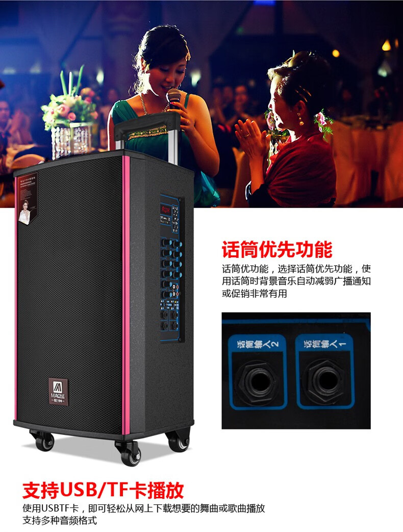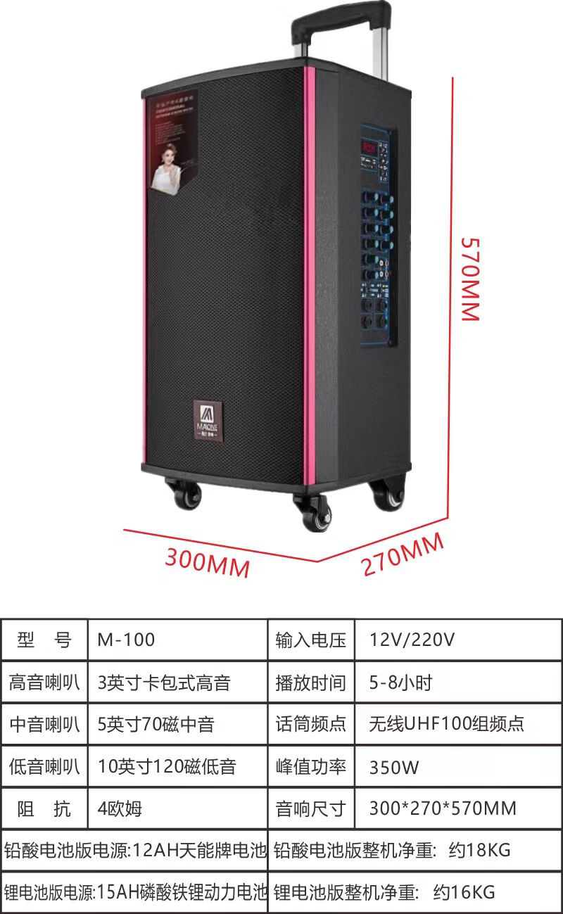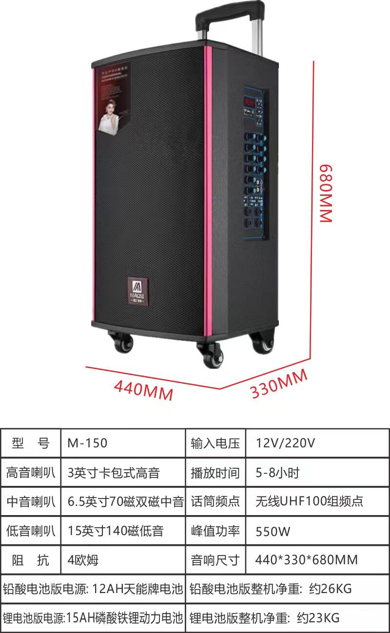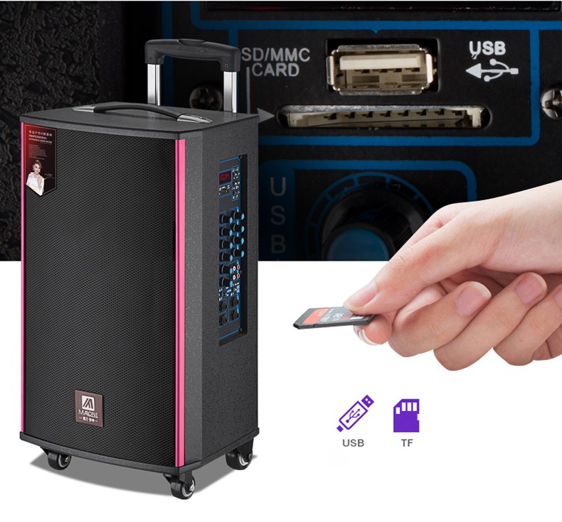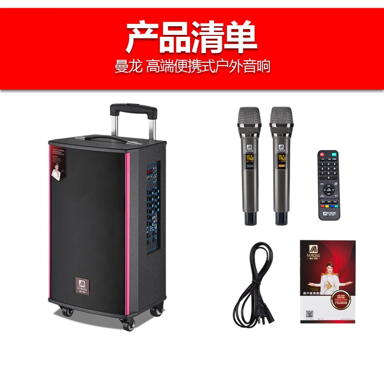 MALONE outdoor square dance audio three-way subwoofer with sound card wireless microphone Bluetooth live broadcast karaoke portable trolley speaker M150 lead-acid battery + dual microphones + gifts