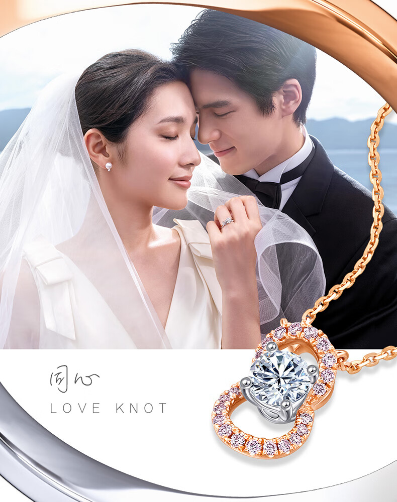 Chow Sang Sang diamond necklace PROMESSA concentric series 18K gold concentric knot 93004N 47 cm/18K/main stone 23 points/H color/SI clarity