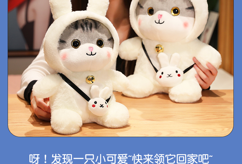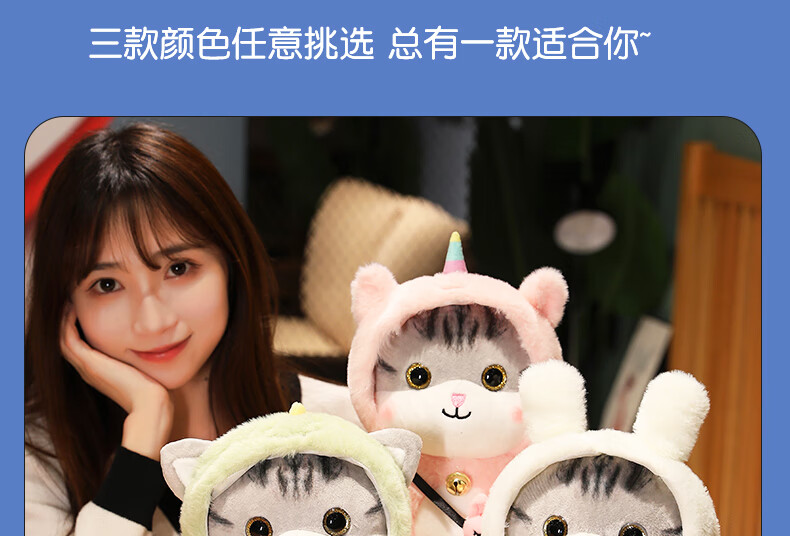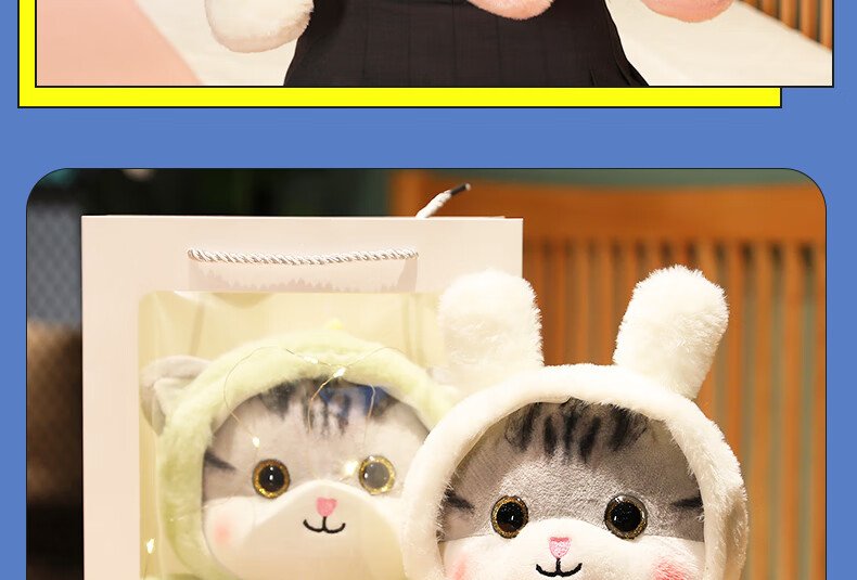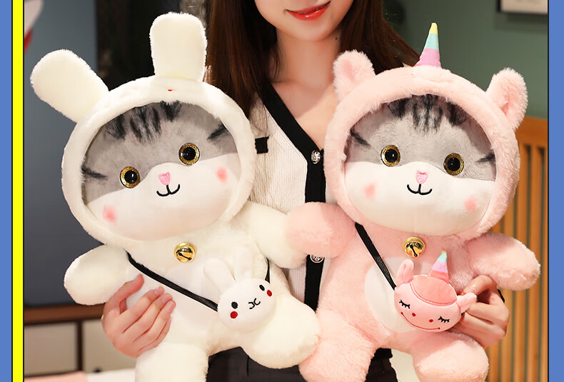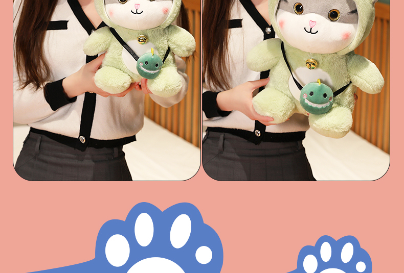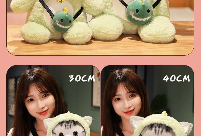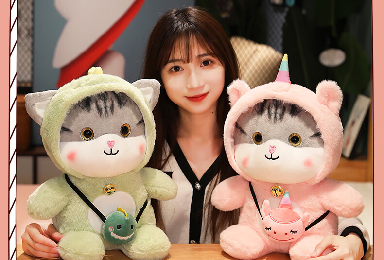 Yunya cute cat doll sleeps and cuddles on the bed, kitten simulation gift, transforms into a cat, girlfriend friend birthday gift, transforms into a dinosaur cat - 30 cm