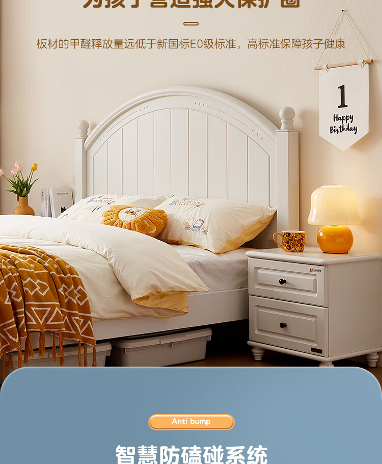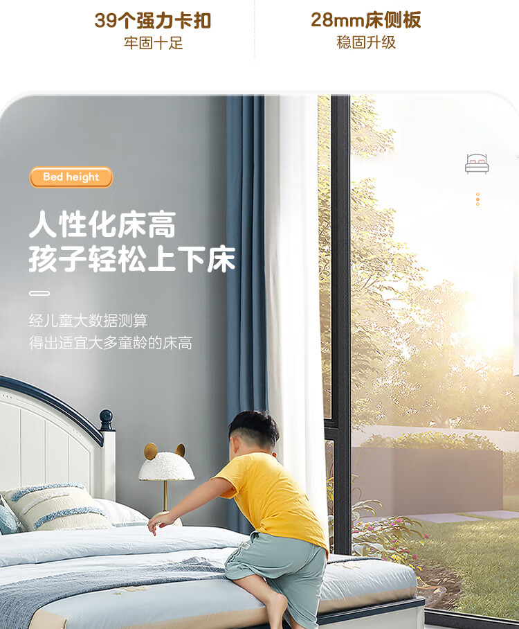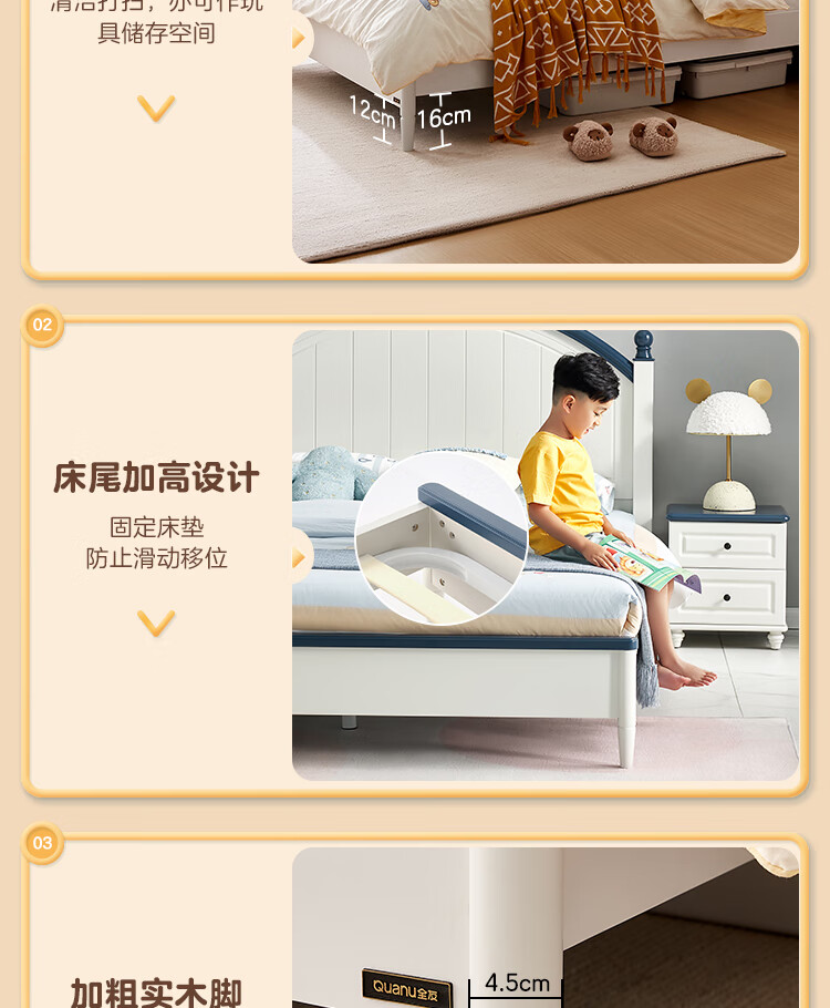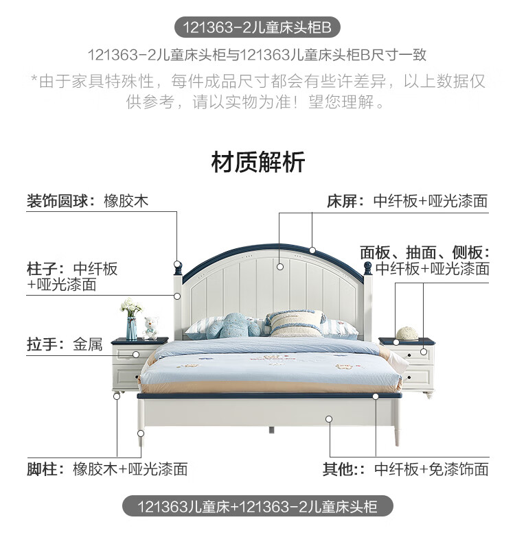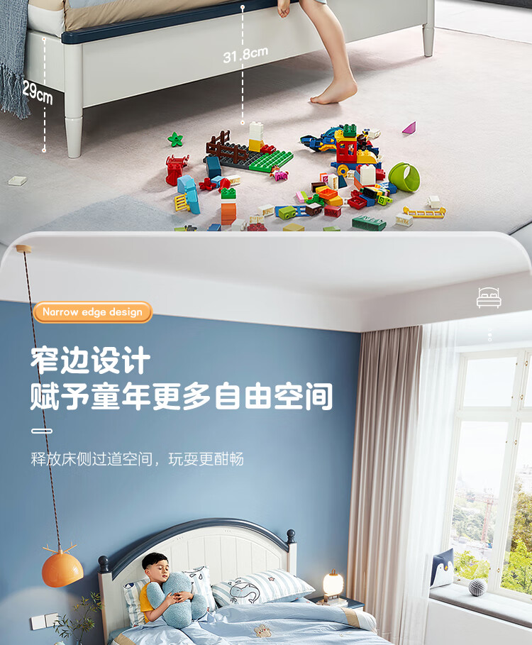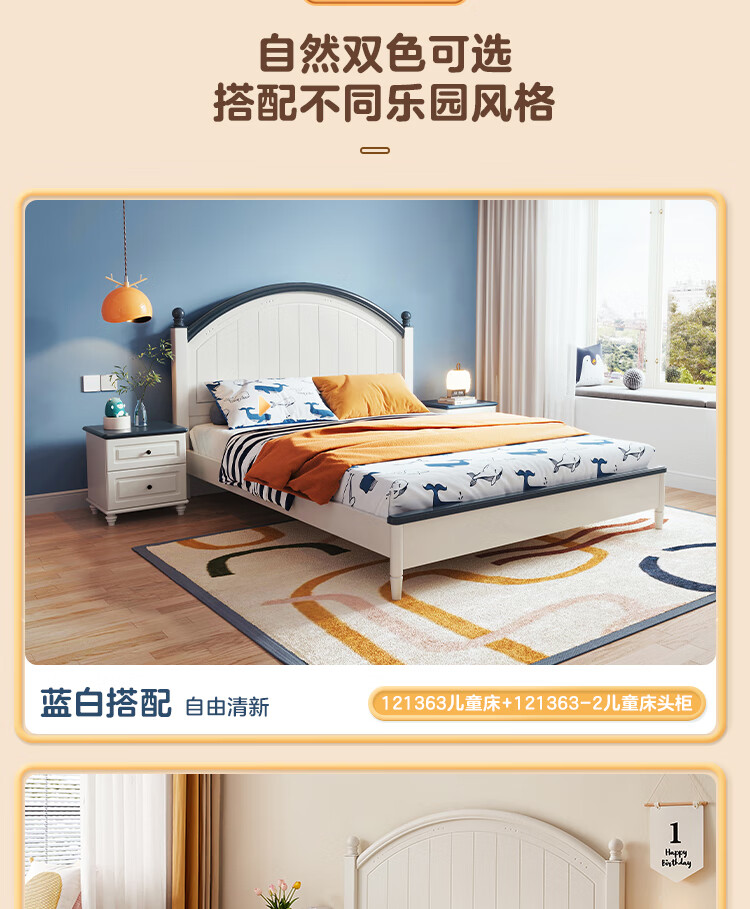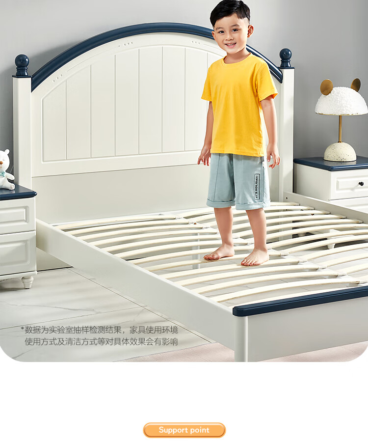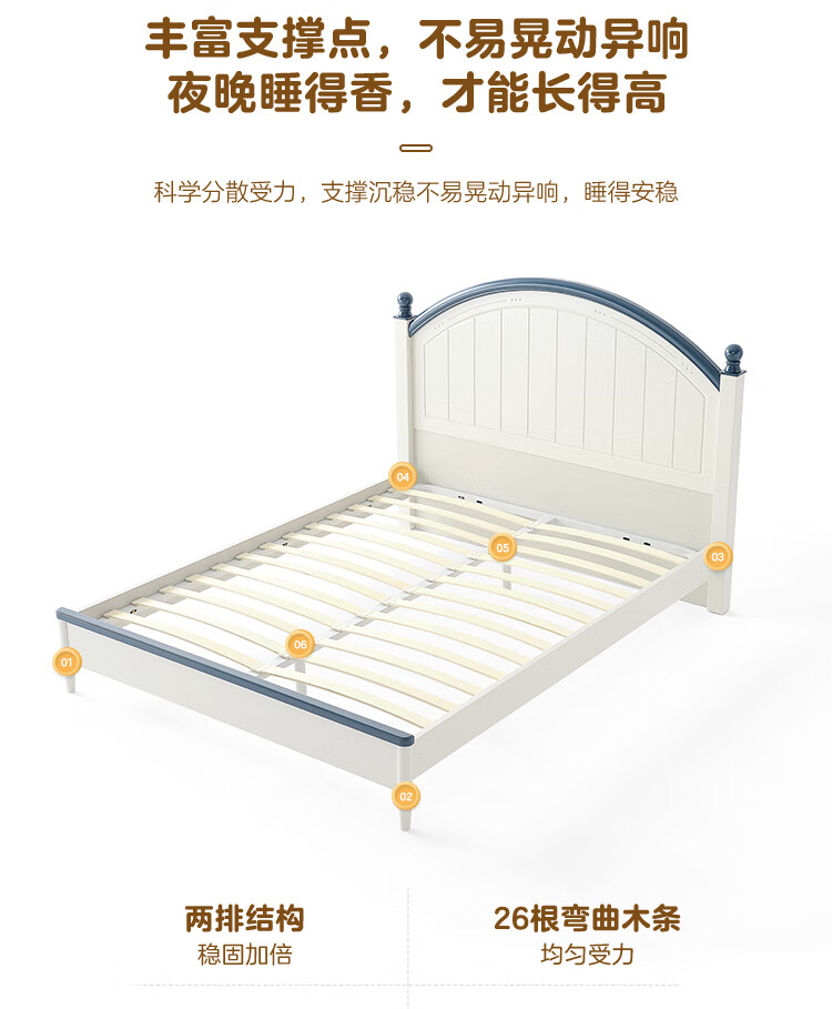 Quanyou Home Simple Children's Room Bed Boy Solid Wood Feet Student Single Bed Second Bedroom Teenager 1.5x2 Meter Bed Furniture Blue and White | 1.5m Children's Bed + Mattress