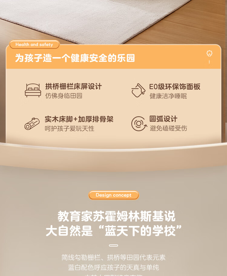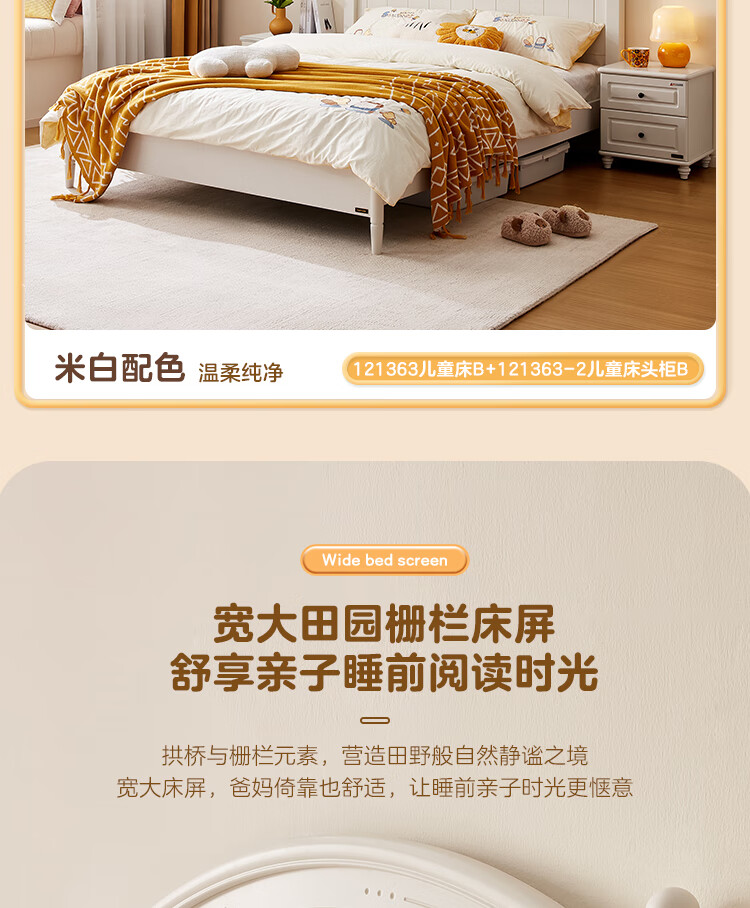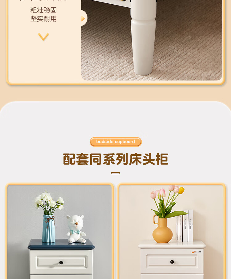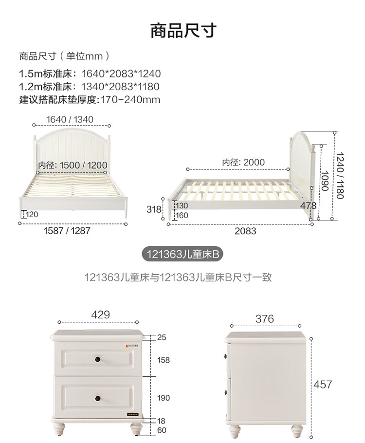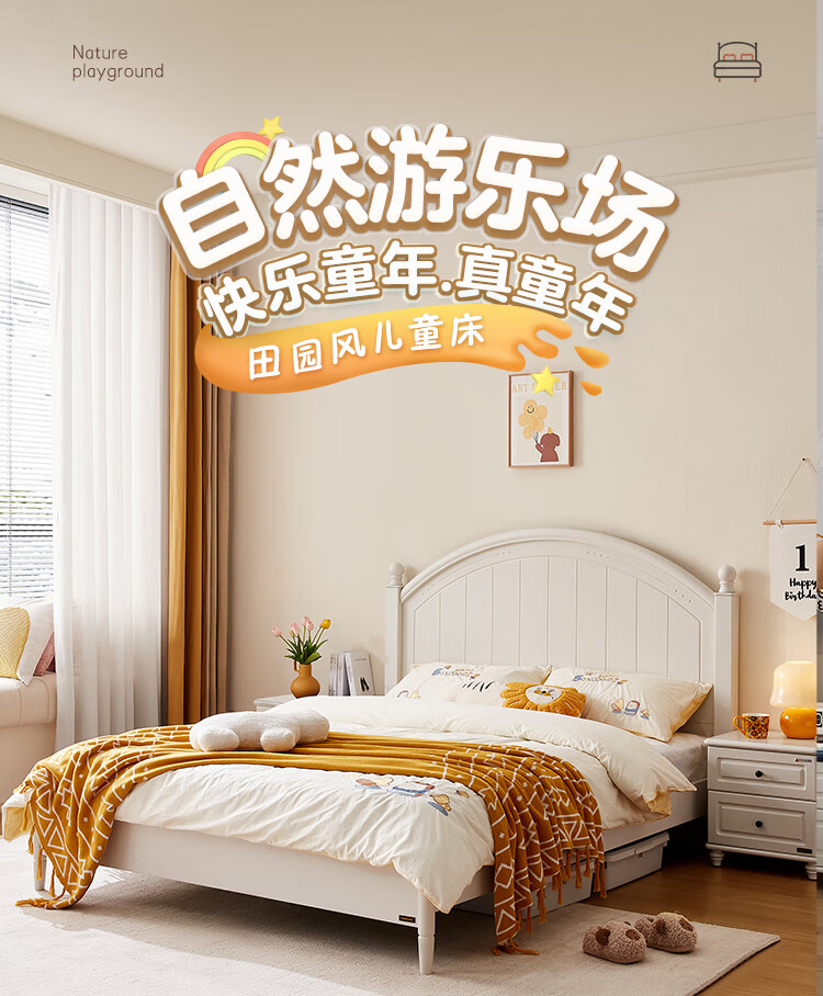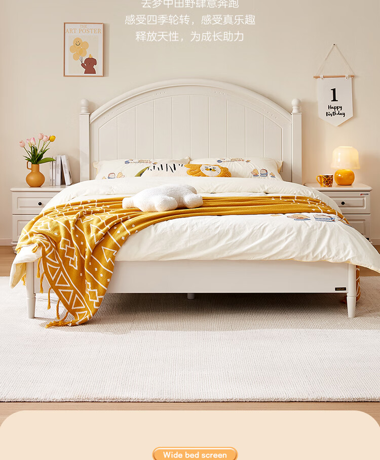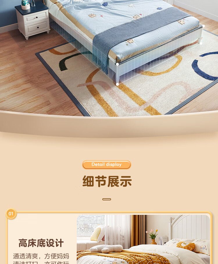 Quanyou Home Simple Children's Room Bed Boy Solid Wood Feet Student Single Bed Second Bedroom Teenager 1.5x2 Meter Bed Furniture Blue and White | 1.5m Children's Bed + Mattress