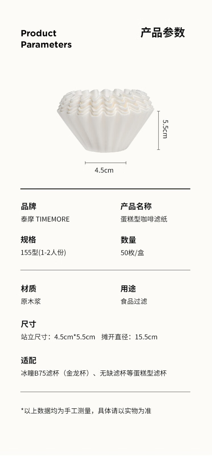 Taimo drip filter special cake-shaped filter paper, hand-brewed coffee pot filter paper, Golden Dragon Cup flat-bottomed coffee filter paper, cake-shaped filter paper | No. 01, white, 50 sheets