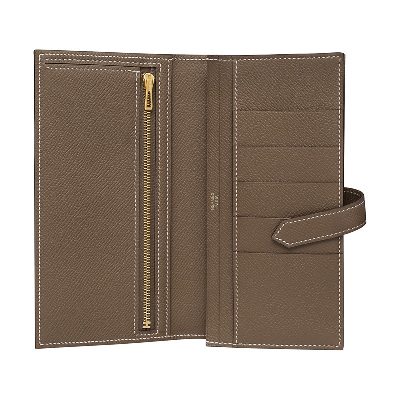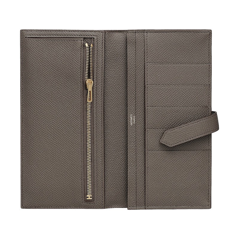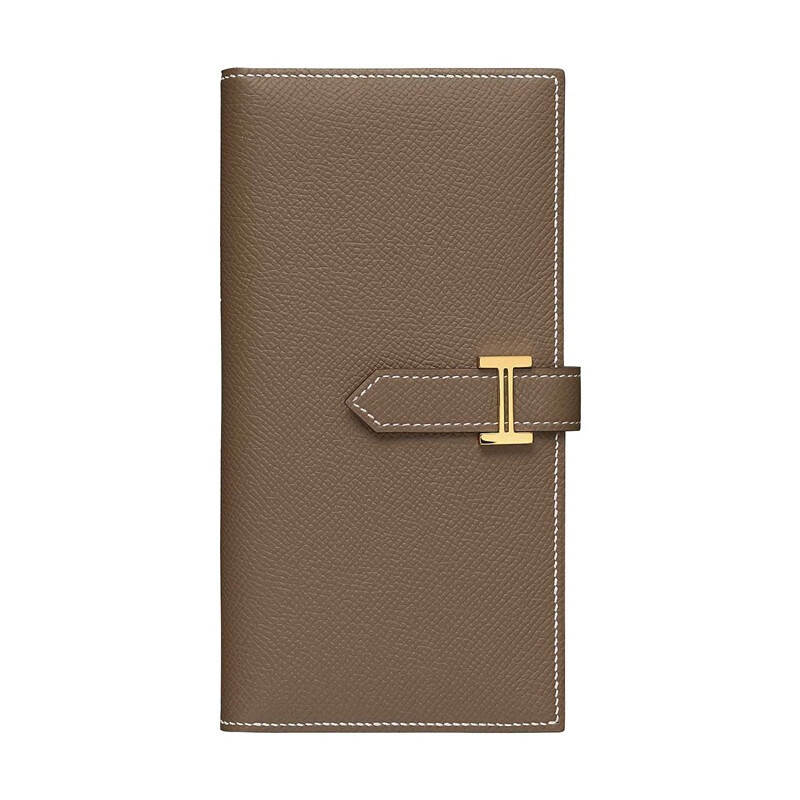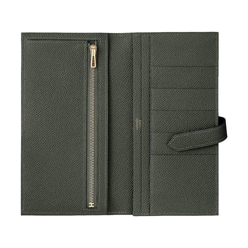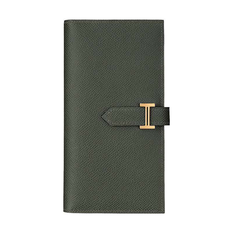 Hermès men's and women's wallets in calfskin, mid-length with crotch pocket, multiple card slots, H buckle, Chinese Valentine's Day gift, dark green