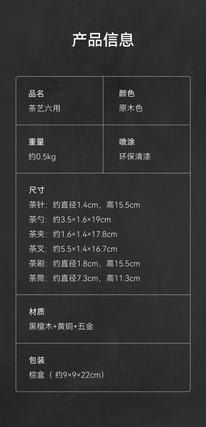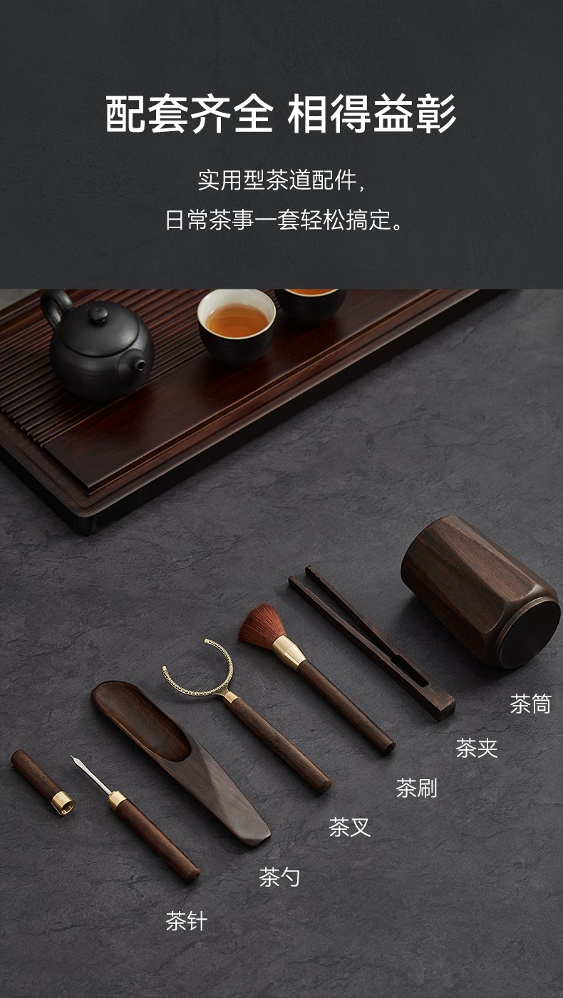 Chuxin Black Sandalwood Tea Ceremony Six Gentlemen Tea Set Accessories Set Pu'er Tea Needle Tea Knife Tea Clamp Tea Spoon Tea Brush Kung Fu Tea Accessories Six Gentlemen Tea Ceremony - Black Sandalwood