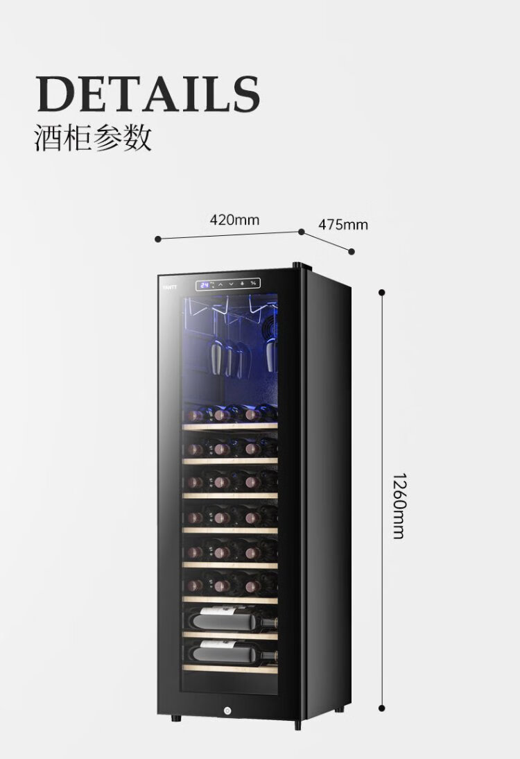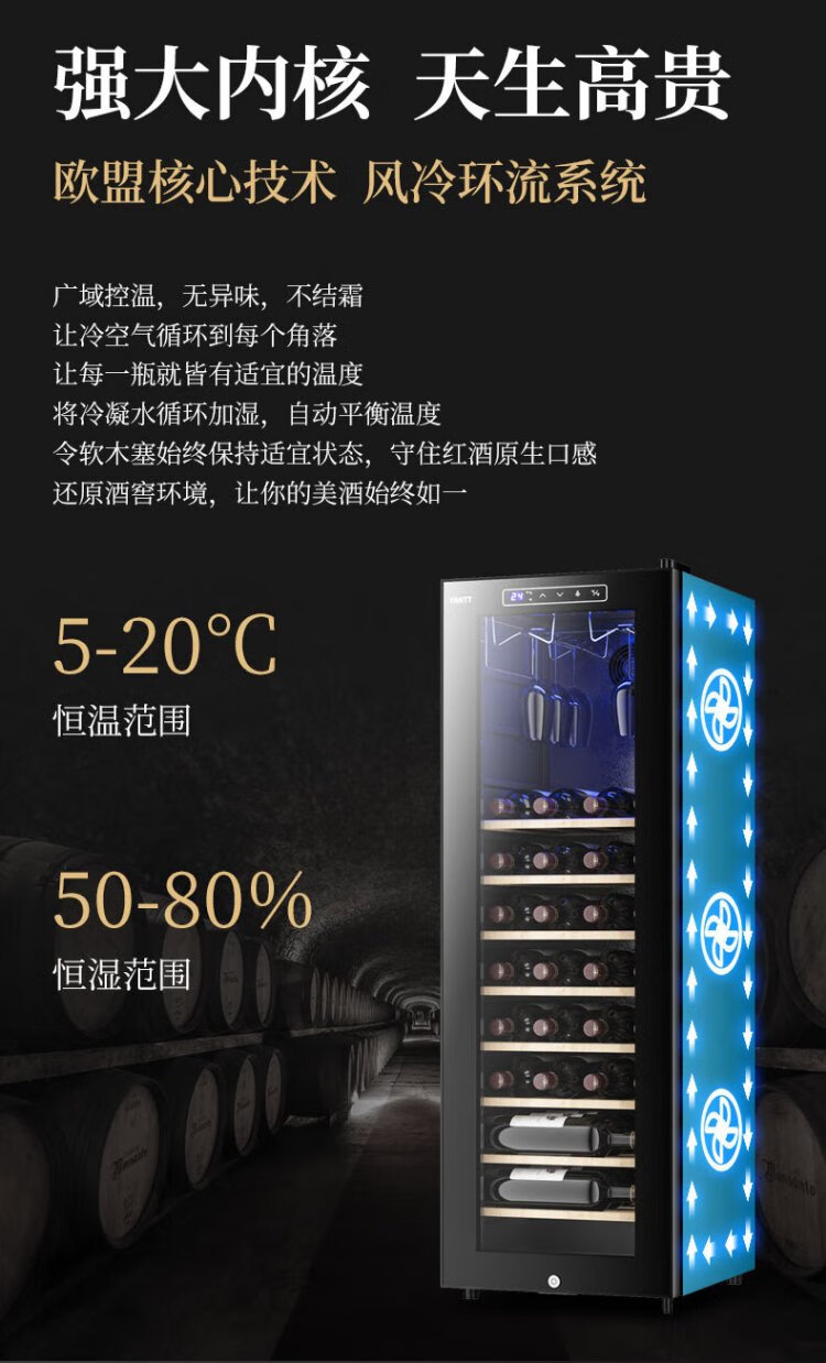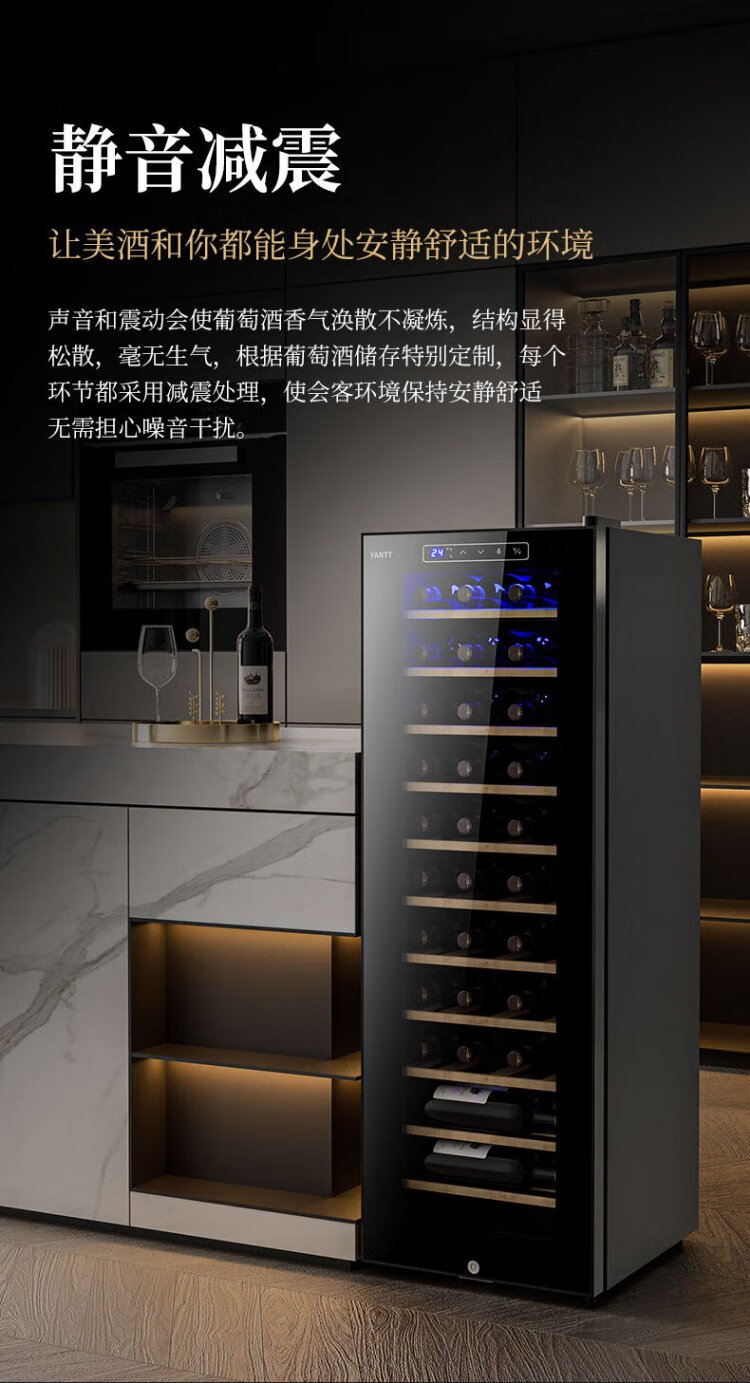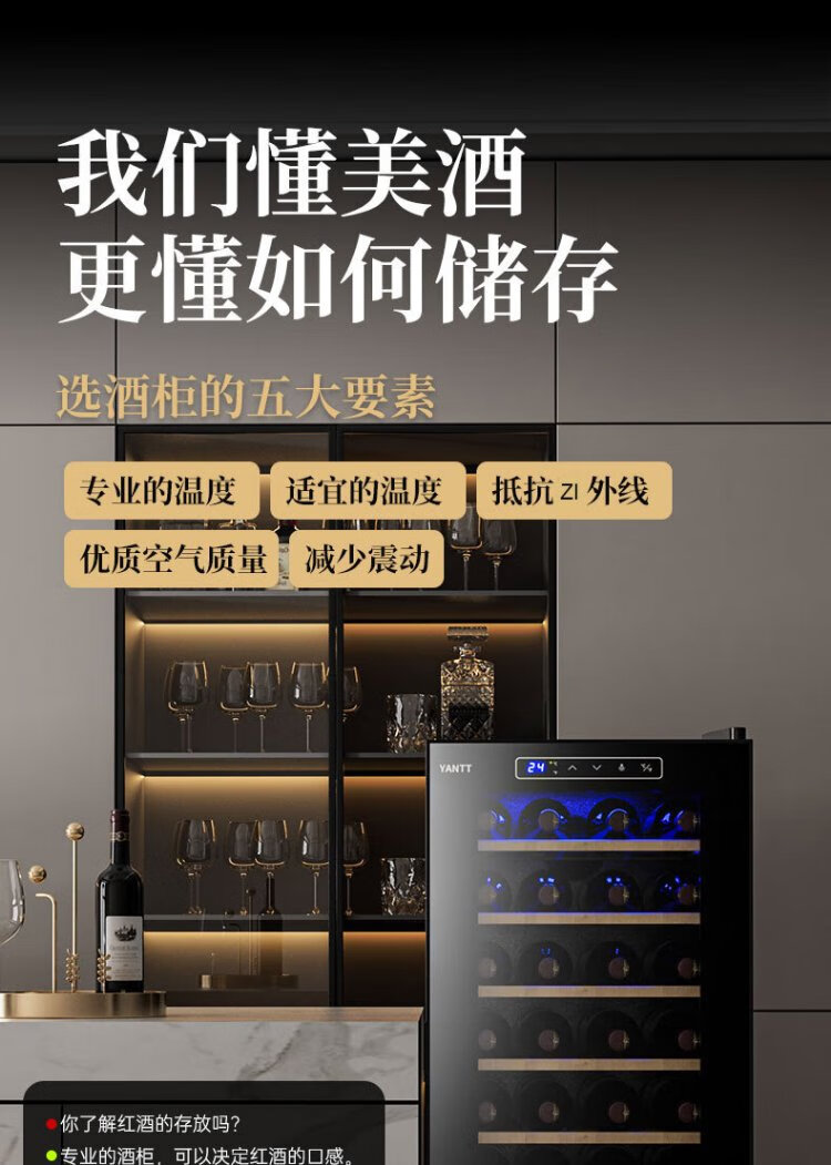 Mrs. Yan red wine cabinet home living room commercial small wine tea cigar safe refrigerated cabinet air-cooled constant temperature moisturizing frost-free vertical display cabinet upper hanging cup red wine cabinet (34 pieces)