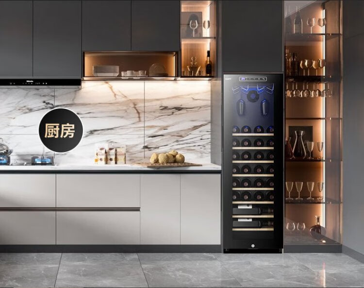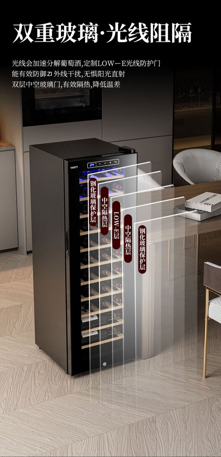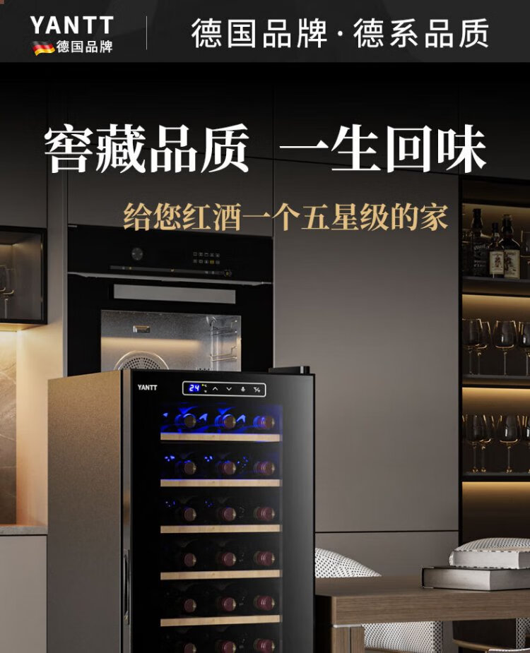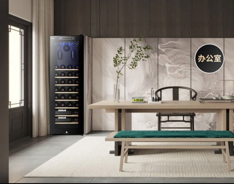 Mrs. Yan red wine cabinet home living room commercial small wine tea cigar safe refrigerated cabinet air-cooled constant temperature moisturizing frost-free vertical display cabinet upper hanging cup red wine cabinet (34 pieces)