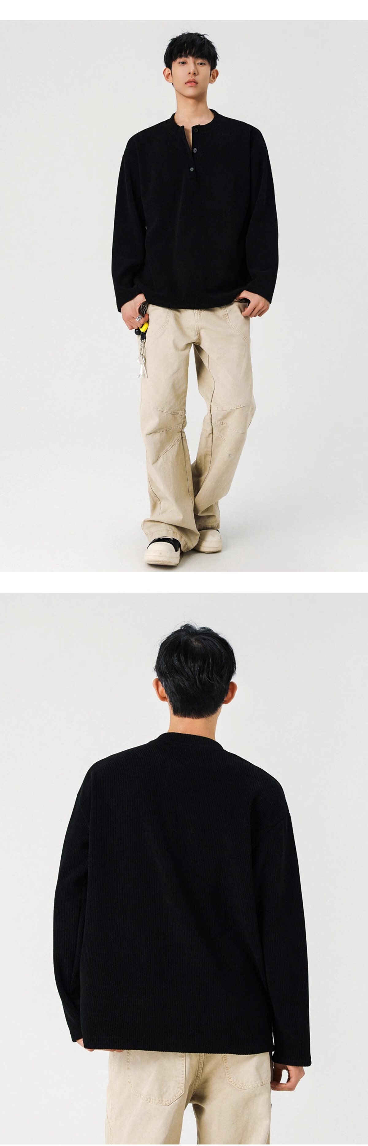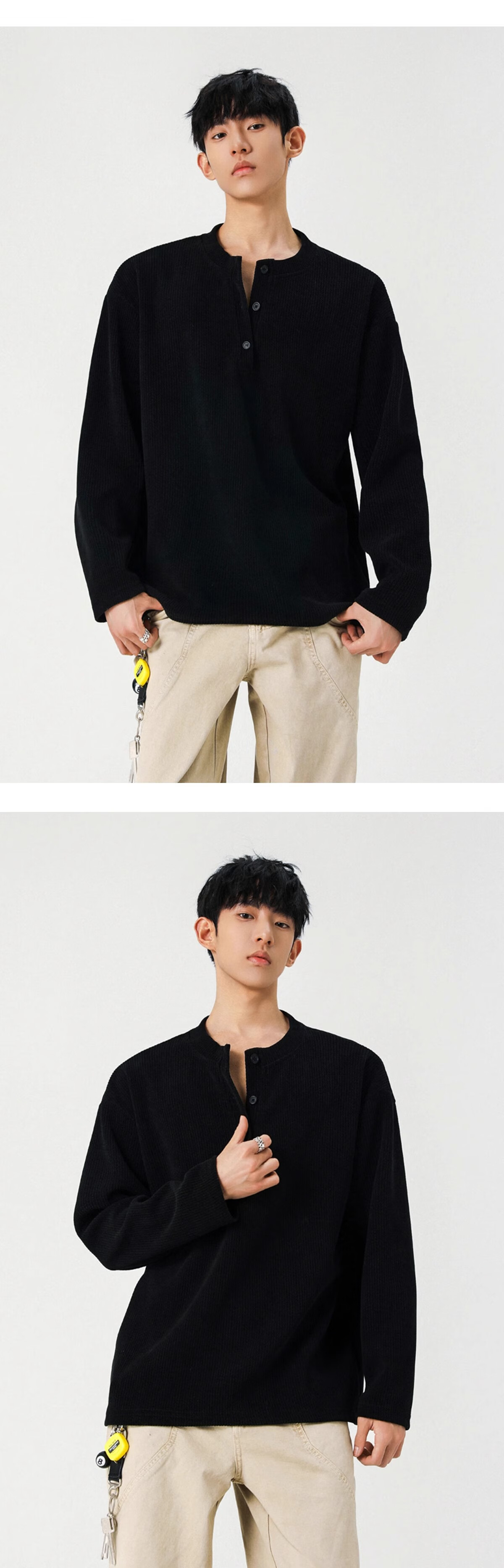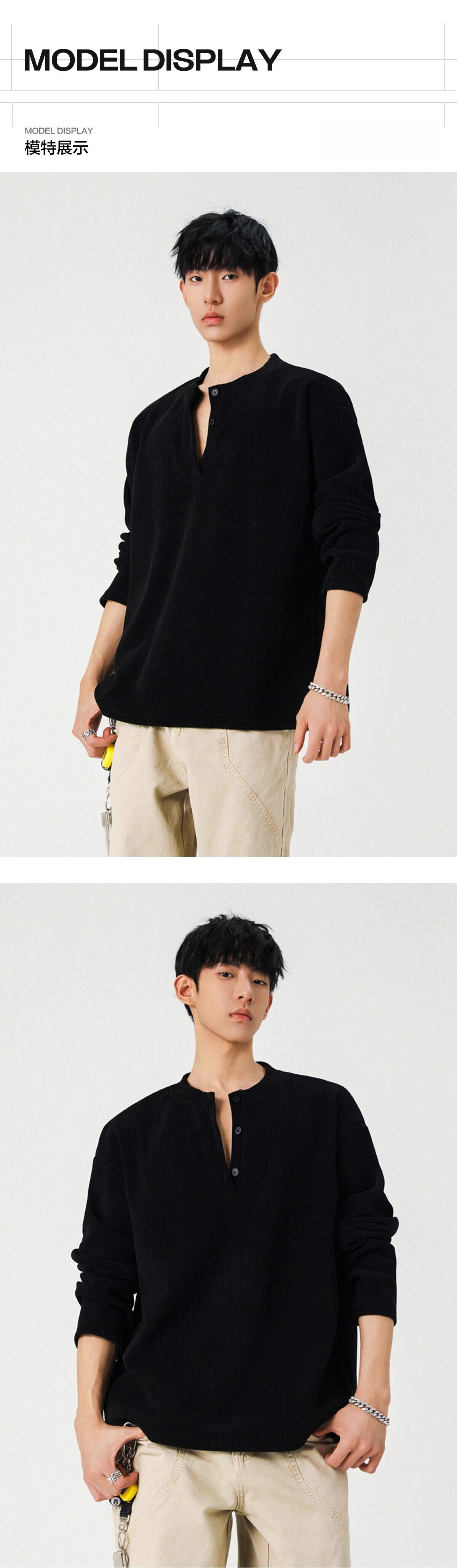 OEMG Black Henry Collar Long Sleeve T-Shirt Men's Autumn High Street Versatile High-Quality Youth Undershirt Top Black XL Recommended 110-130Jin Jin equals 0.5kg
