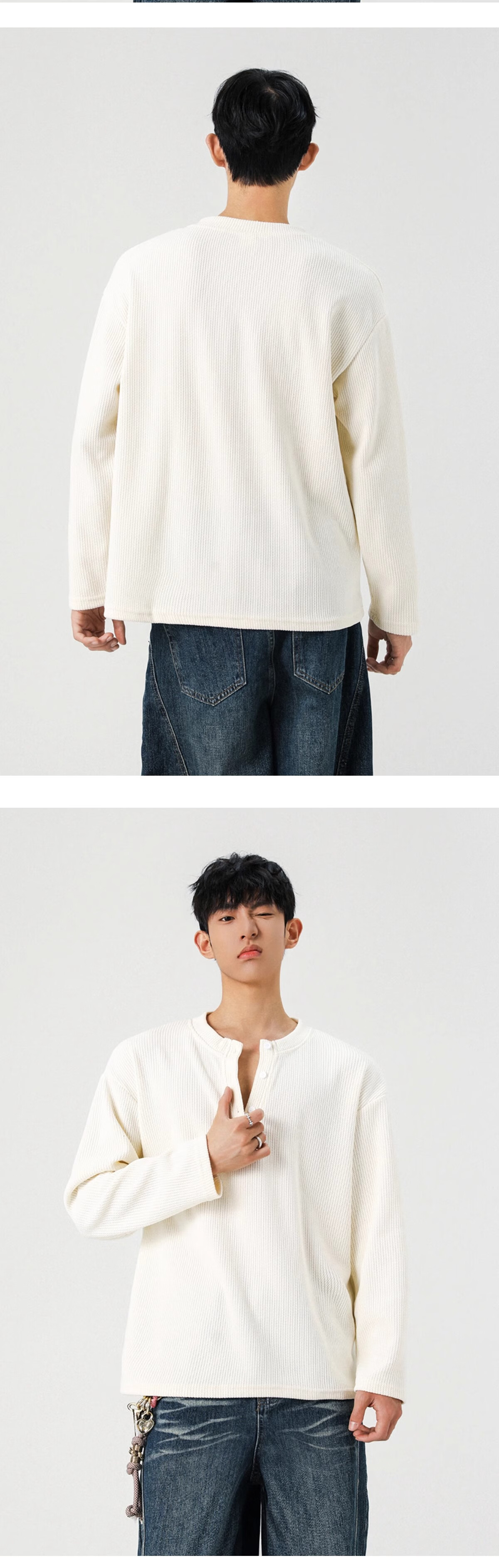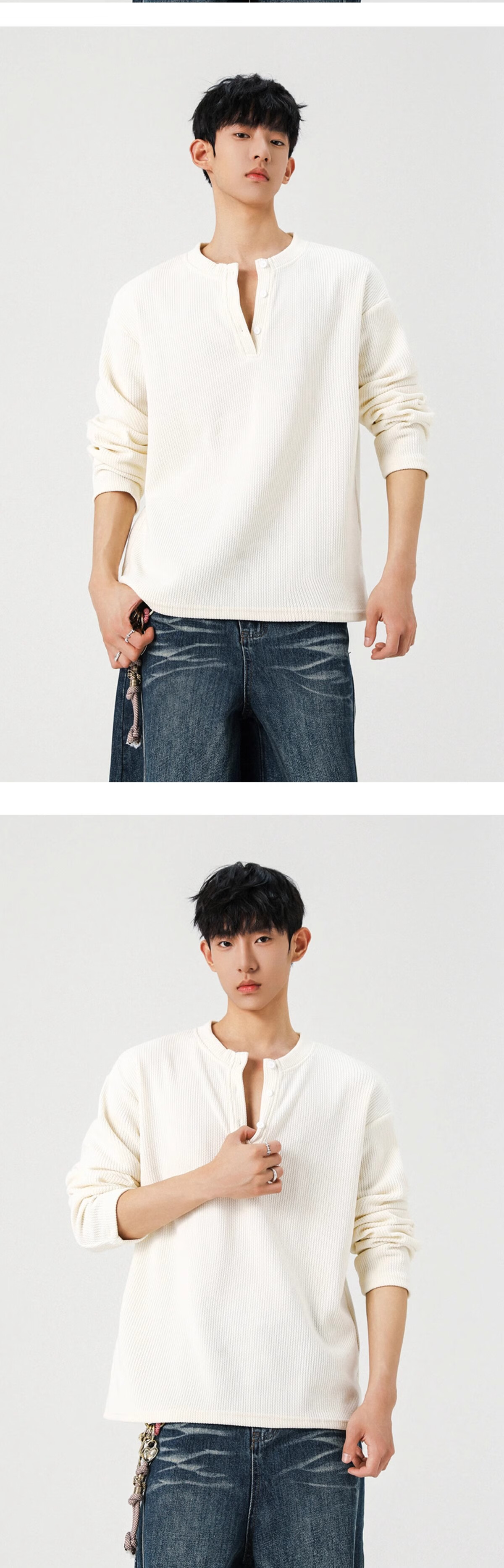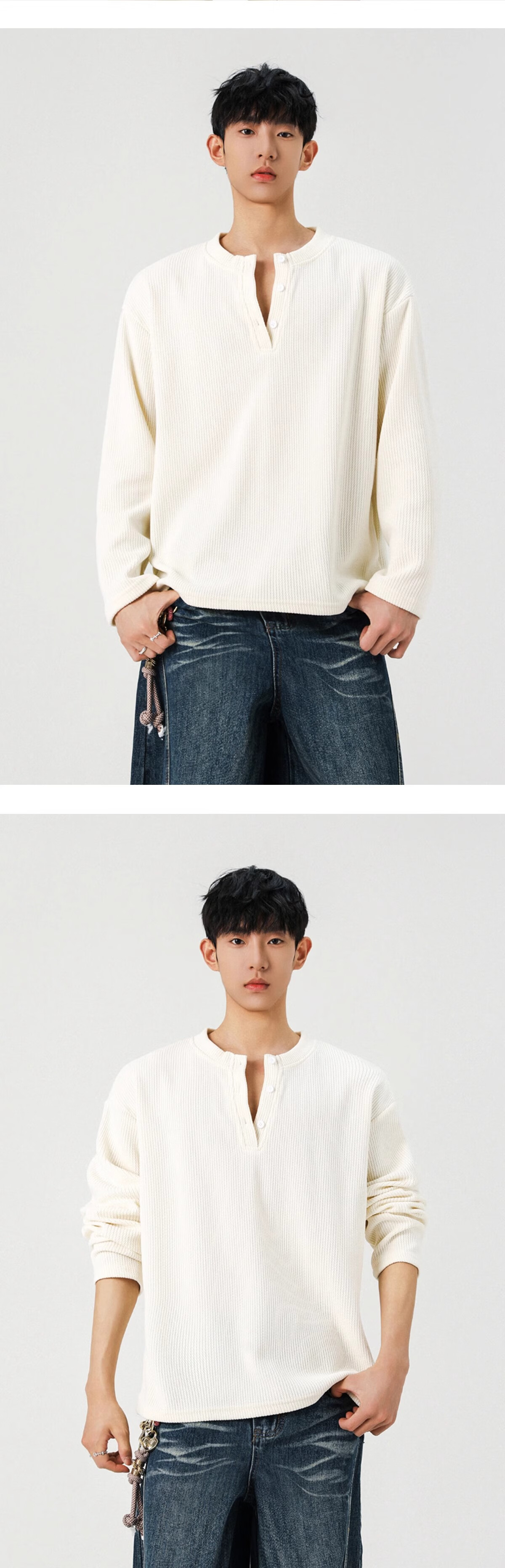 OEMG Black Henry Collar Long Sleeve T-Shirt Men's Autumn High Street Versatile High-Quality Youth Undershirt Top Black XL Recommended 110-130Jin Jin equals 0.5kg