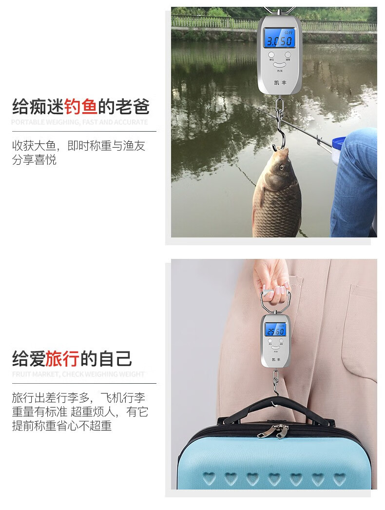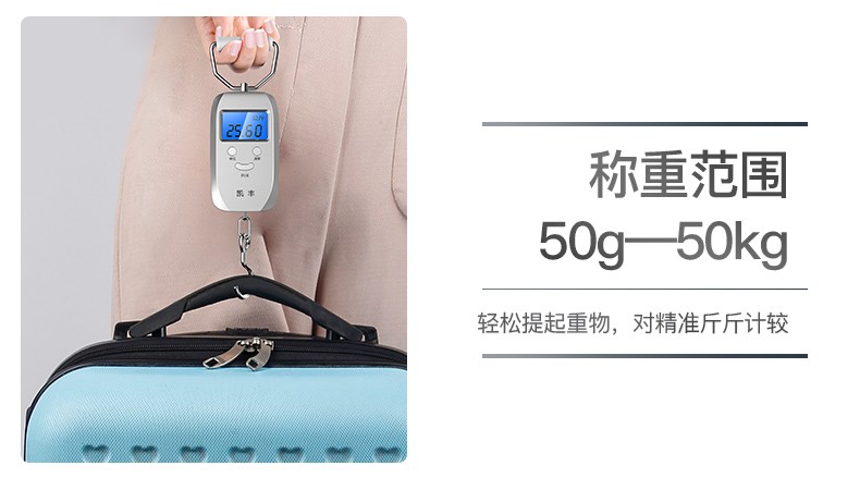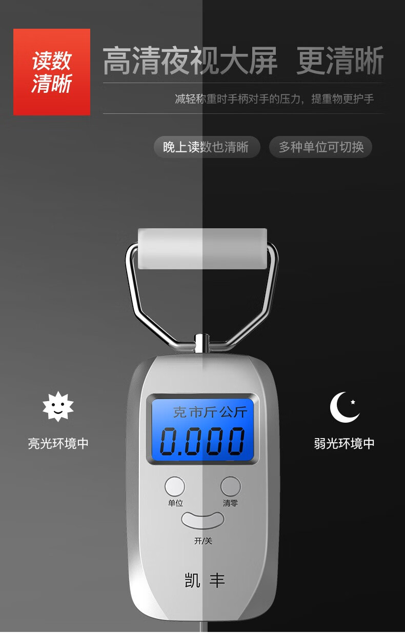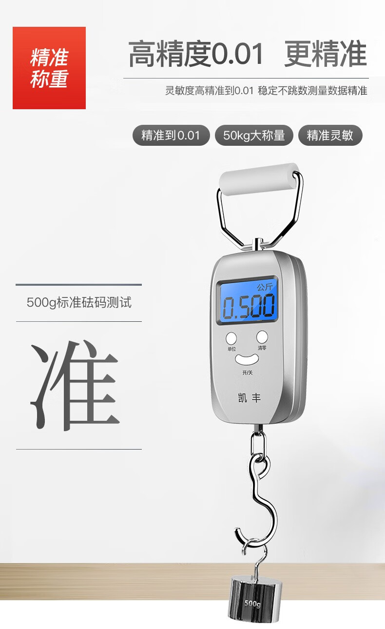 Kaifeng mini portable electronic scale 50kg portable high-precision household express scale spring scale weighing food luggage scale silver 50kg large collodion hand guard + battery