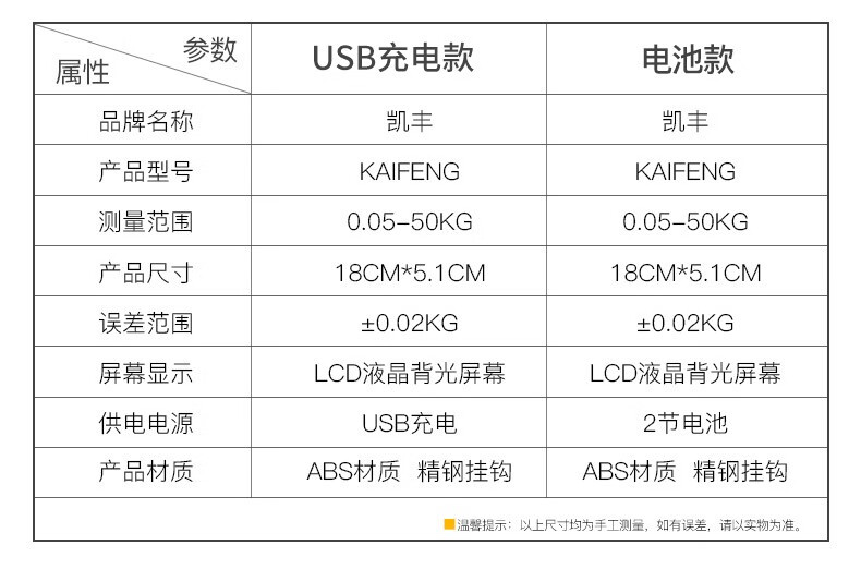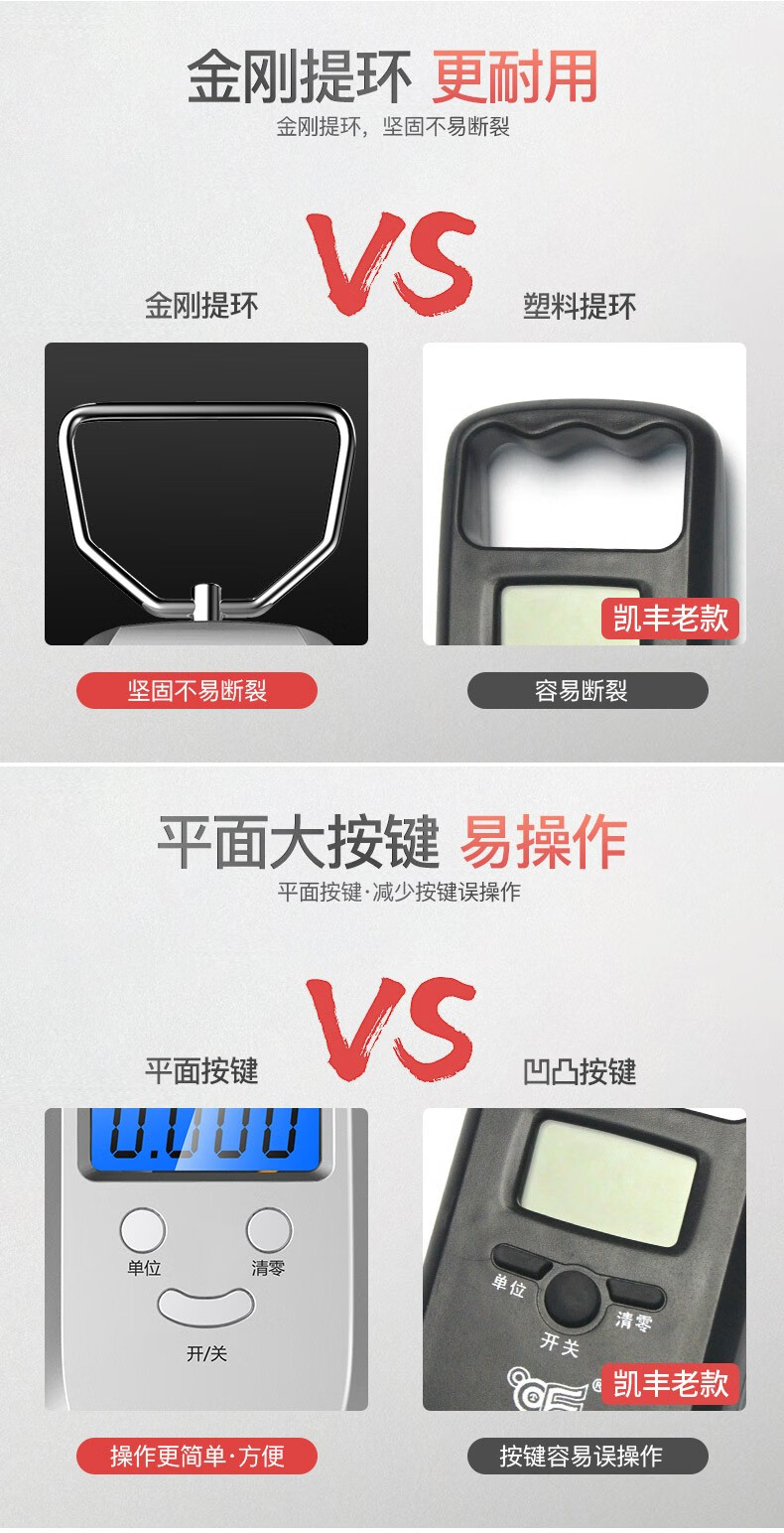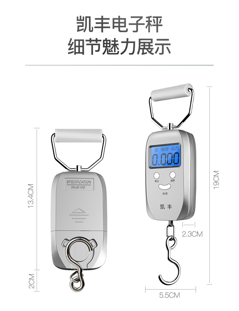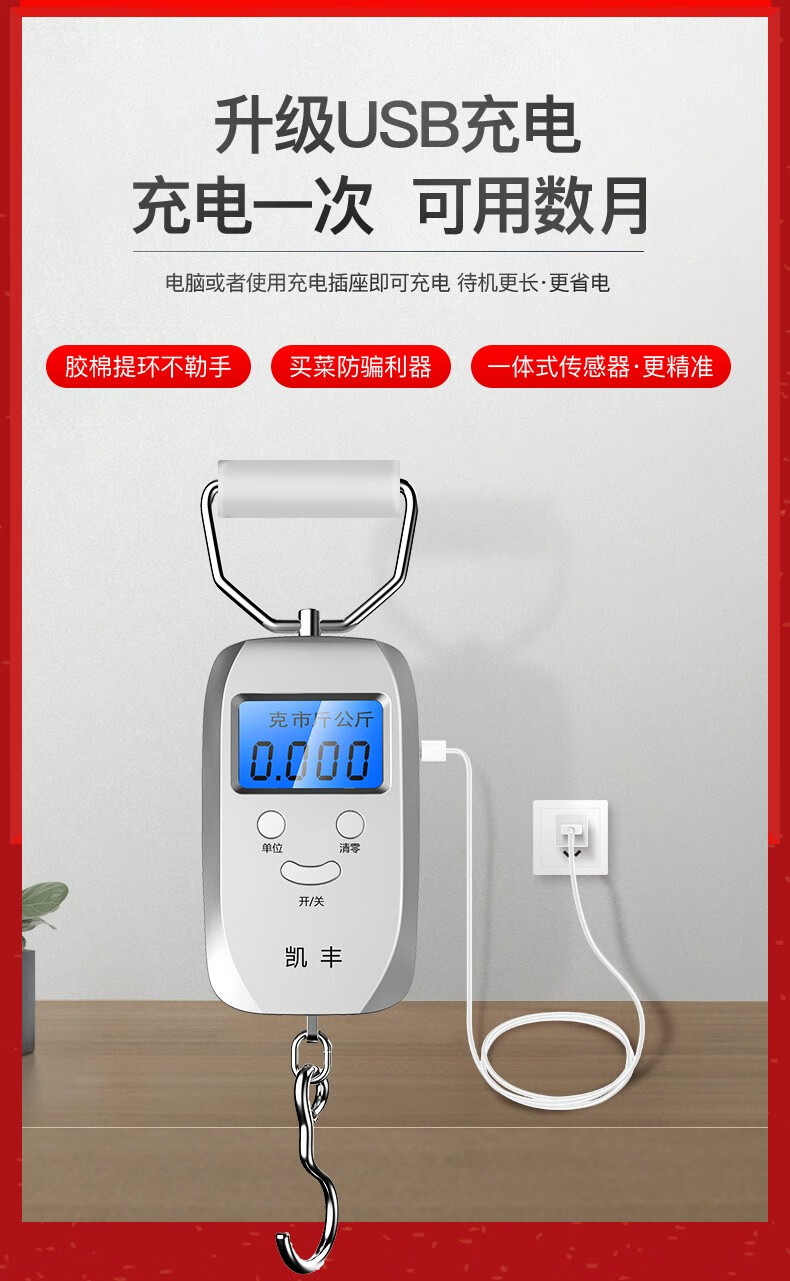 Kaifeng mini portable electronic scale 50kg portable high-precision household express scale spring scale weighing food luggage scale silver 50kg large collodion hand guard + battery