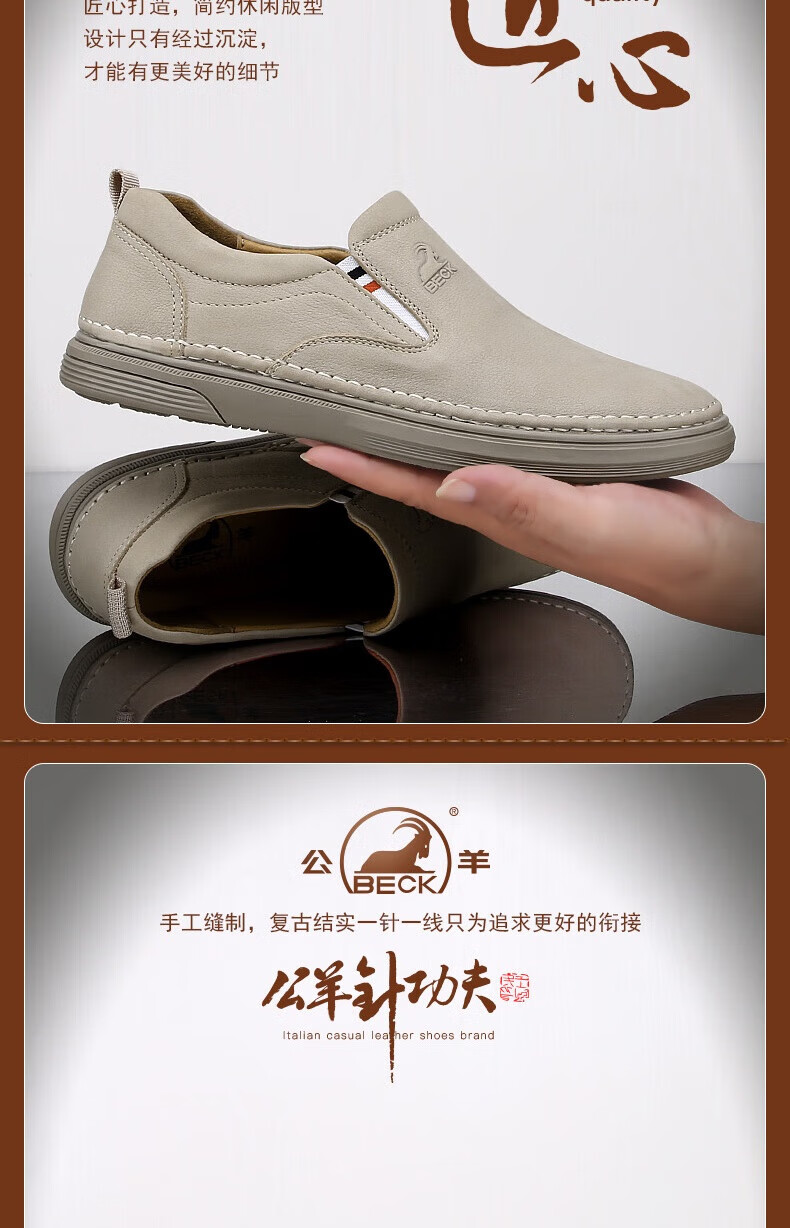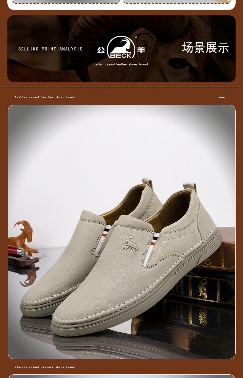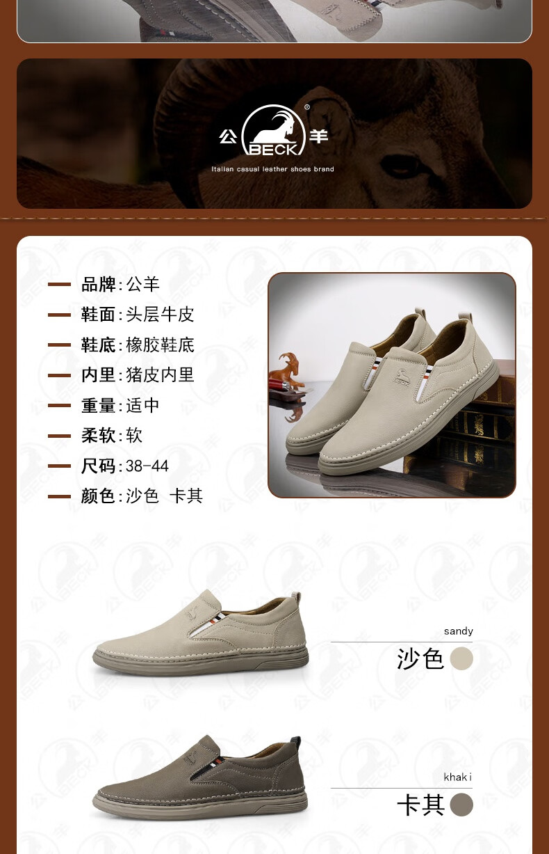 Ram leather shoes men's shoes autumn new men's business casual shoes genuine leather shoes men's soft sole wear-resistant one-leg driving shoes sand color 1519-1 41 standard leather shoe size