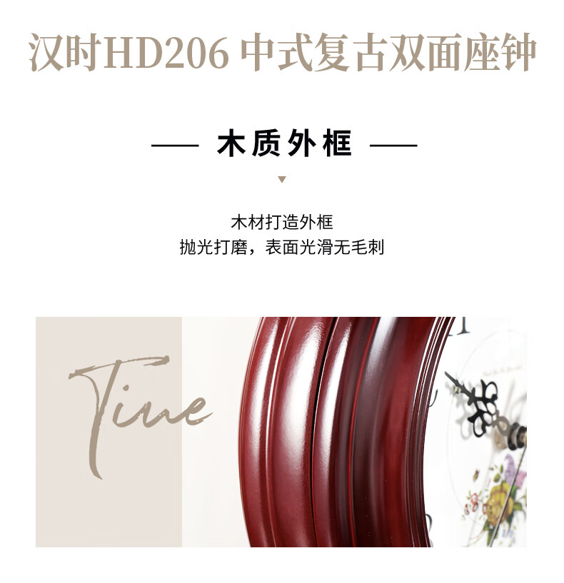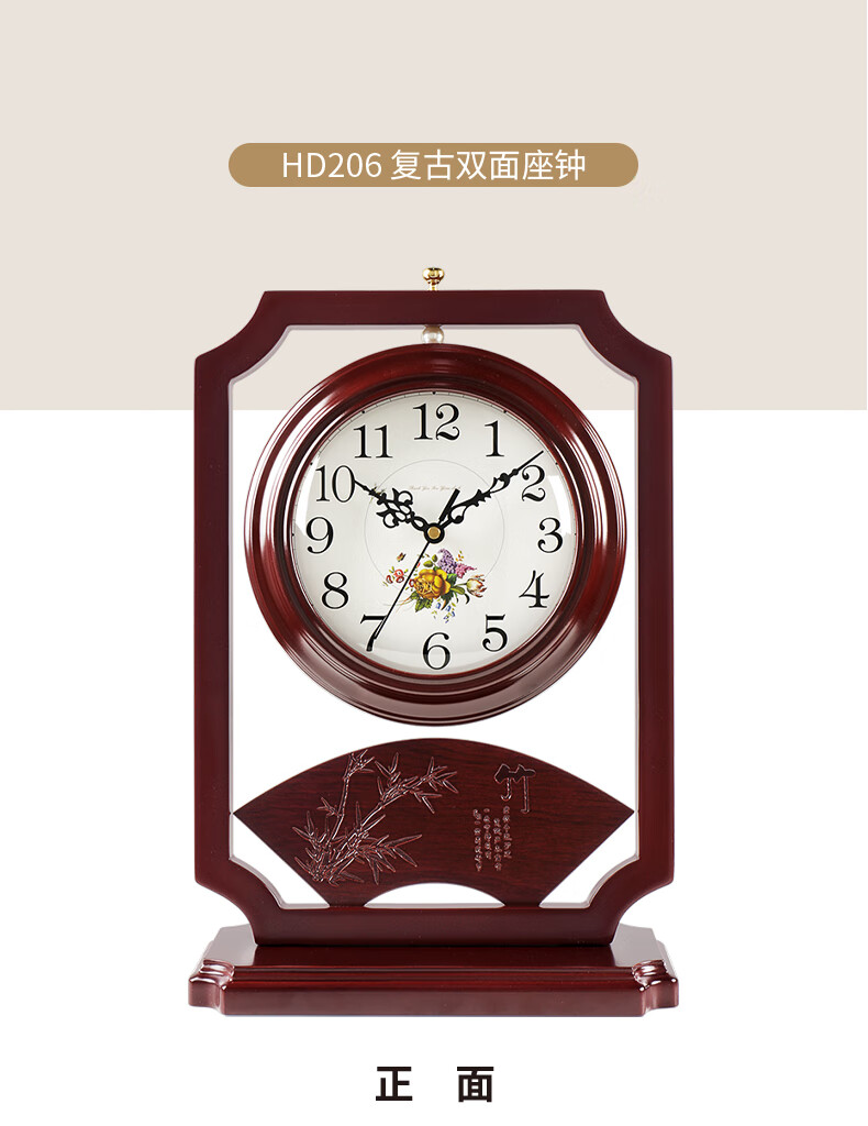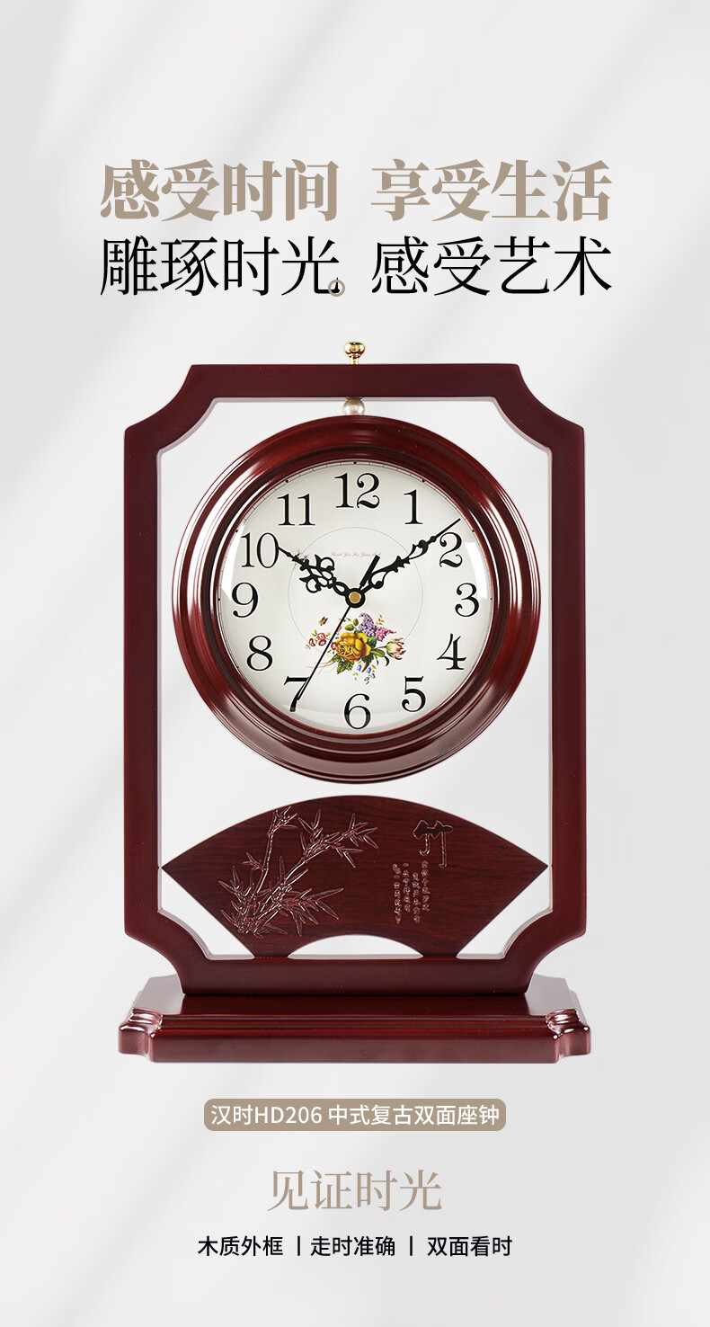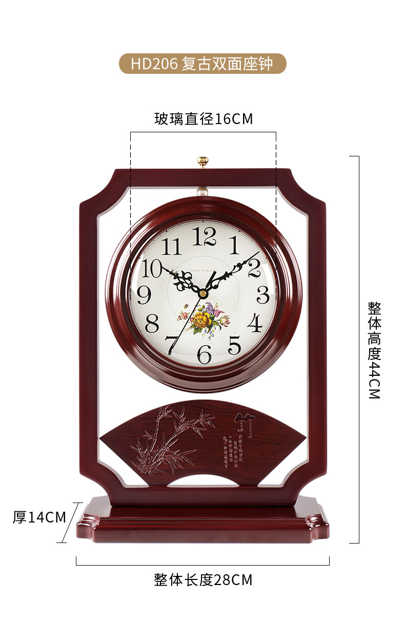 Hanshi (Hense) Chinese retro double-sided table clock living room desktop table clock two-sided clock creative quartz clock HD206 one-sided time reading