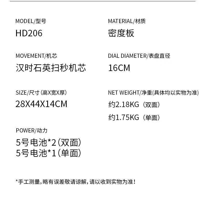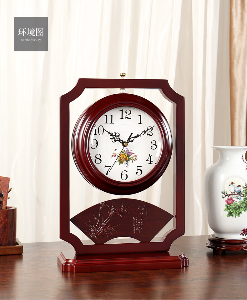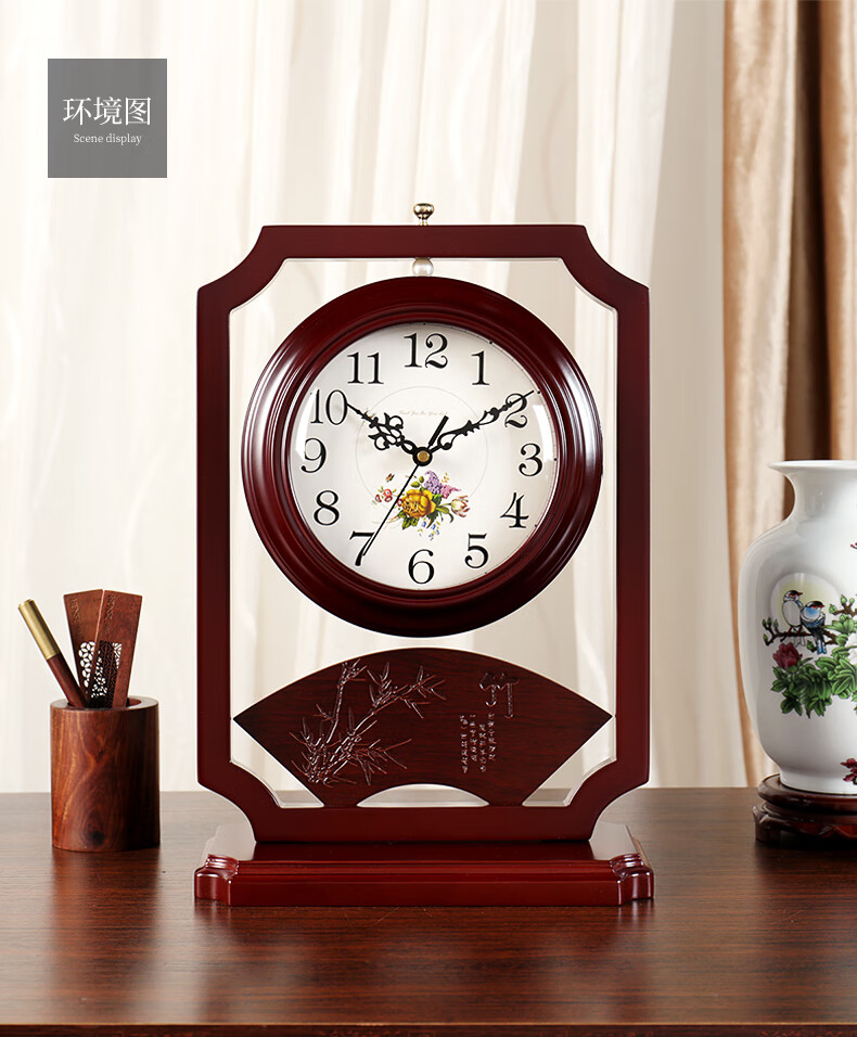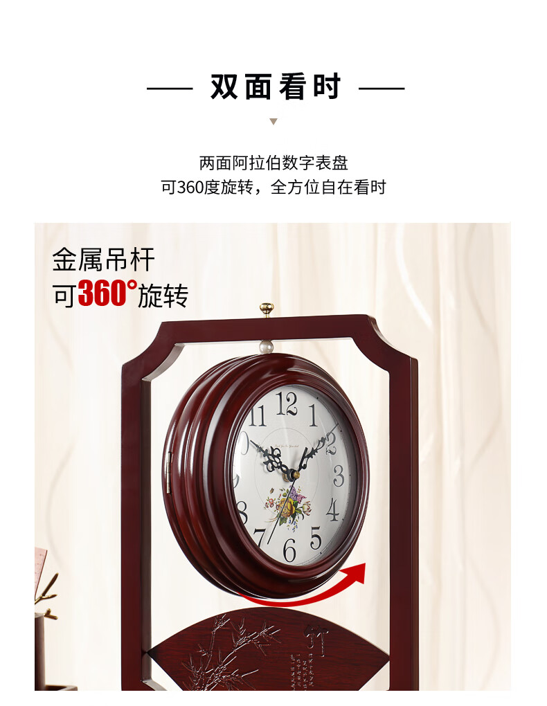 Hanshi (Hense) Chinese retro double-sided table clock living room desktop table clock two-sided clock creative quartz clock HD206 one-sided time reading
