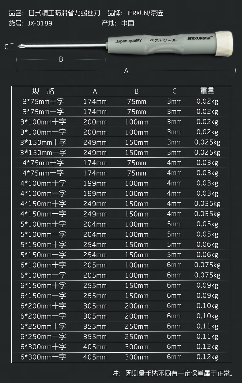 JERXUN screwdriver cross-shaped set with magnetic screwdriver plum blossom small screwdriver electrician screwdriver household repair tools 3*75MM -