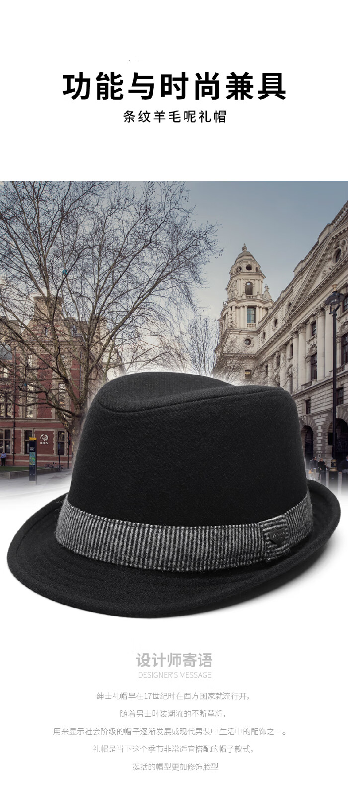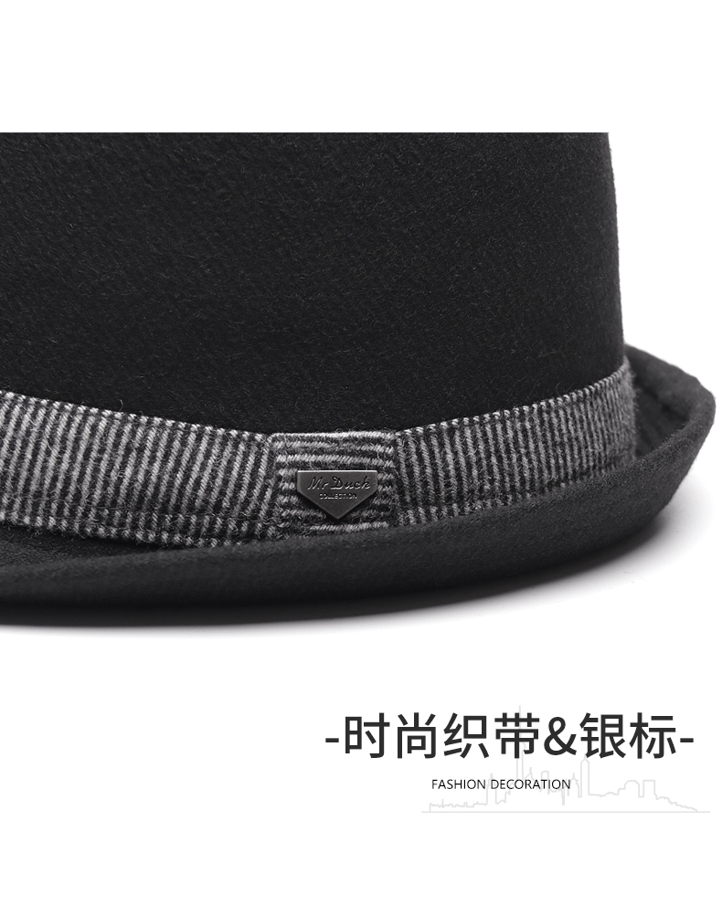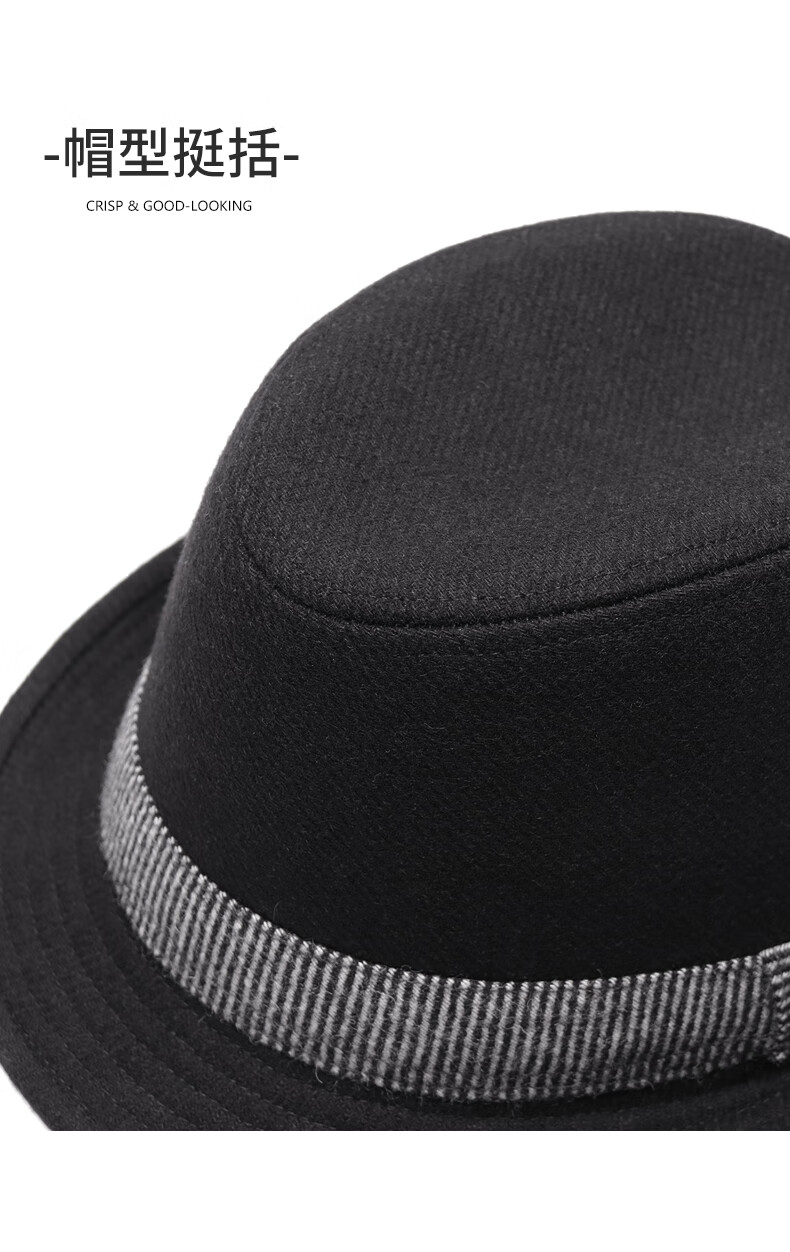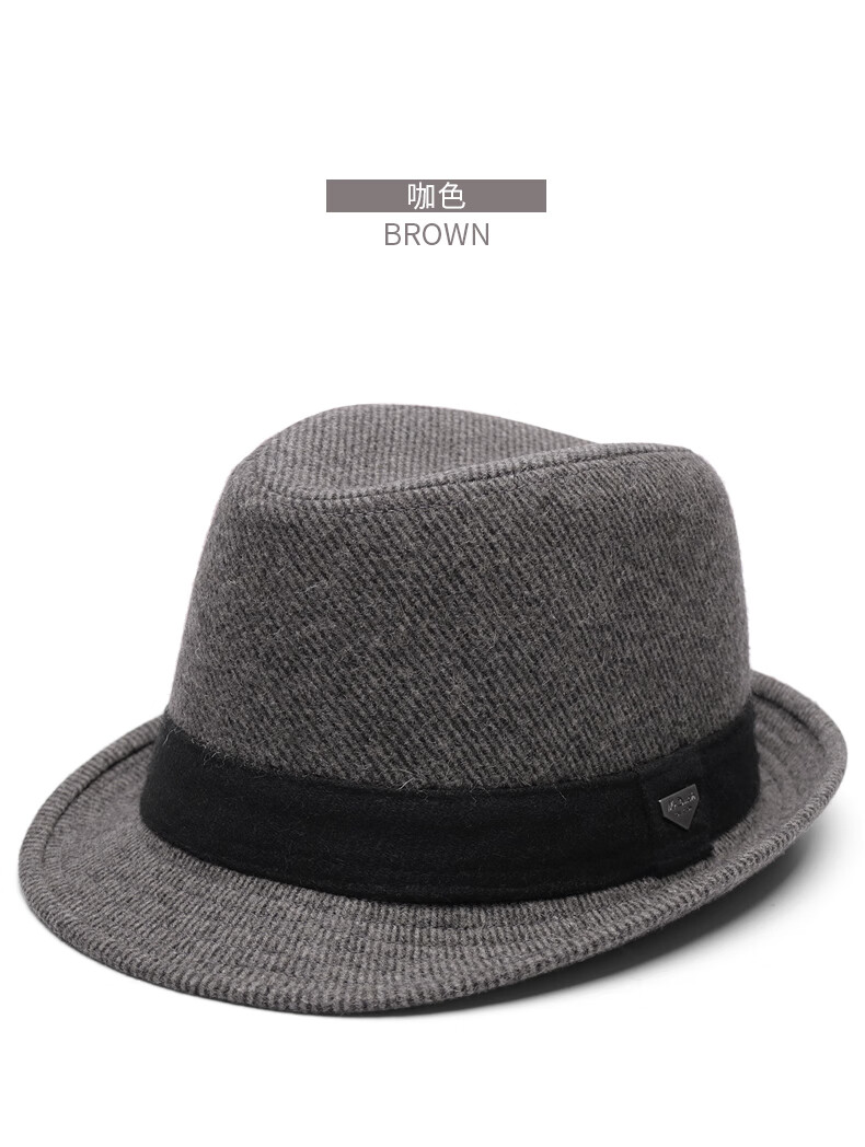 Rogosky counter trendy brand hat Shanghai Tang British retro woolen hat men's large size face-showing jazz hat for younger fathers and elders light luxury original twill wool brown L normal size (58-60cm)