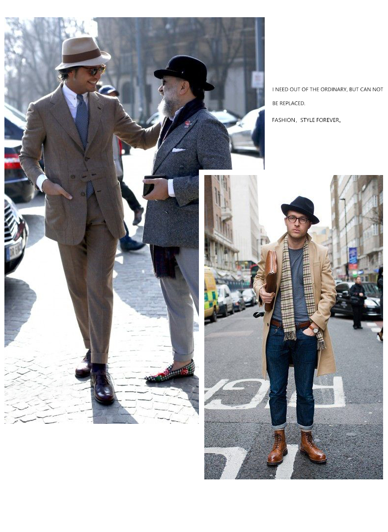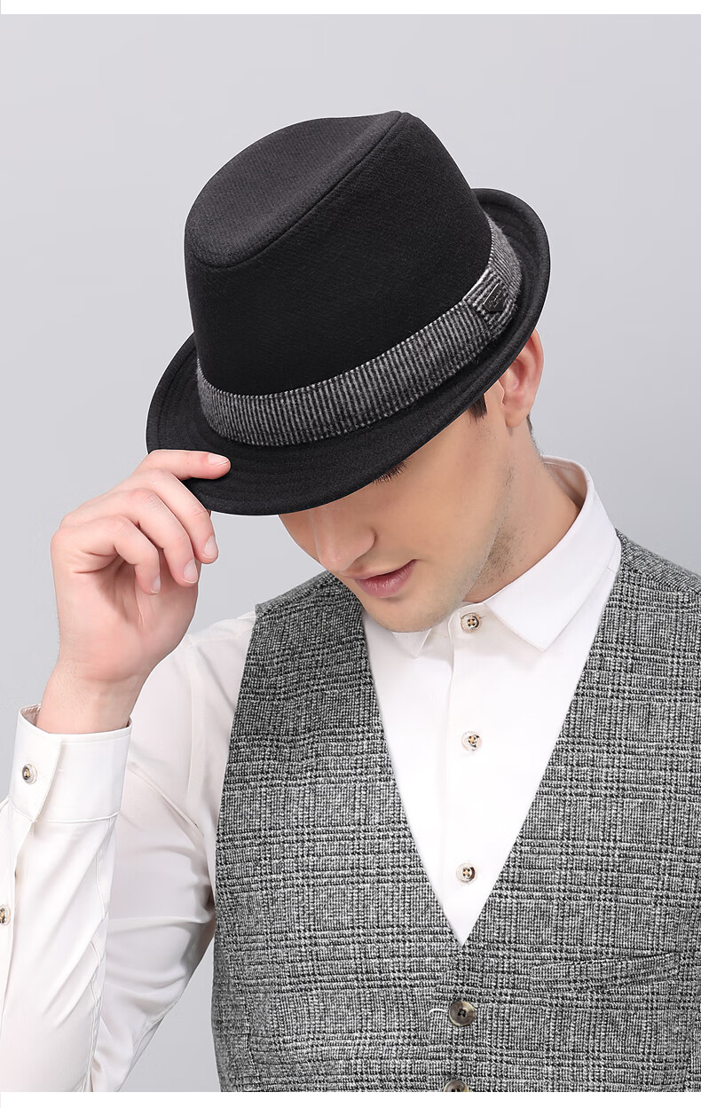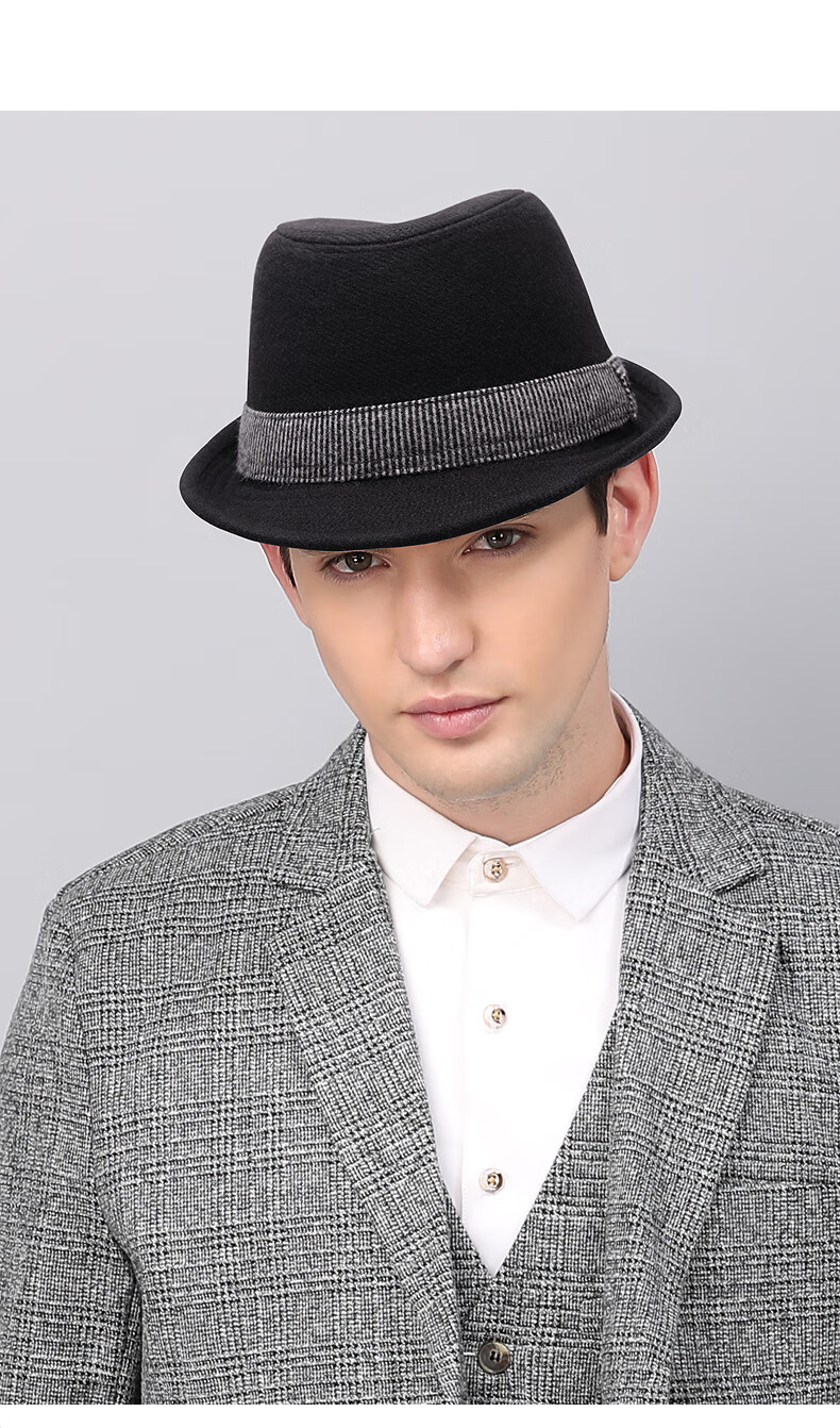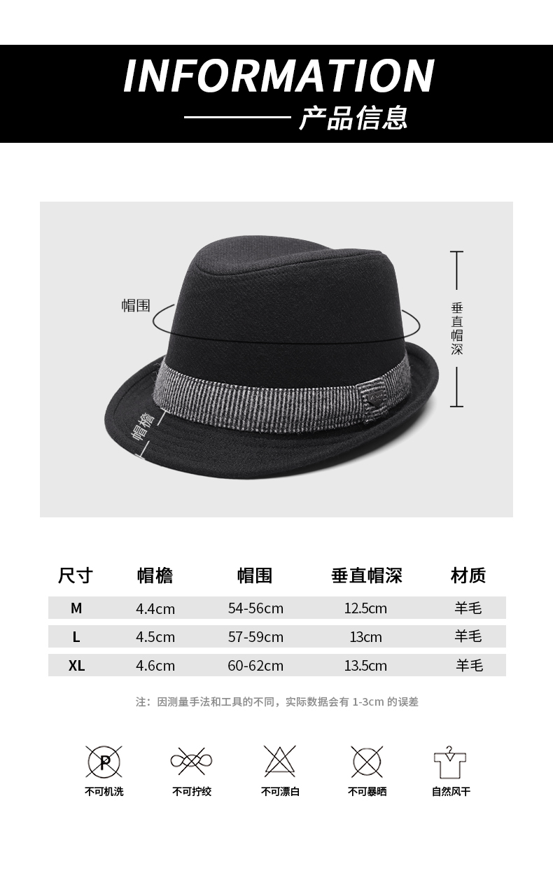 Rogosky counter trendy brand hat Shanghai Tang British retro woolen hat men's large size face-showing jazz hat for younger fathers and elders light luxury original twill wool brown L normal size (58-60cm)