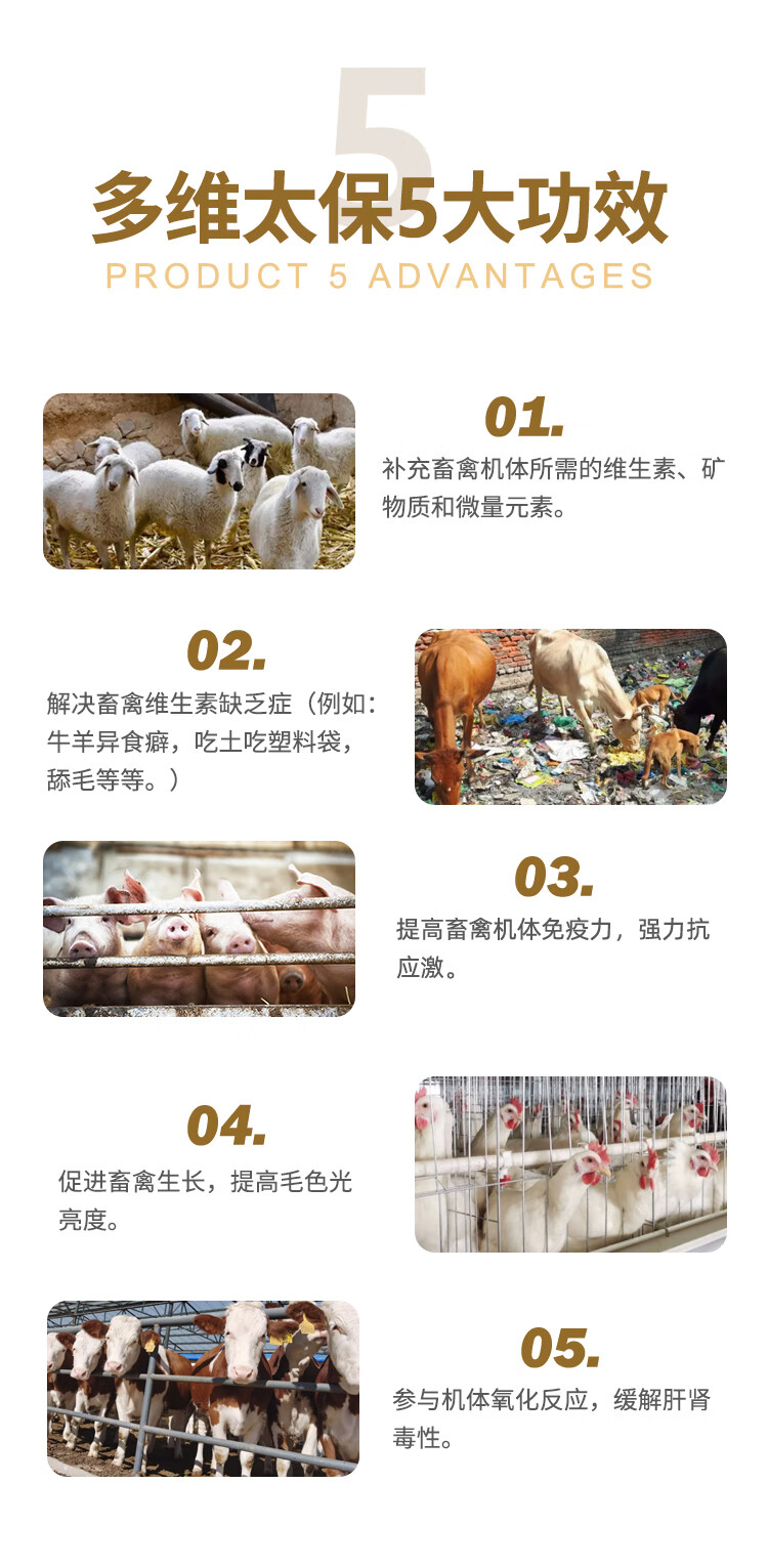 Livestock and small animal husbandry Multivitamin for livestock and small animal husbandry to supplement pigs, cattle and sheep with vitamins to improve immunity feed additive 500g/bag
