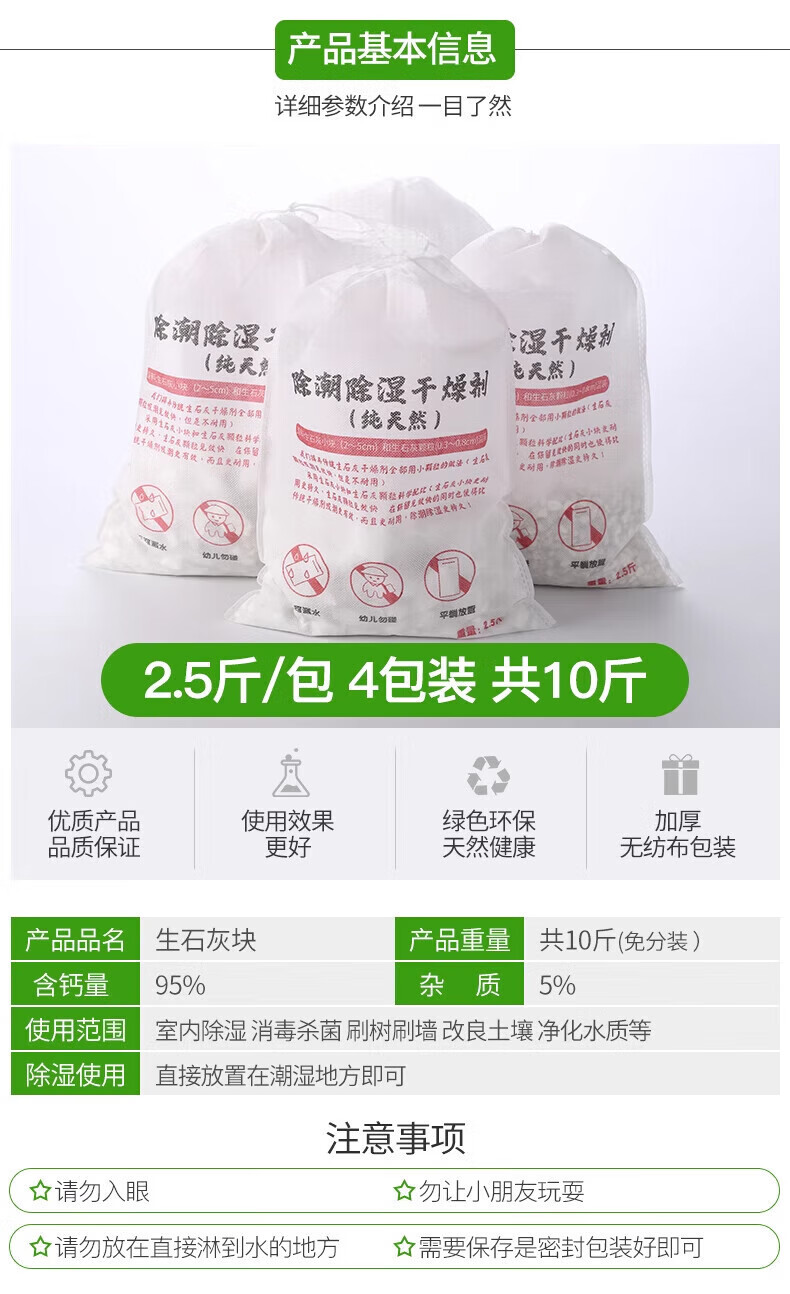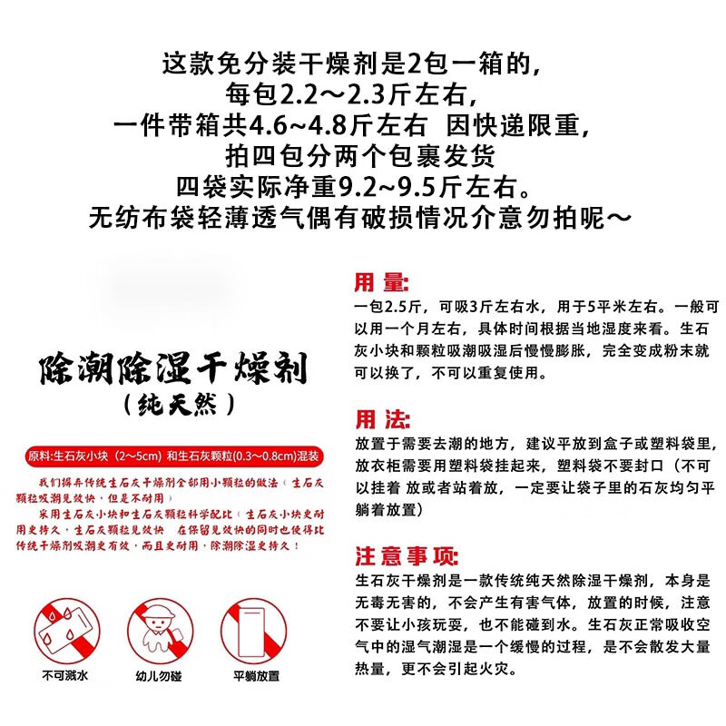 Jing'anmei quicklime desiccant moisture-absorbing indoor room home basement warehouse first floor moisture-proof and mildew-proof bag dehumidification 4 bags