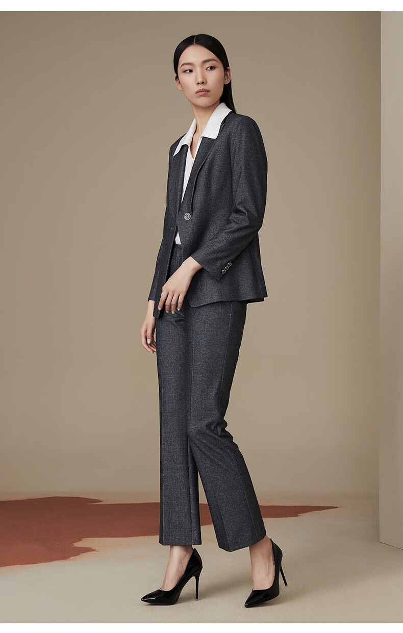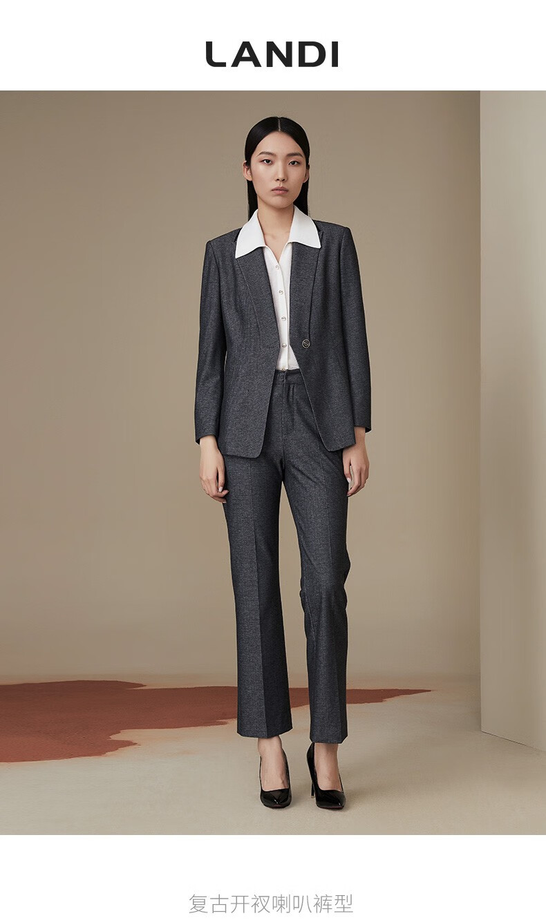 LANDI is off the shelves and back in stock for autumn new style dark gray slim fit slightly flared suit pants for women, high waist formal pants, dark gray L