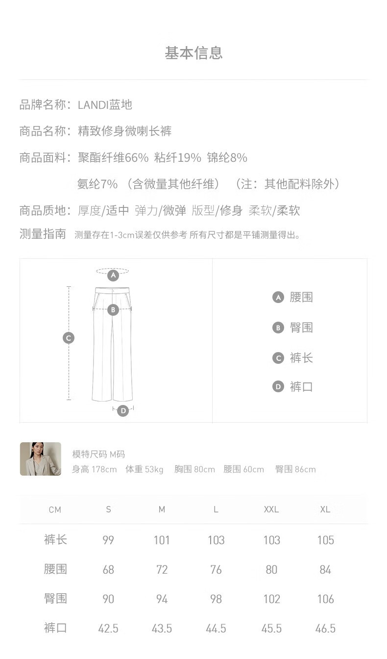 Outseam (cm) 99 cm 101.5 cm 104 cm 106.5 cm 109 cm