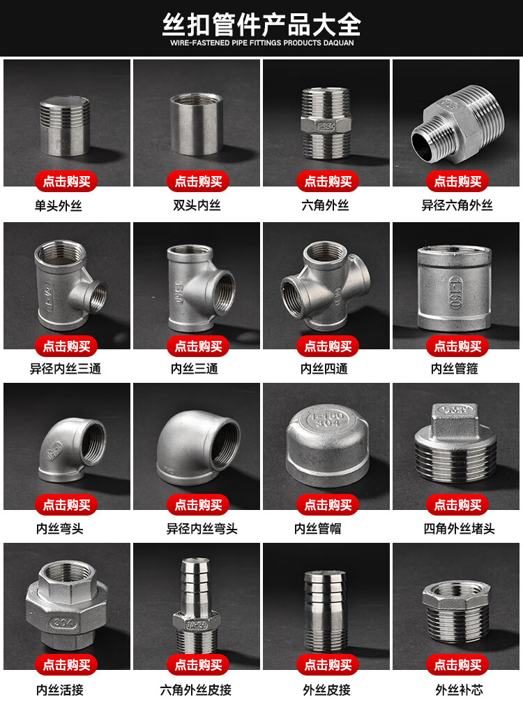 304 stainless steel inner wire tee precision cast internal thread equal diameter 4 minutes 6 minutes 1 inch water pipe fittings straight through direct joint 304 material 1 inch = DN25