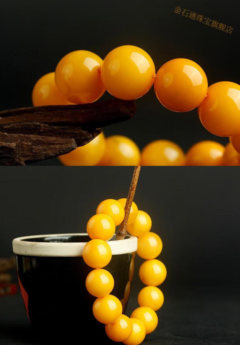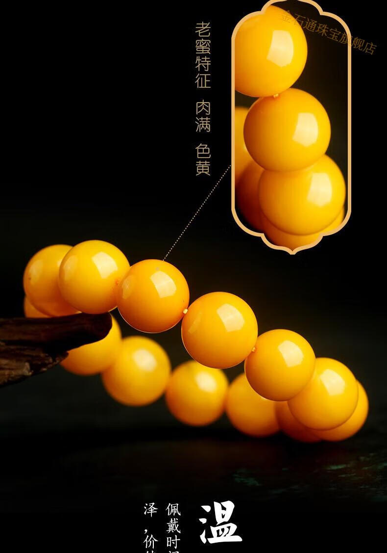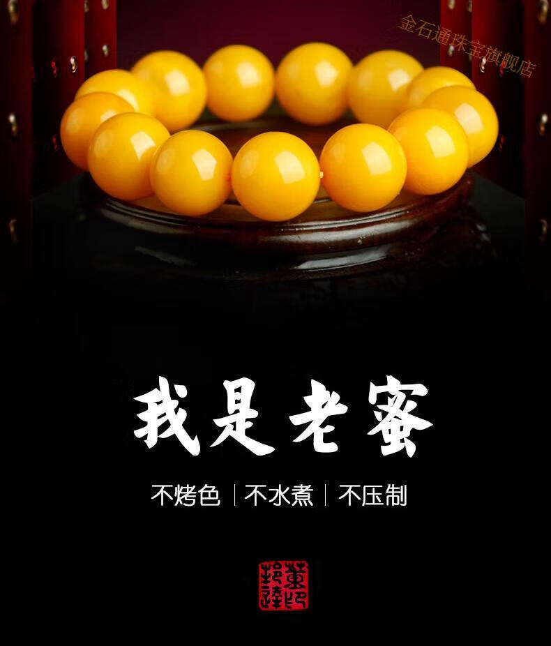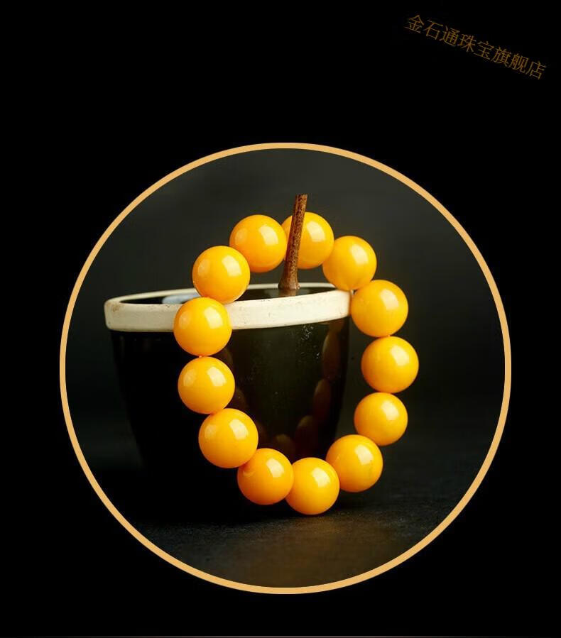Jinshitong Beeswax Bracelet Natural Baltic Chicken Fat Yellow Old Honey Generous Men's Amber Bracelet (Collection Grade) Large Size 15mm