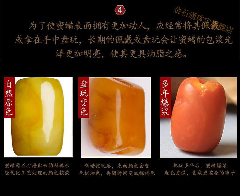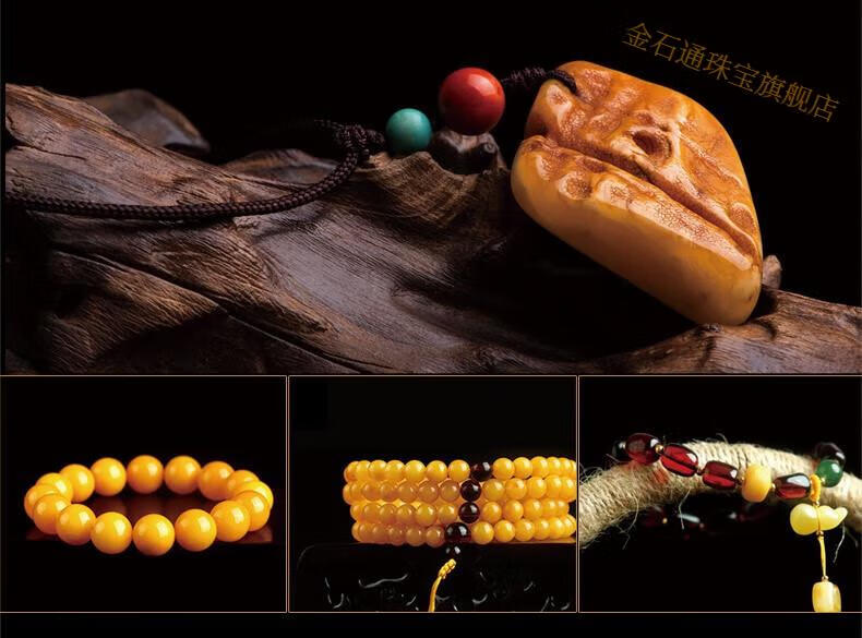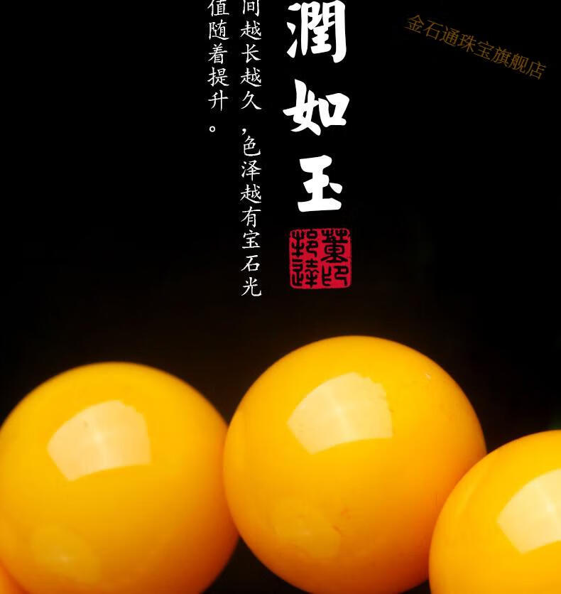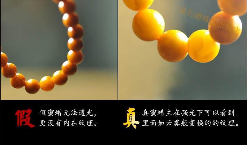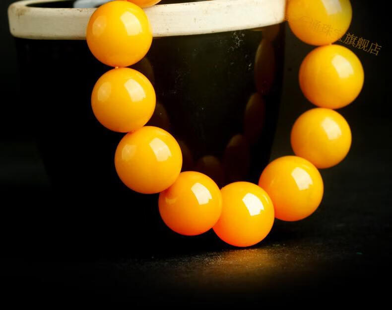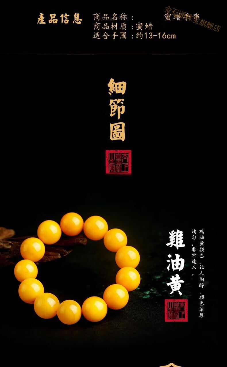Jinshitong Beeswax Bracelet Natural Baltic Chicken Fat Yellow Old Honey Generous Men's Amber Bracelet (Collection Grade) Large Size 15mm