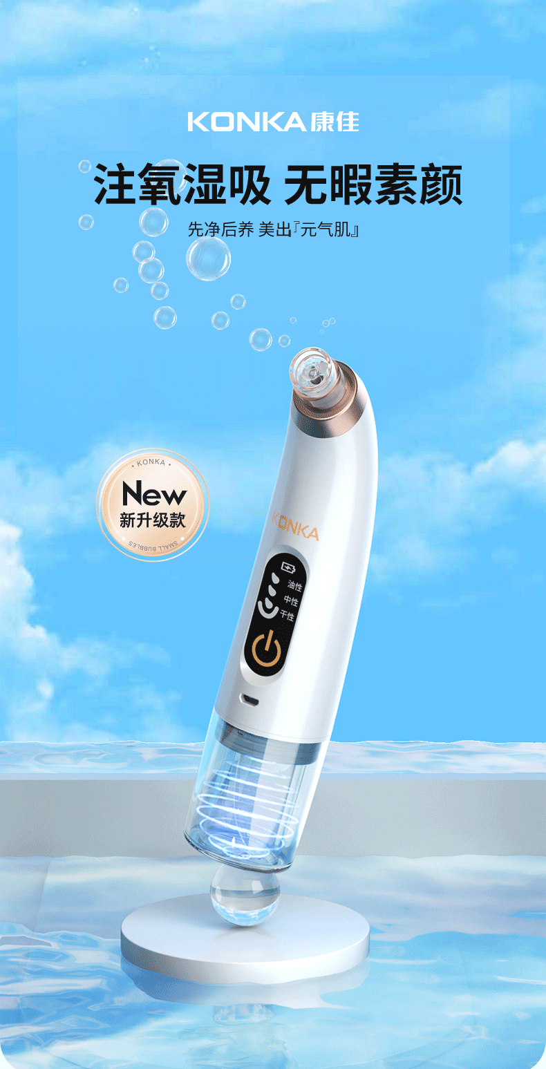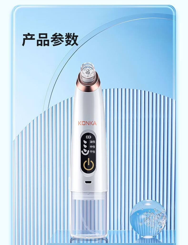 KONKA blackhead extractor, blackhead suction instrument, cleaning artifact, facial small bubble cleaning and beauty instrument, pore and acne cleaner for men and women, birthday gift for boyfriend and girlfriend, fully equipped - small bubble cleaner + essence water + sparkling water + 6 kinds of suction tips