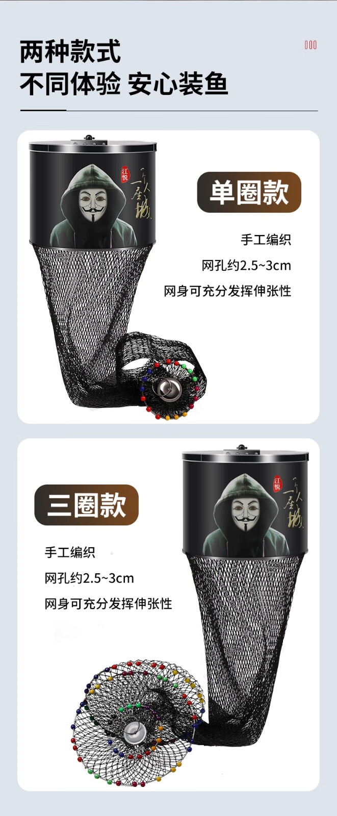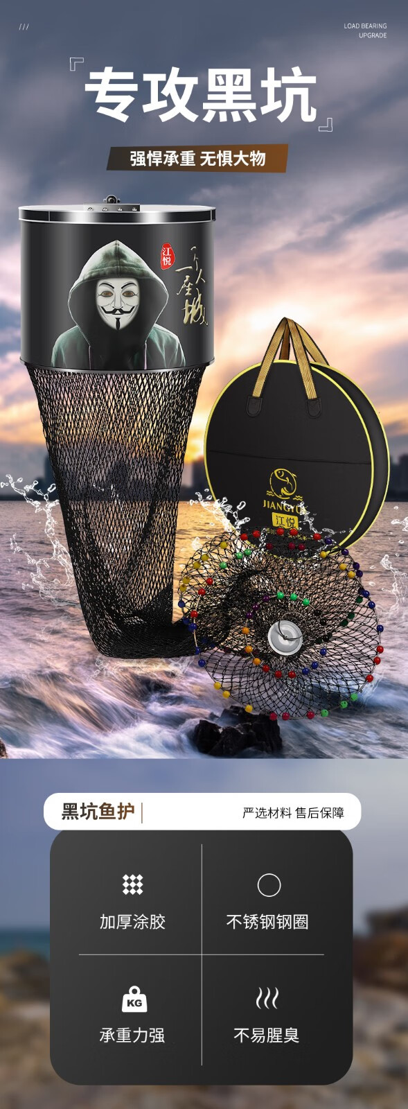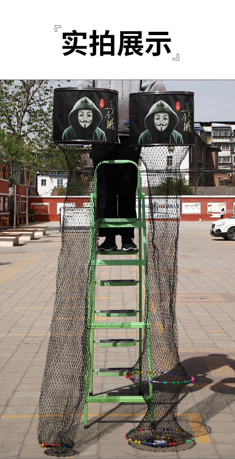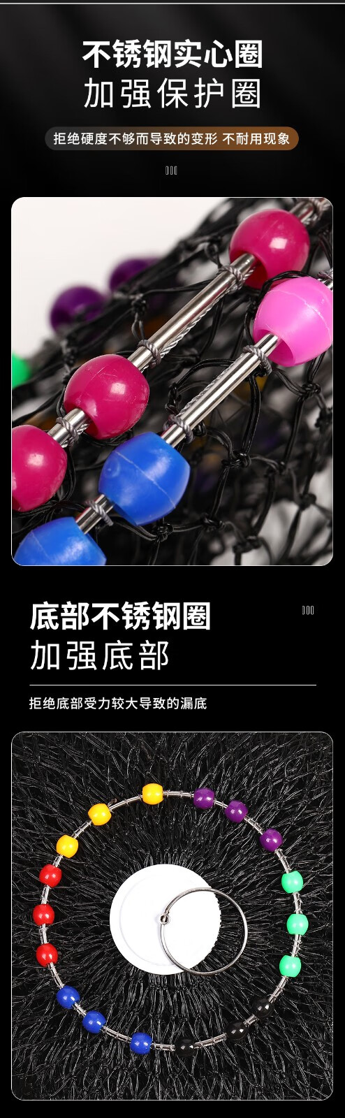 Jiang Yue Fish Protection Dali Horse Line Black Pit Fish Protection Net Fishing Net Pocket Racquet Line Multi-bead Stainless Steel Ring Fishing Protection Live Fish Bag Black Double Line 40*2.5 Meters Single Circle Plus Pack