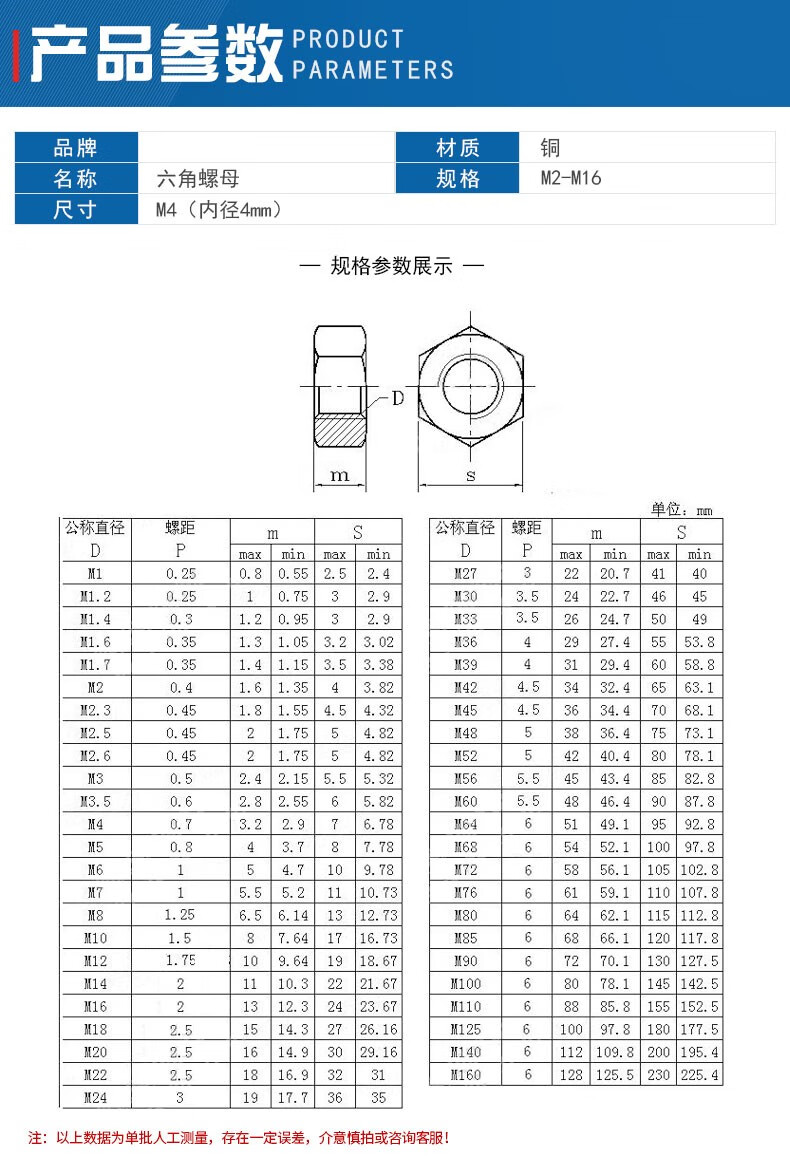 Easy hexagonal copper nut copper nut brass screw cap national standard M1.6M2M3M4M5M6M8M10M12M14M16 M16 1 piece