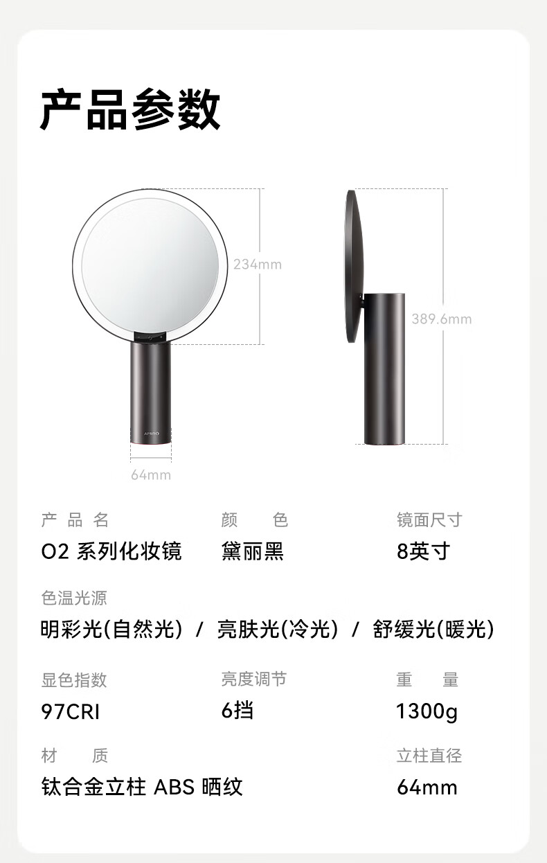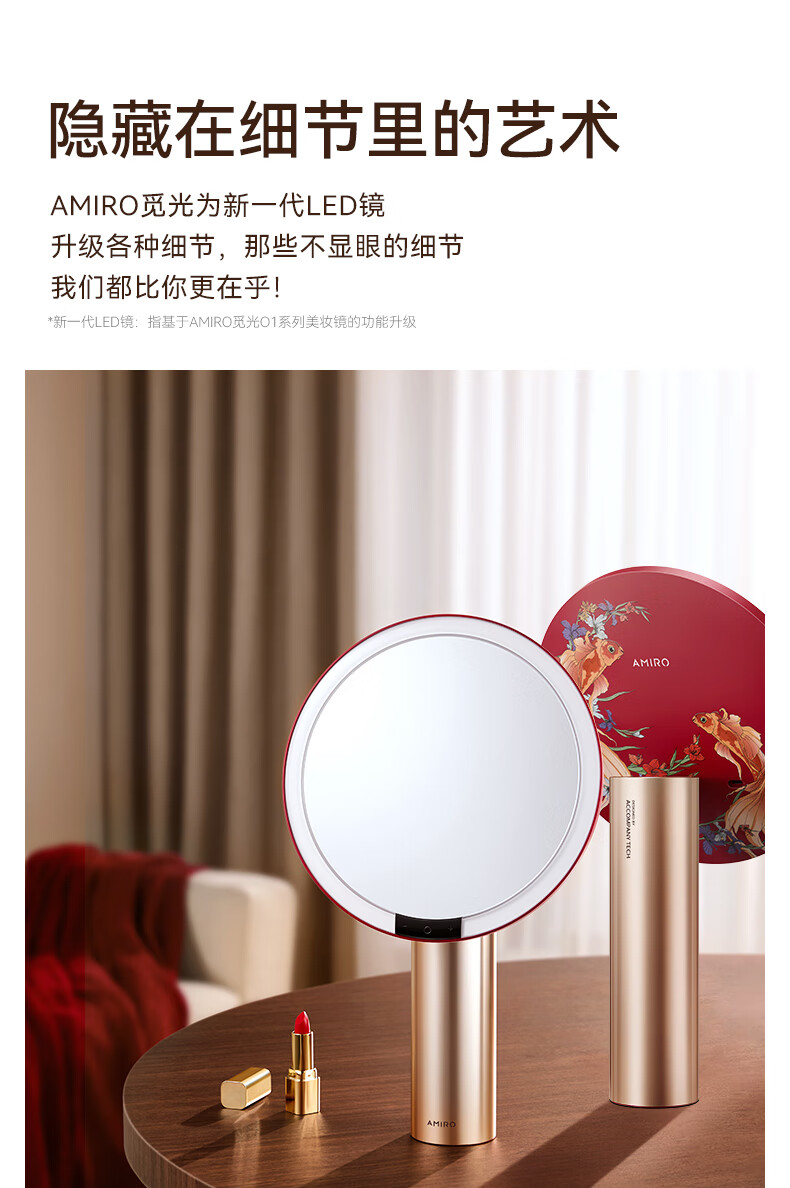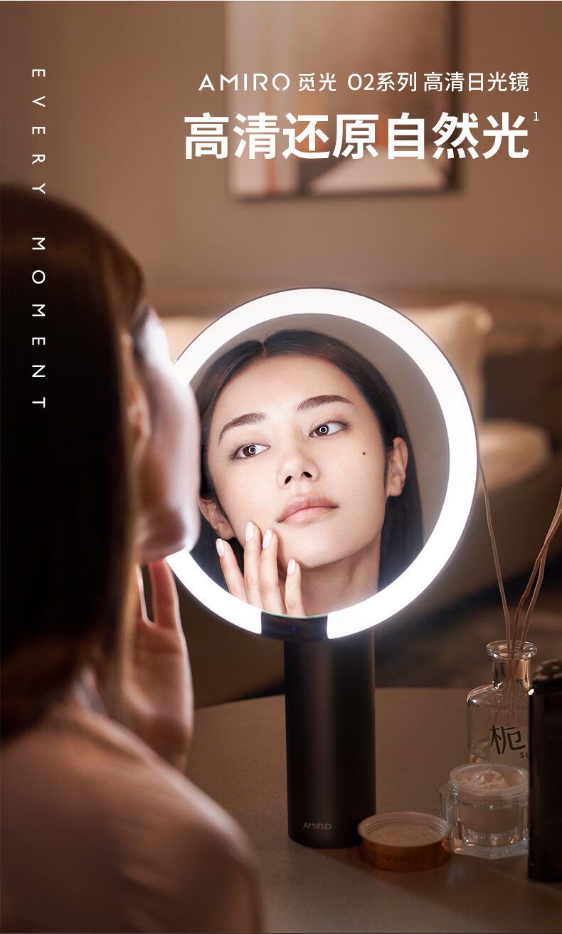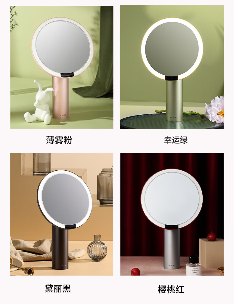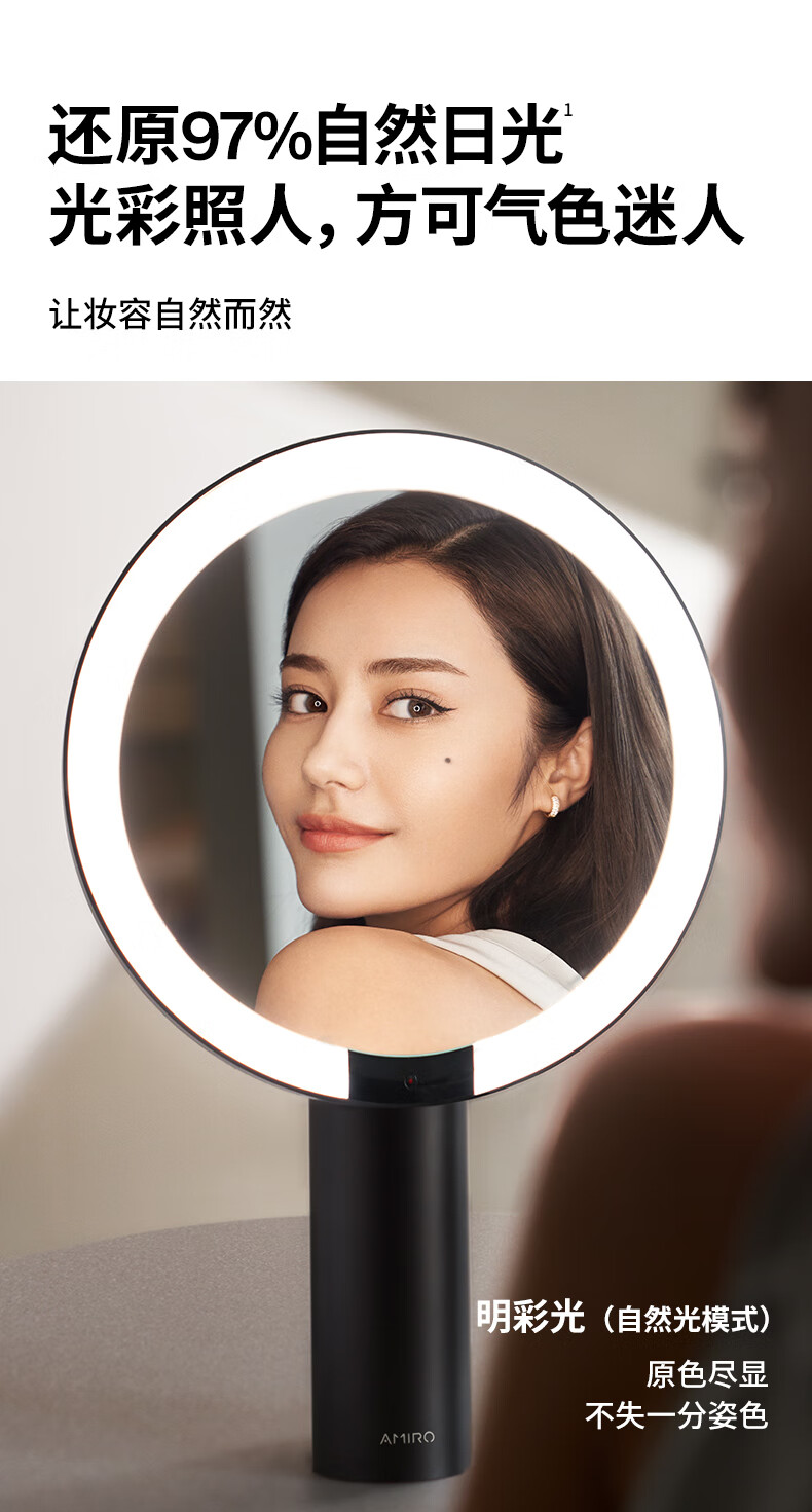 AMIRO Makeup Mirror with Light Led Smart Makeup Mirror Desktop Makeup Mirror HD Fill-in Light Mirror O2 New Year Gift for Girls O2 Small Black Mirror