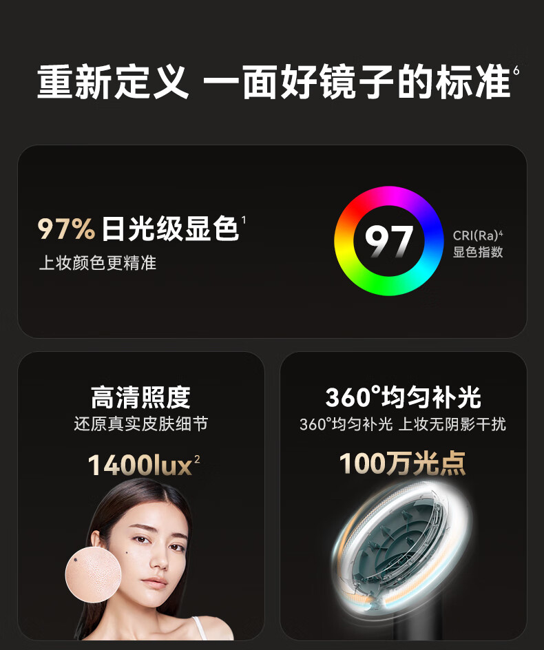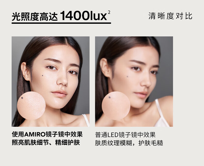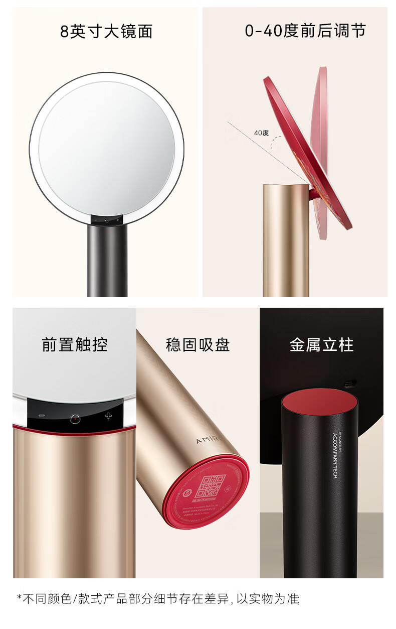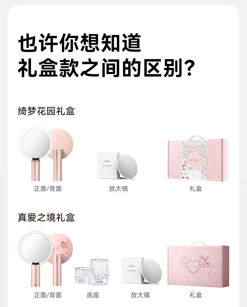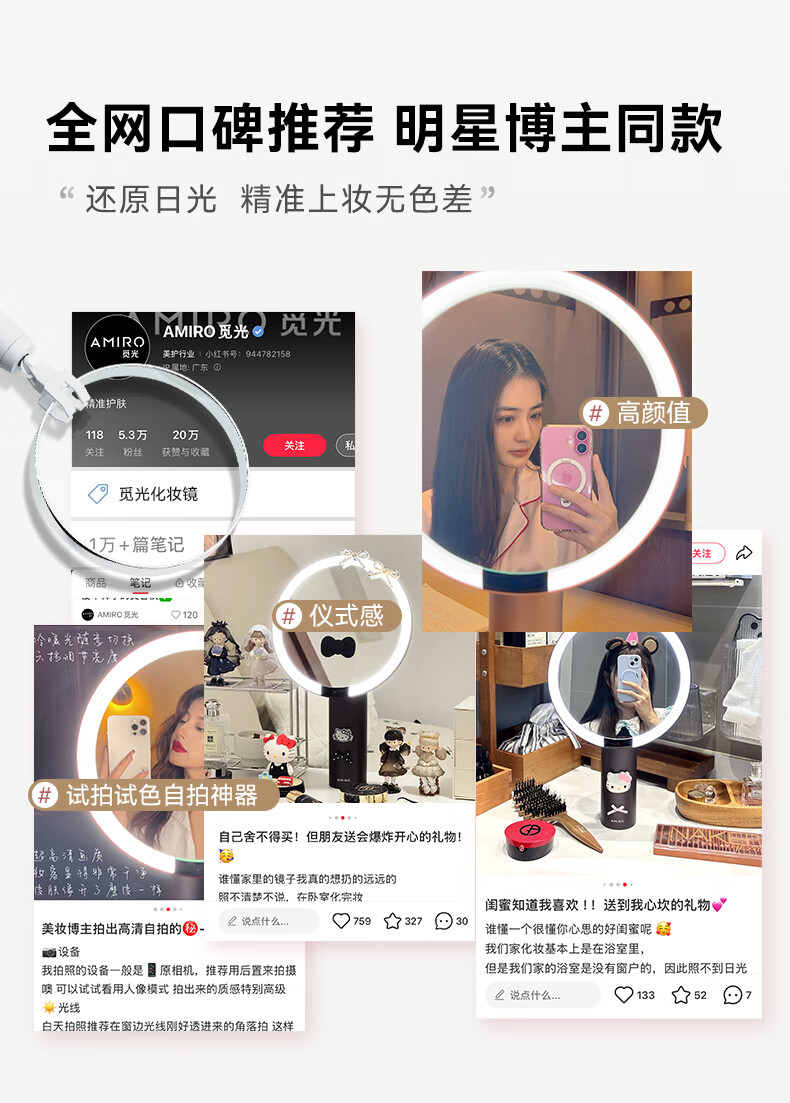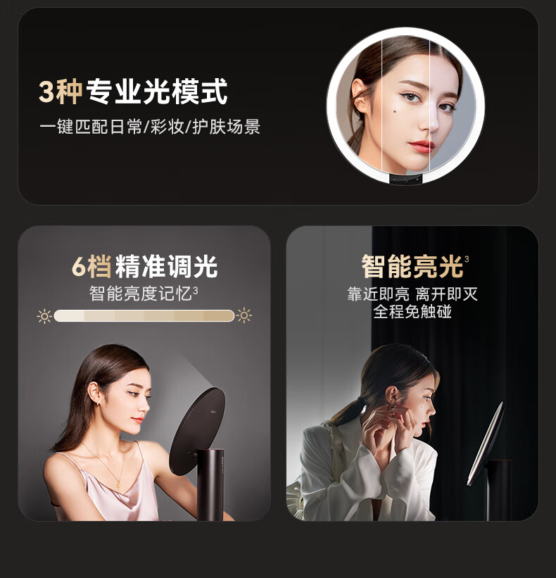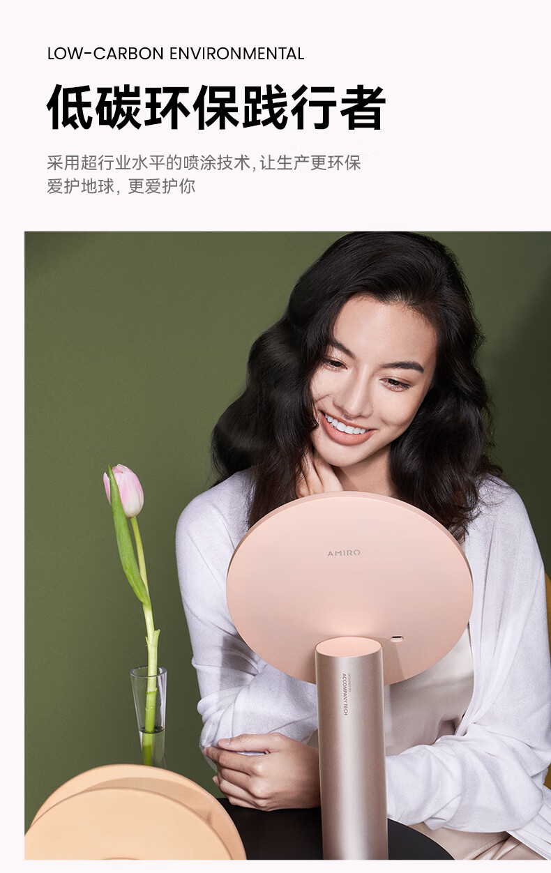 AMIRO Makeup Mirror with Light Led Smart Makeup Mirror Desktop Makeup Mirror HD Fill-in Light Mirror O2 New Year Gift for Girls O2 Small Black Mirror