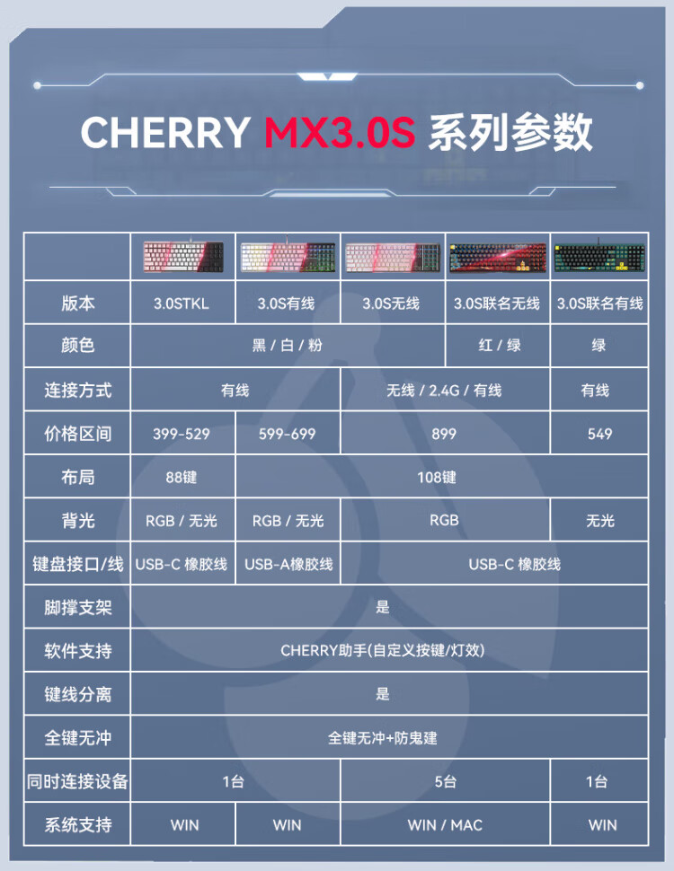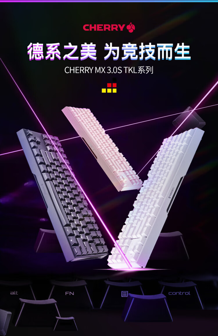 CHERRY Cherry MX 3.0S TKL Mechanical Keyboard Wired Gaming Esports Keyboard Office Computer Keyboard Aluminum Alloy Shell Side Engraved Keycap No Steel Plate Structure 87 Black RGB Light Red Axis