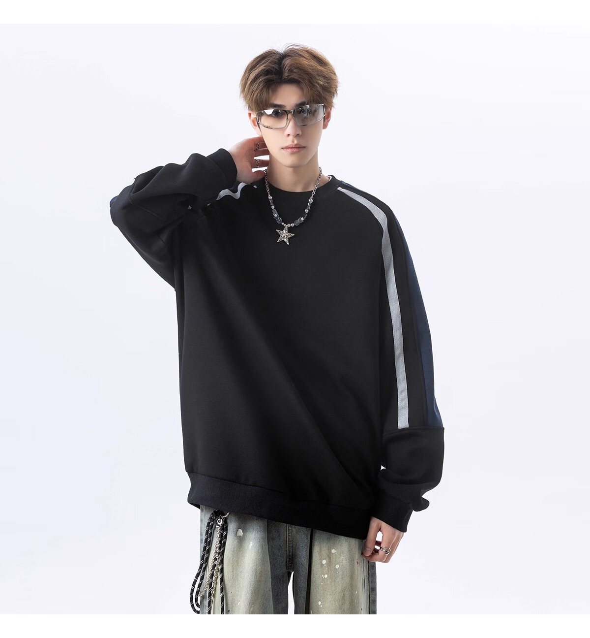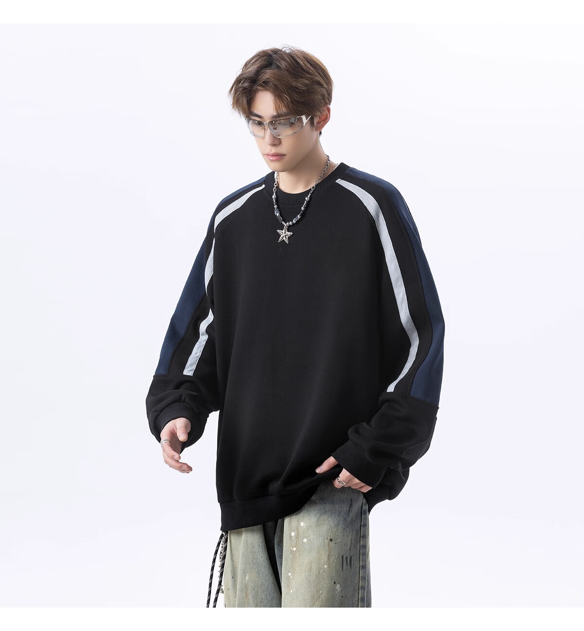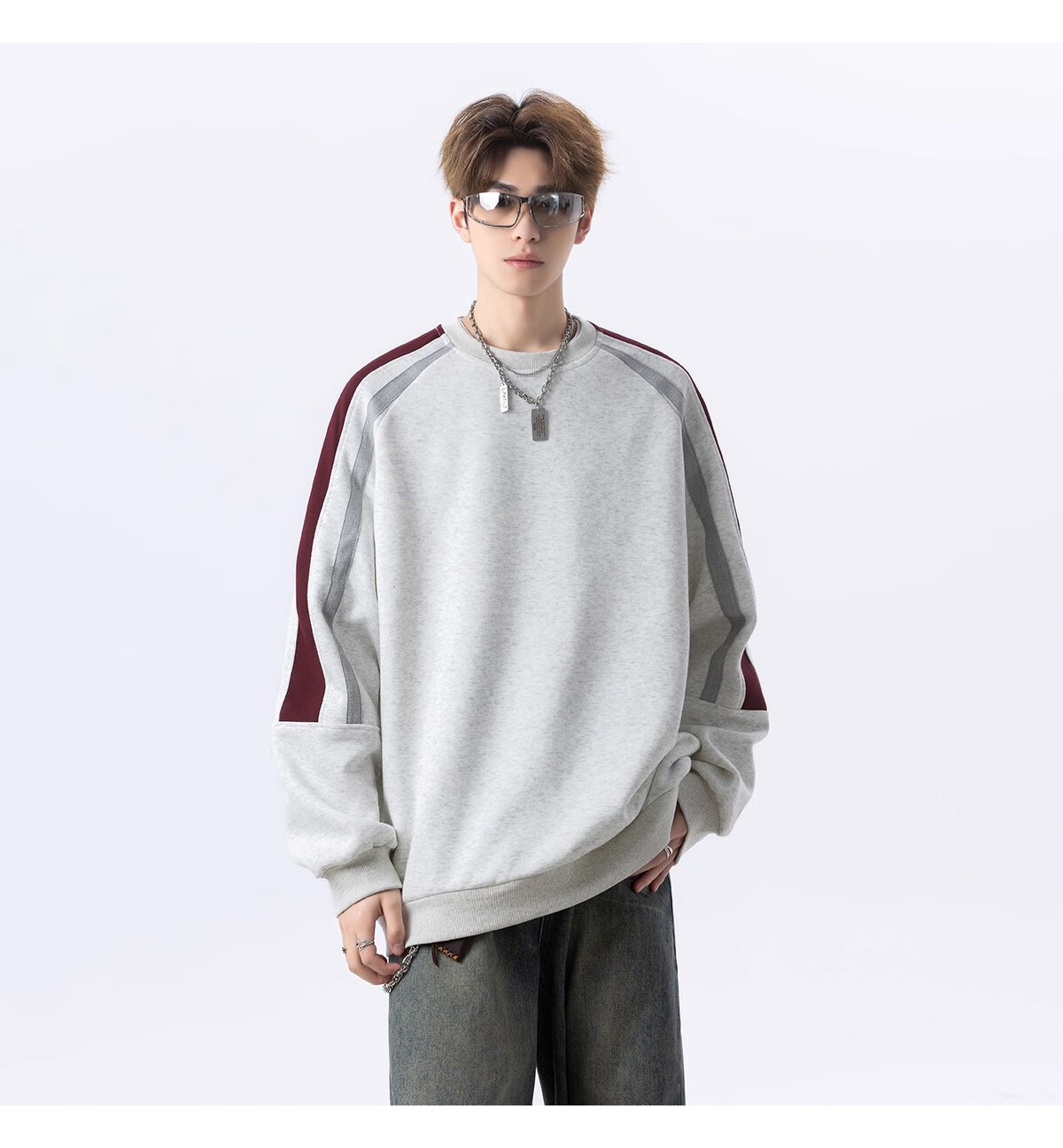 OEMG Hoodless Round Neck Sweatshirt Men's Spring, Autumn and Winter New American Style Long Sleeve Couple Couple White Gray High Quality XL Recommended 110-130Jin Jin is equal to 0.5 kg
