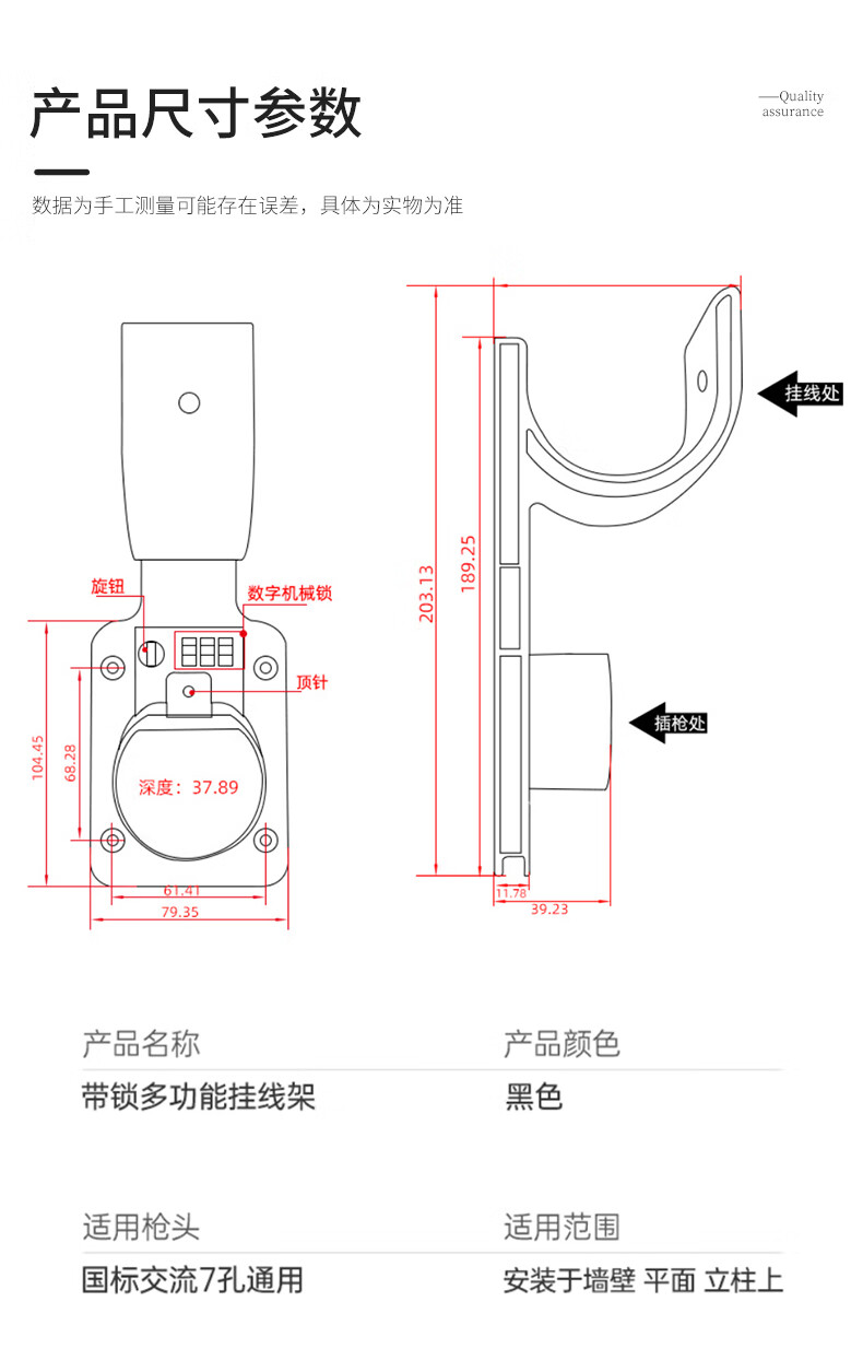 MOTENIO MOTENIO electric vehicle charging pile gun head lock hanging wire hook with password lock anti-theft lock gun rack