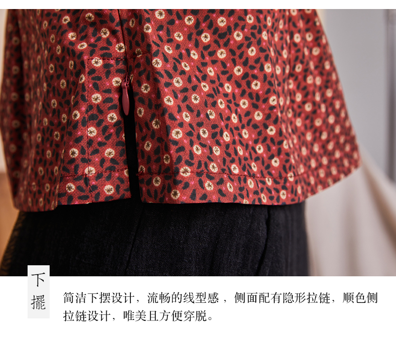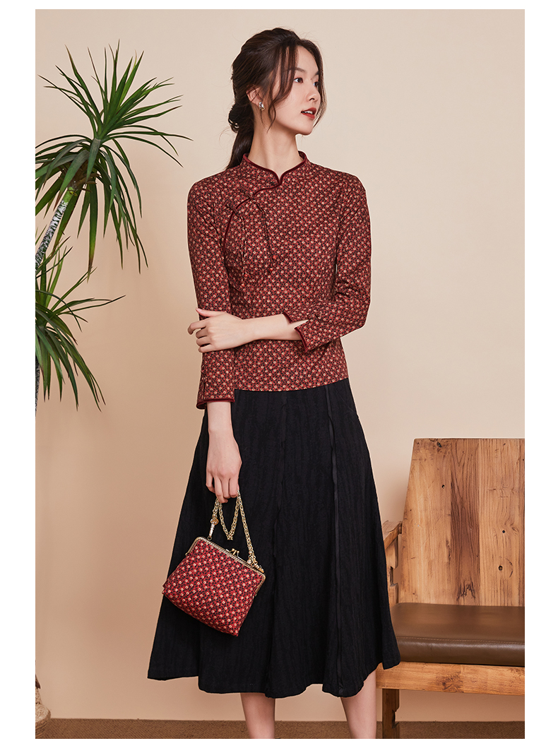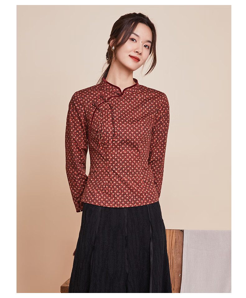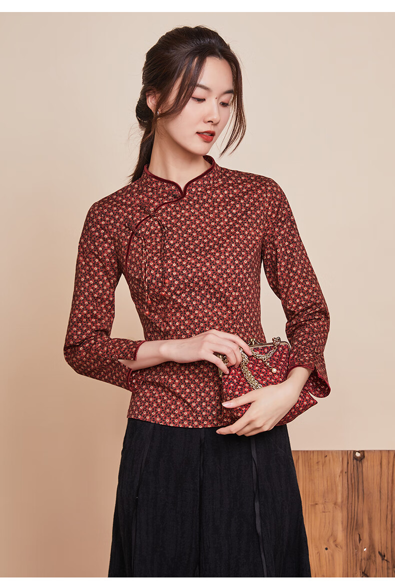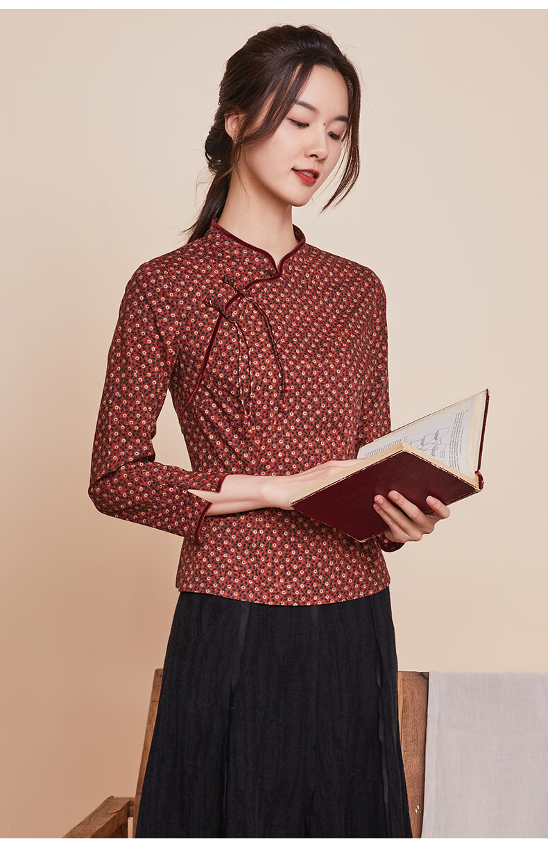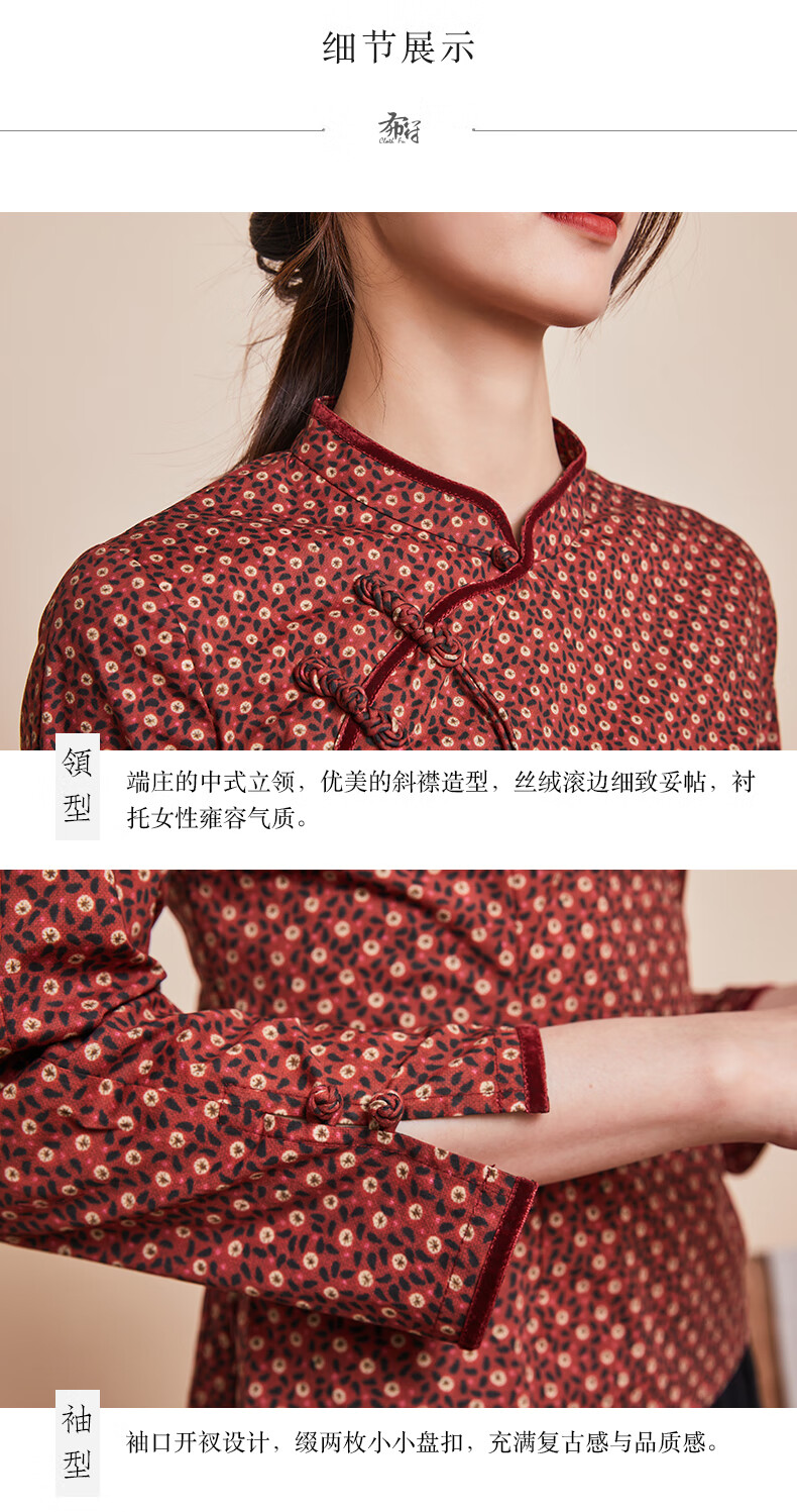Bu Fu Autumn New Original Retro Print Fashion Republic of China Improved Chinese Tang Suit Cheongsam Top Women Chinese Red M