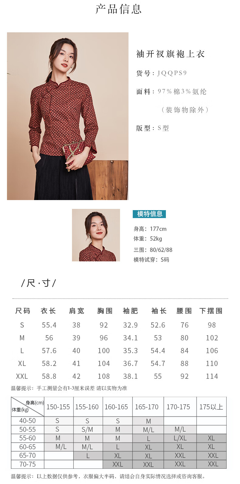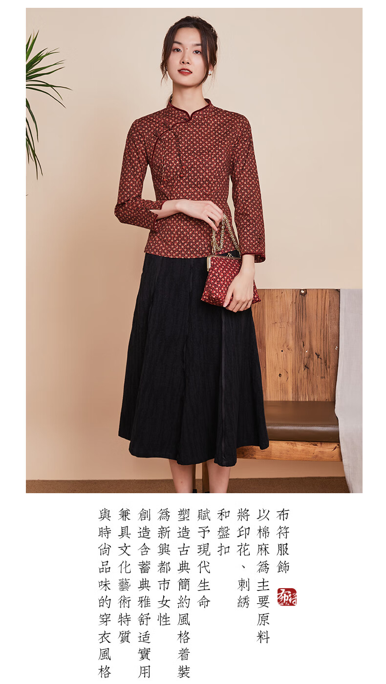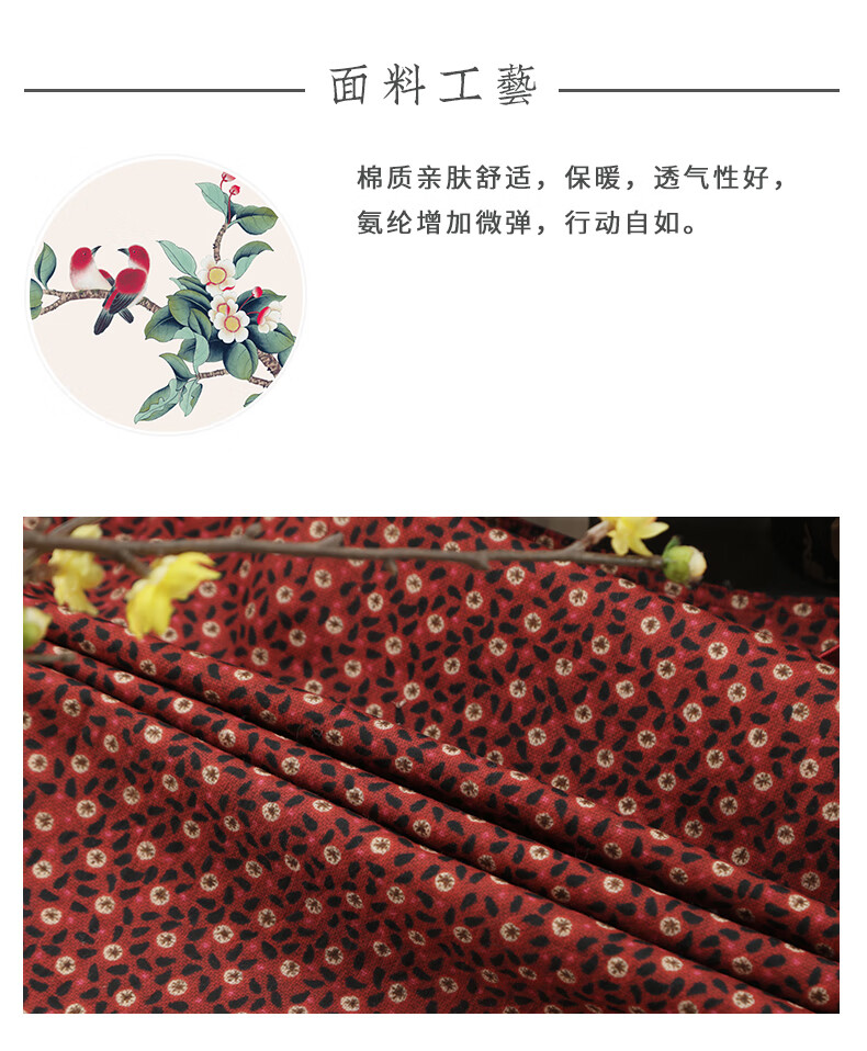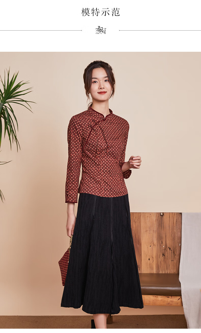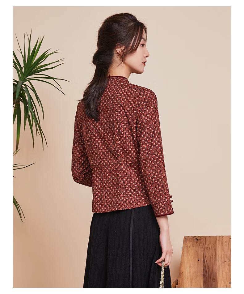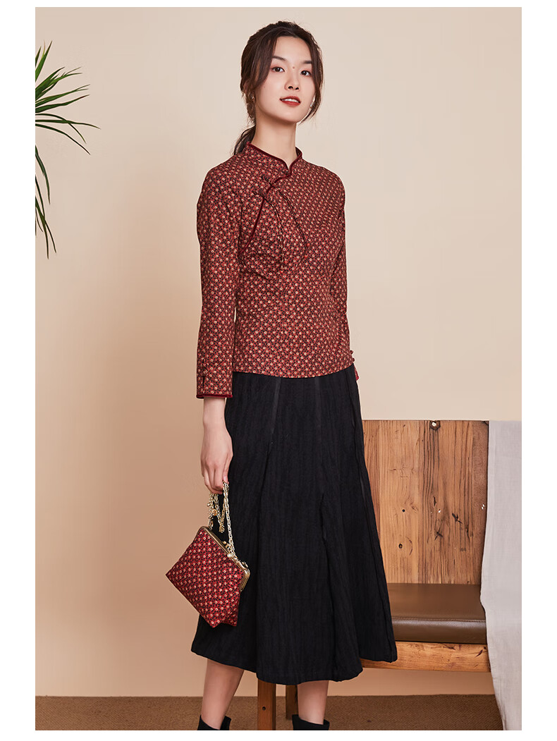 Bu Fu Autumn New Original Retro Print Fashion Republic of China Improved Chinese Tang Suit Cheongsam Top Women Chinese Red M