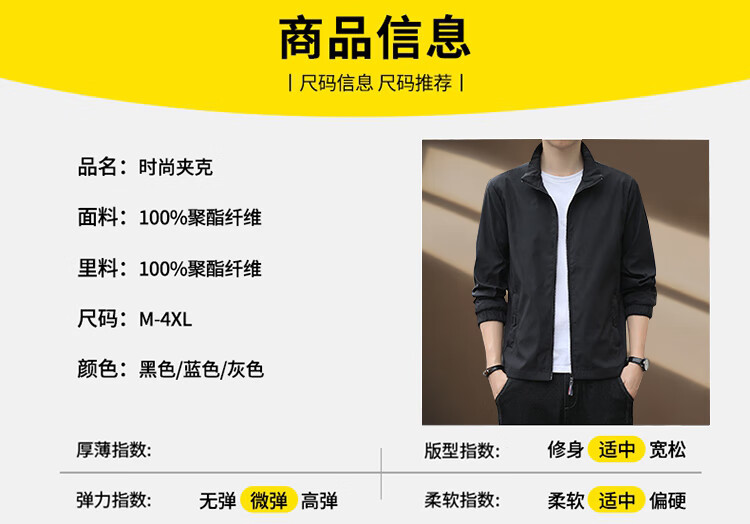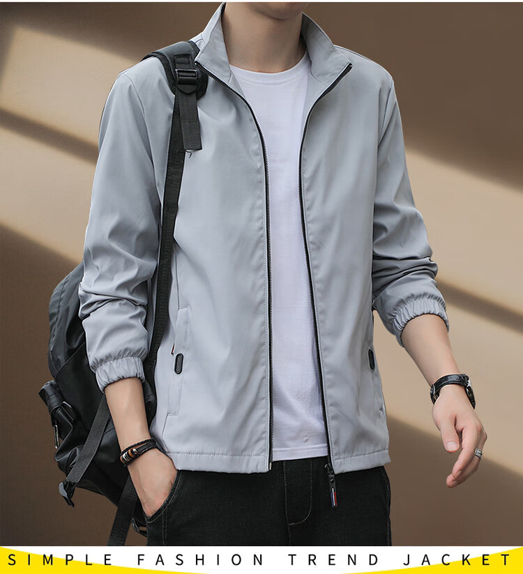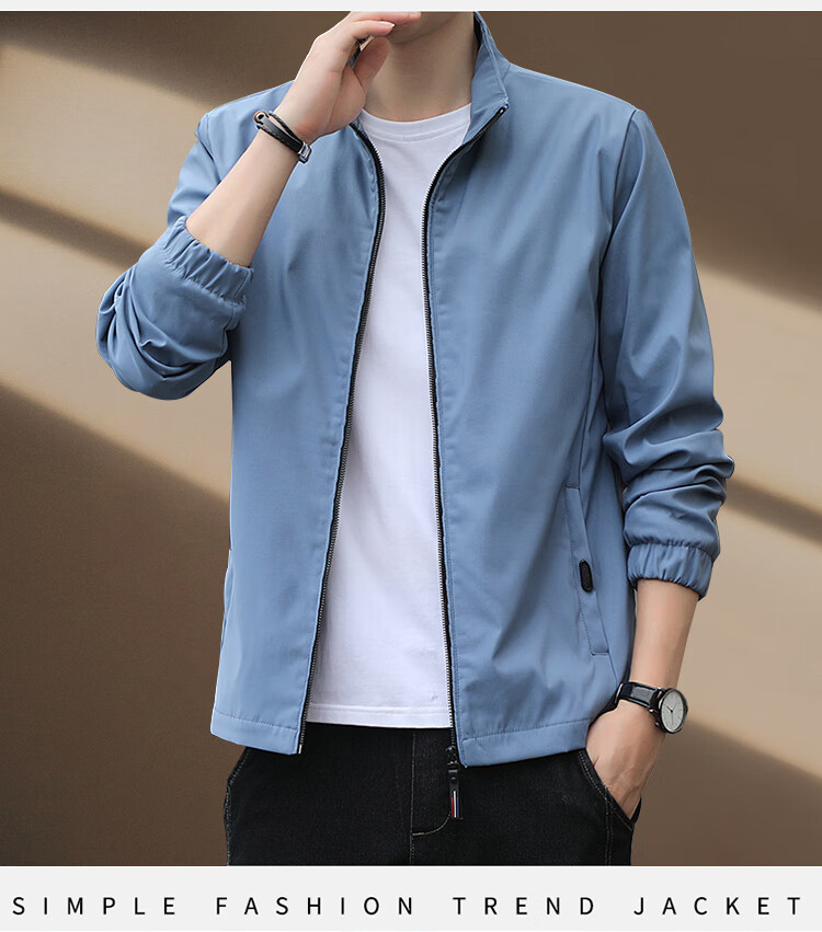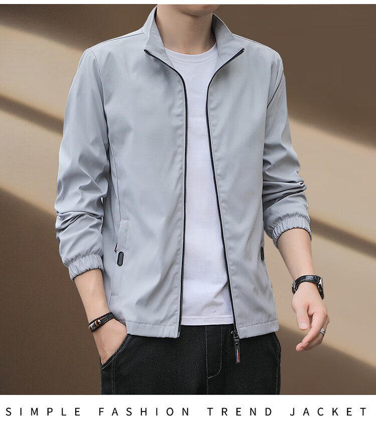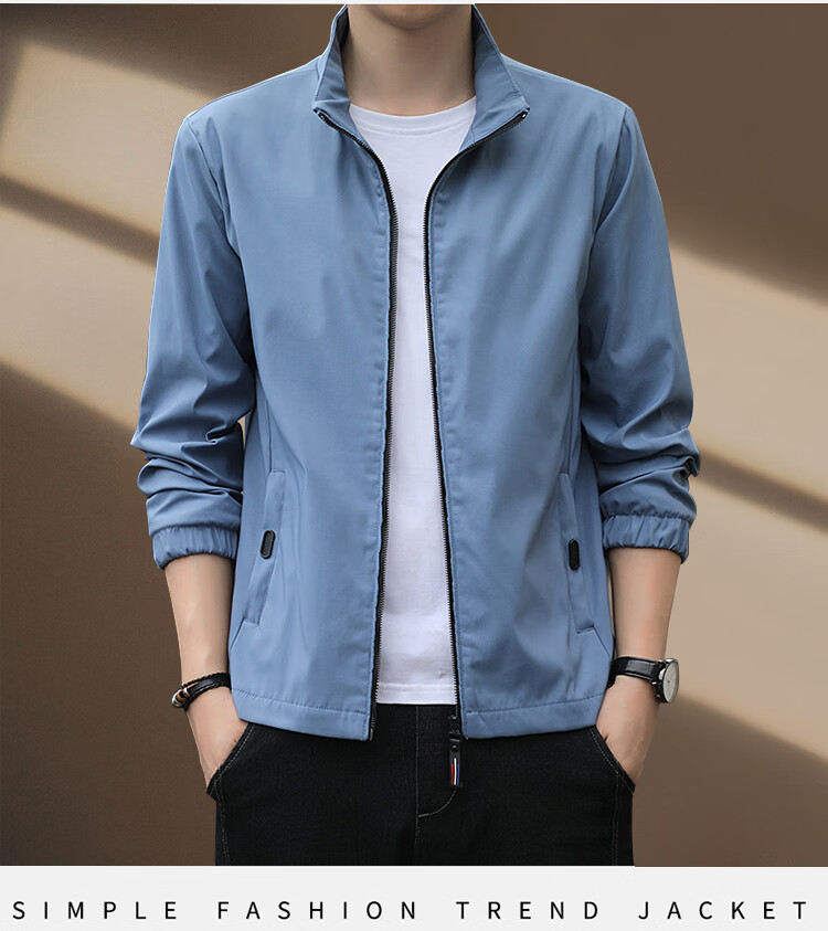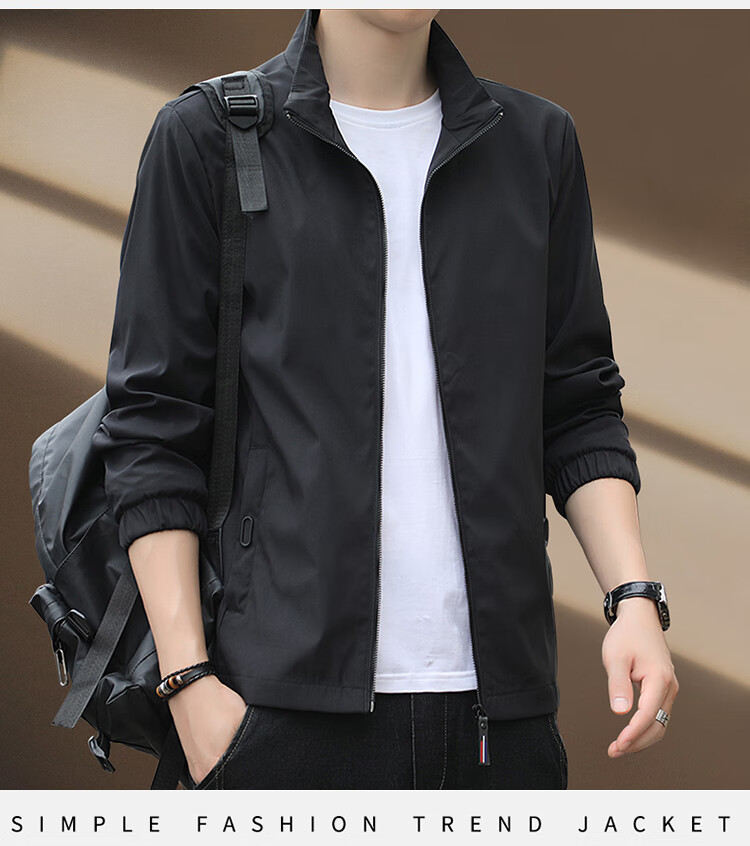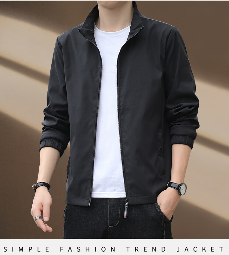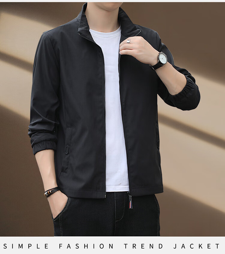 CANELIN KISKHA Jacket Men's Stand Collar Jacket Men's Business Casual High Quality Long Sleeve Clothes Men's Simple Versatile Top Spring Clothing 5571 Black Jacket XL Size