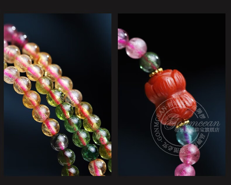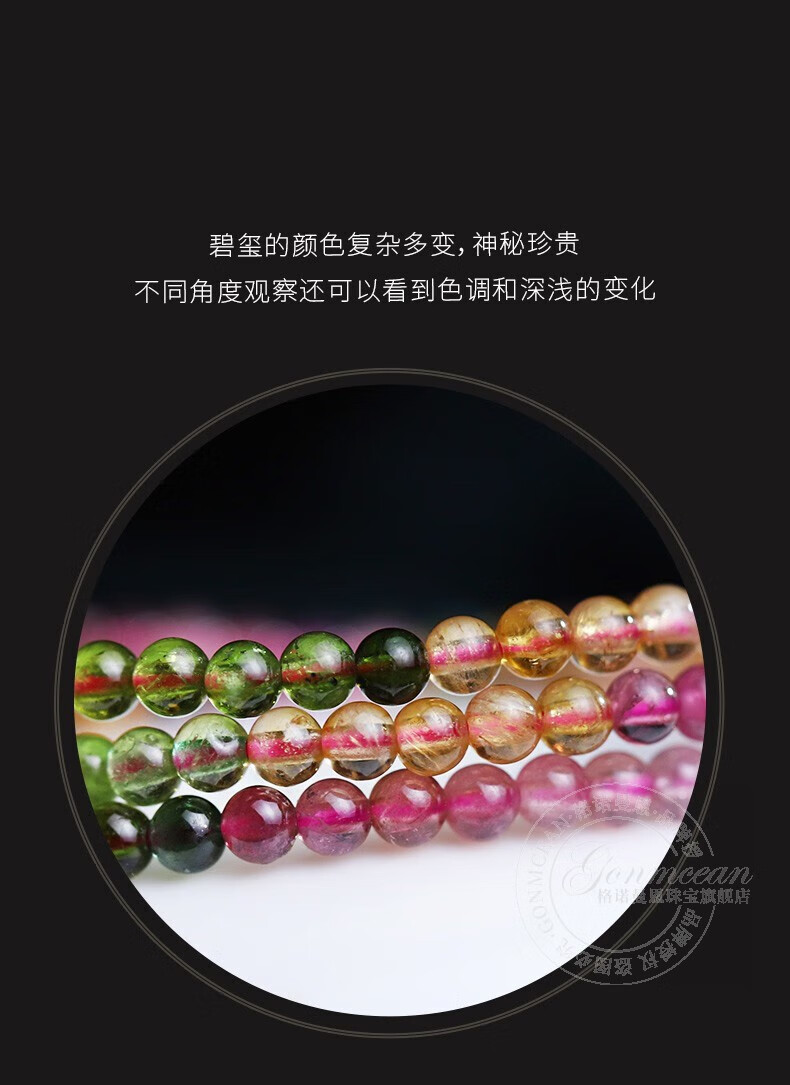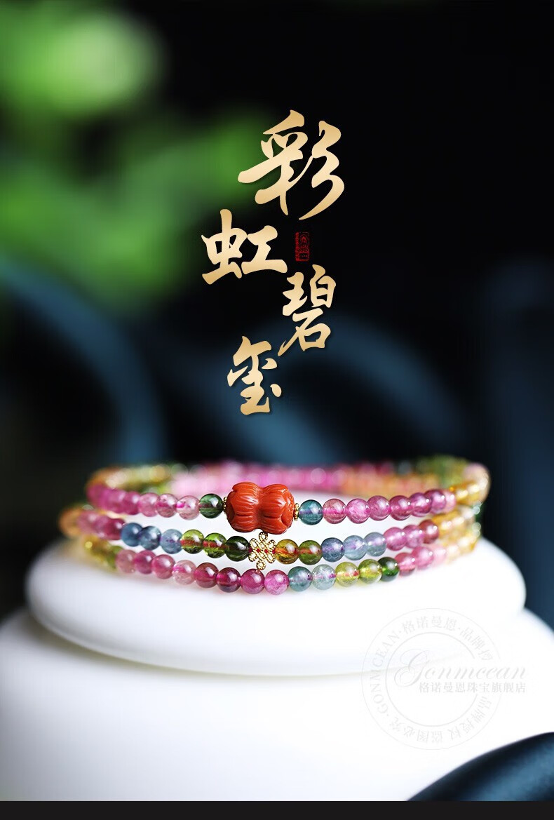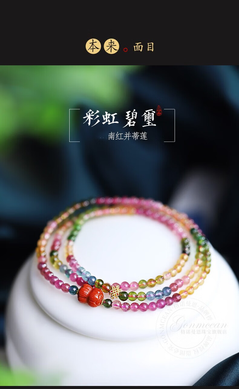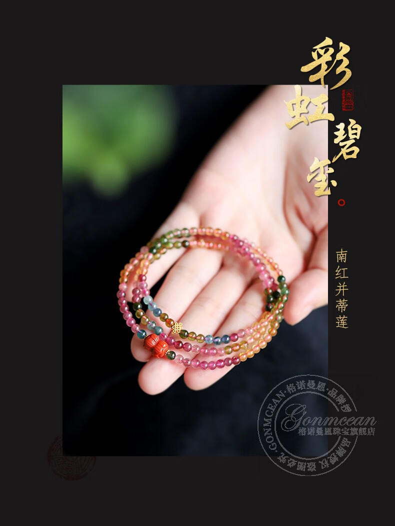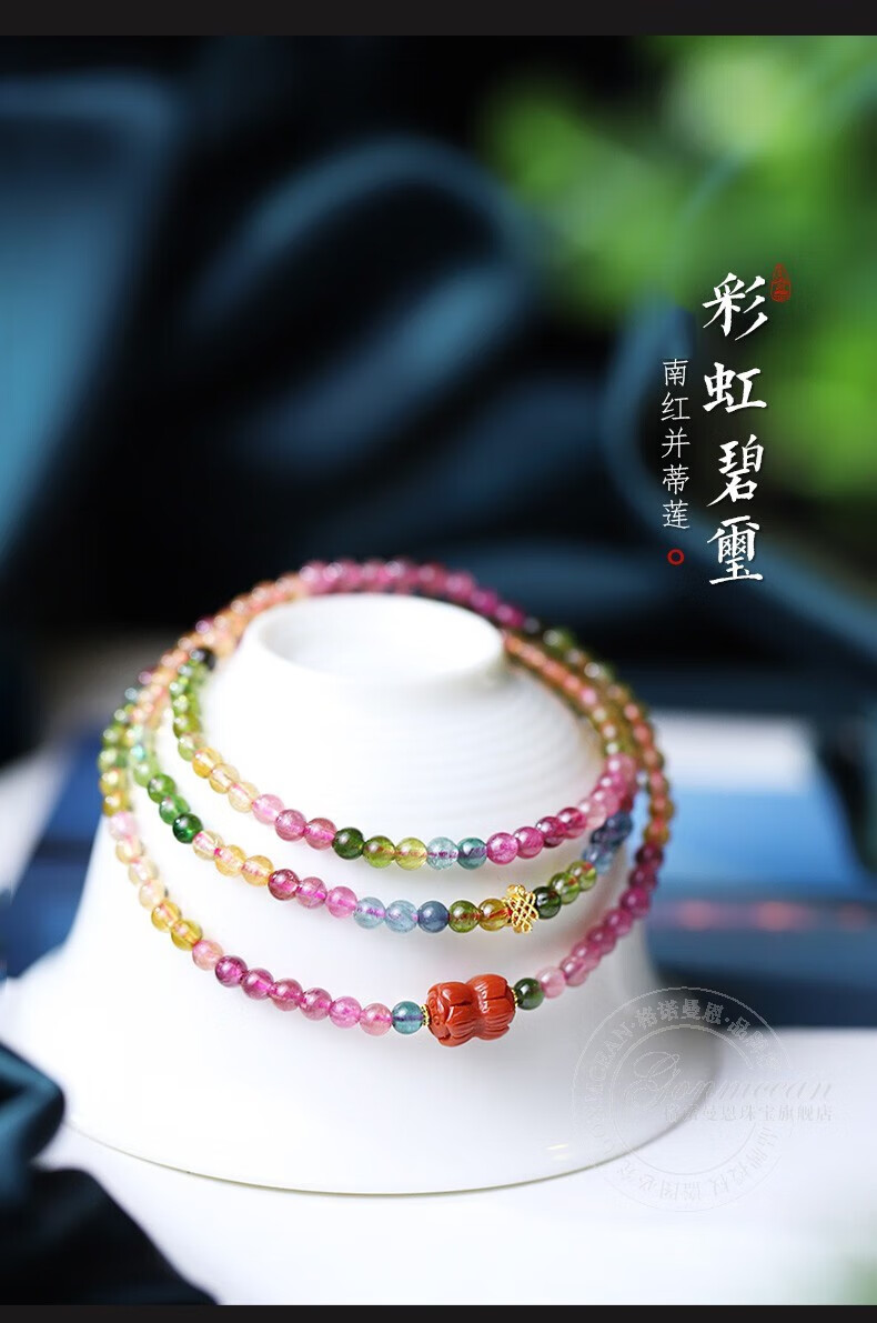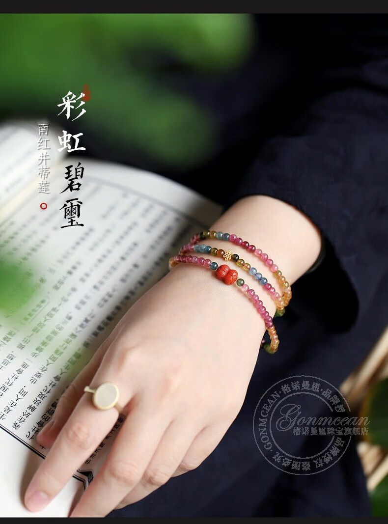 GONMCEAN Brazilian Tourmaline Bracelet Women's Old Mine Rainbow Candy Multi-circle Tourmaline 18K Bracelet Gift Beads 3-4mm